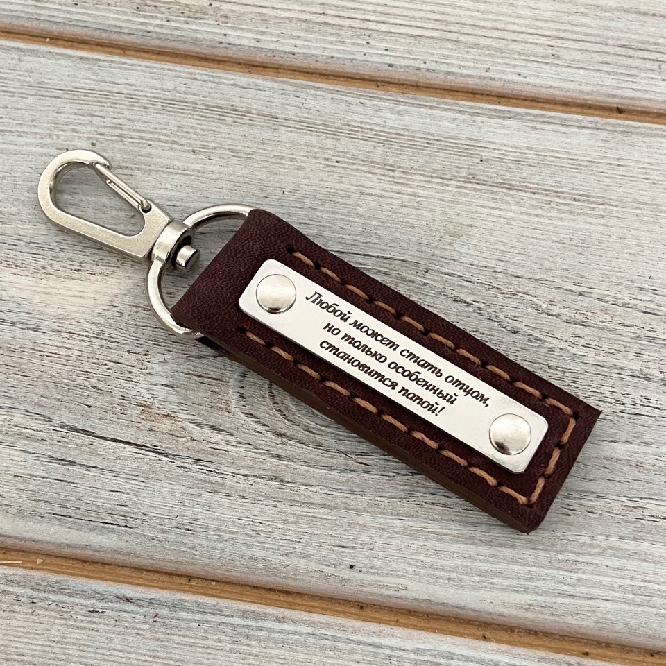 Брелок из натуральной кожи ручной работы с лазерной гравировкой "Любой может стать отцом...". Коричневый 2 см
