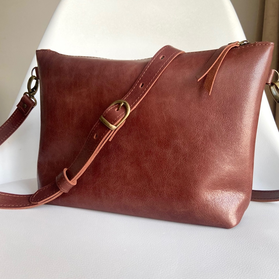 Сумка женская ручной работы из натуральной кожи кросс-боди коричневая