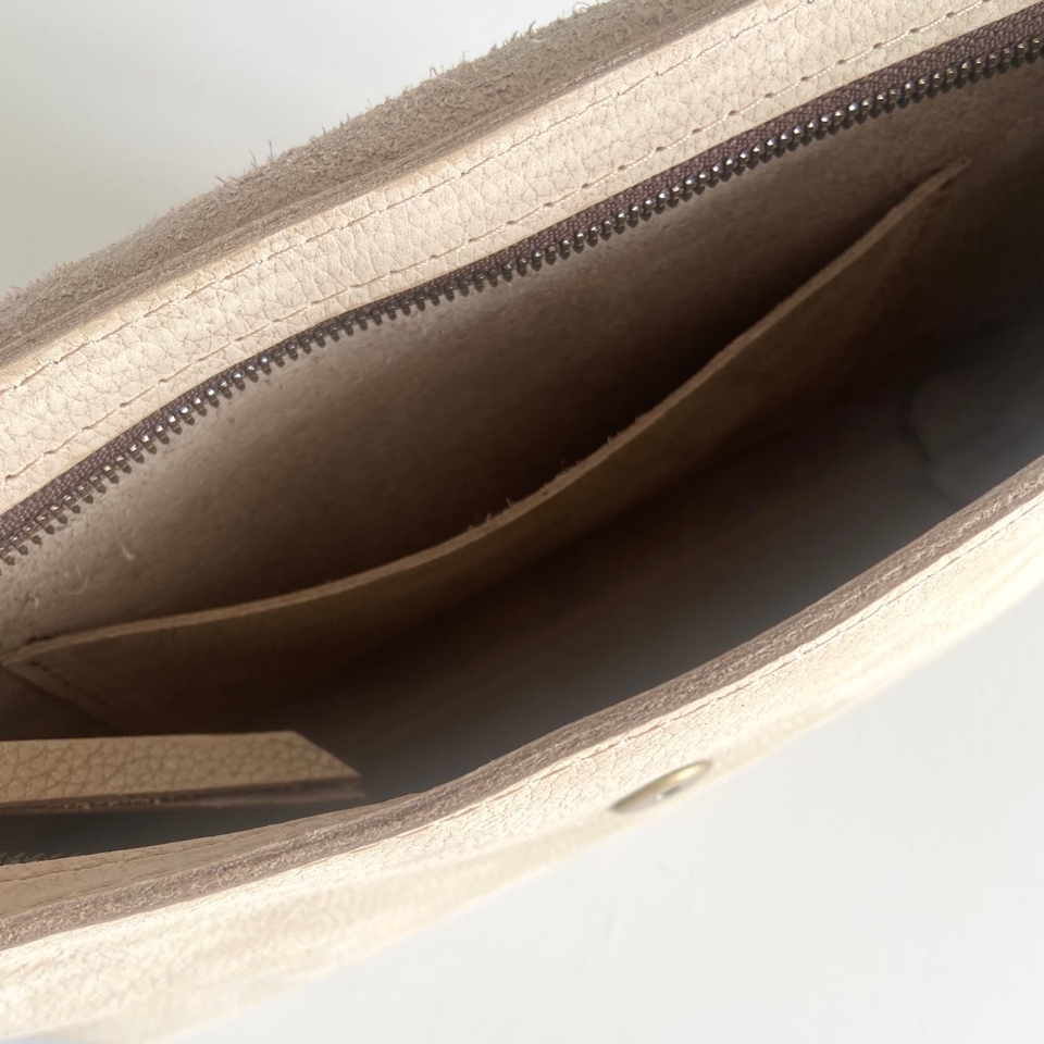 Сумка женская ручной работы из натуральной кожи кросс-боди бежевая с тиснением