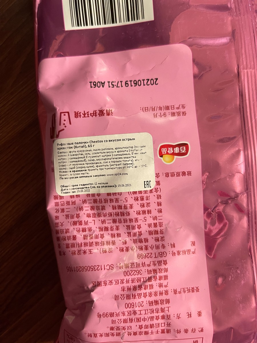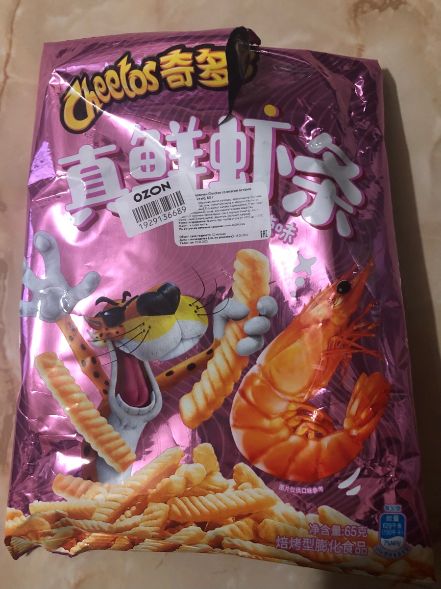 Рифлёные палочки Cheetos со вкусом острых креветок (Китай), 65 г
