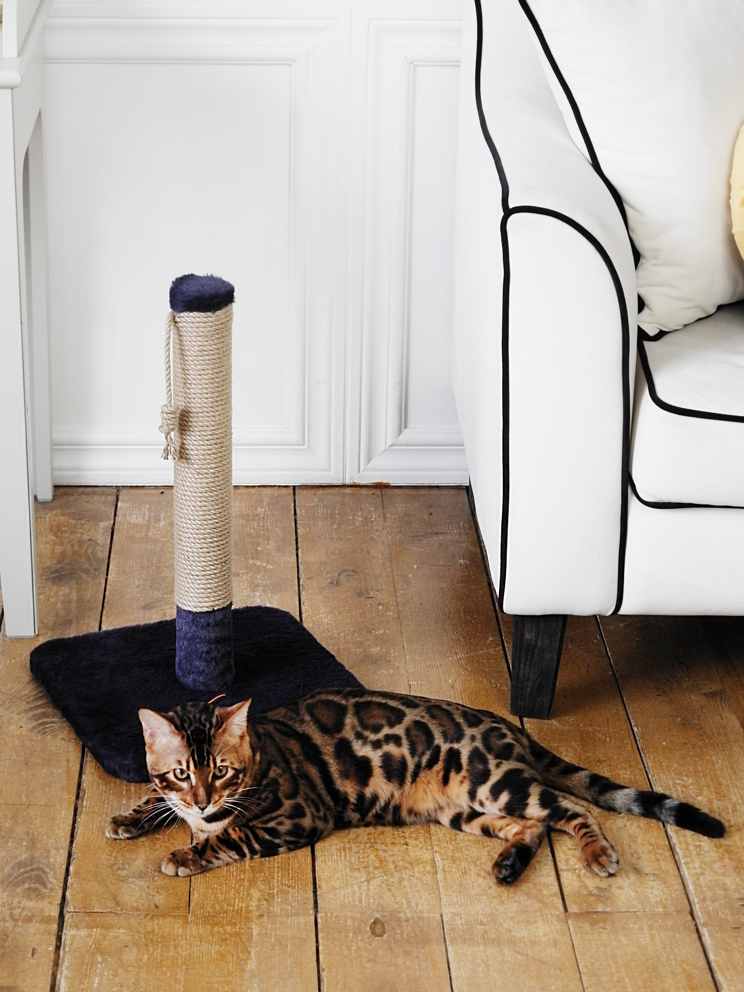Когтеточка-столбик, квадрат, 35х35х54 см, джут. Синий