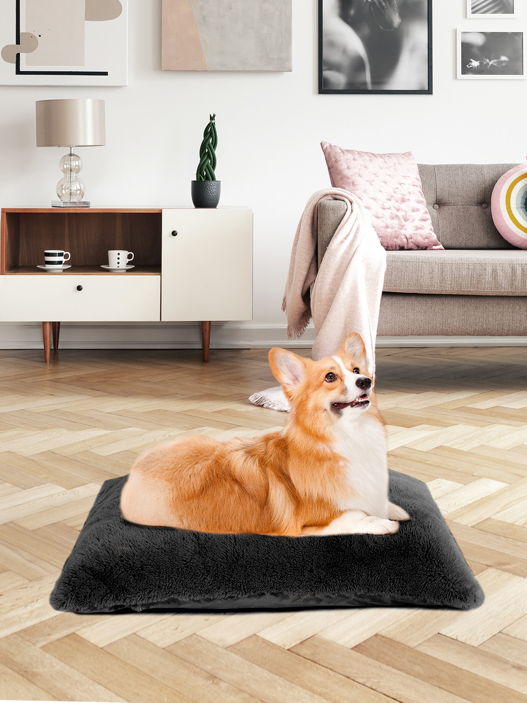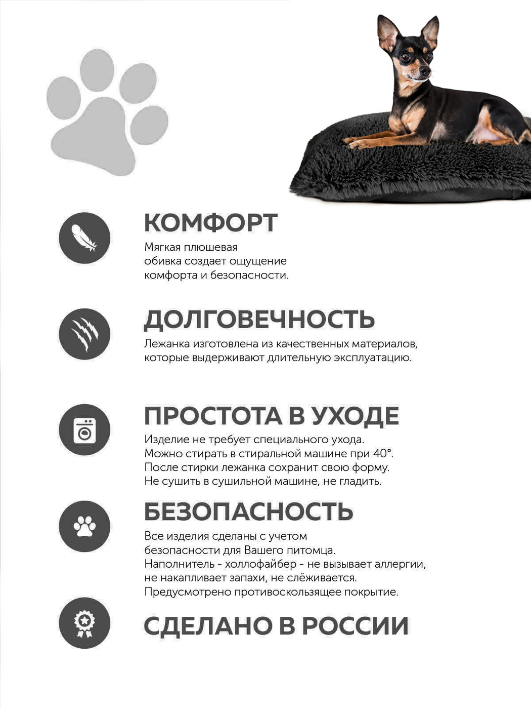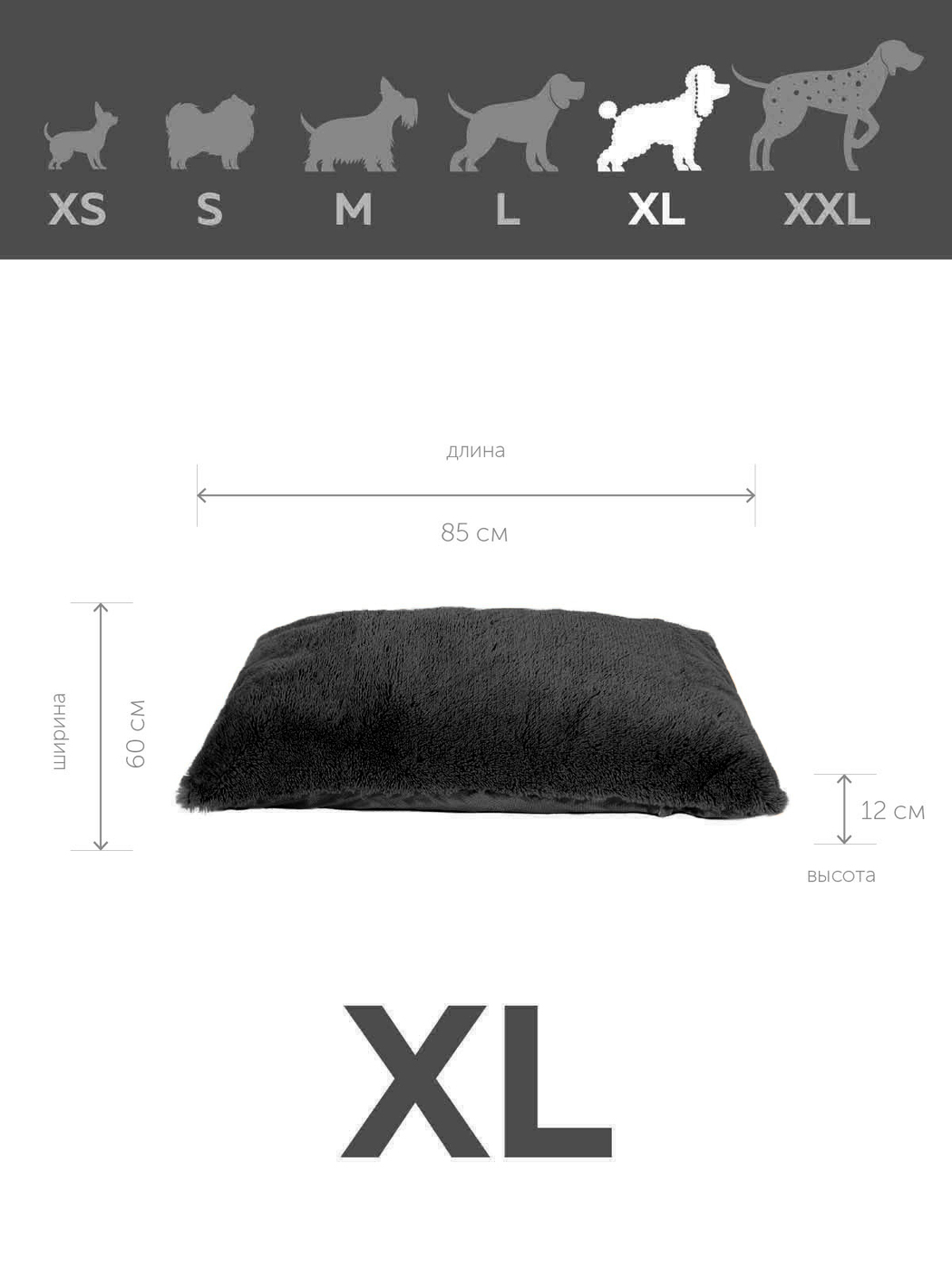 Пушистая лежанка 85х60см +-5 см для кошек и собак цвет черный артикул PM_XL