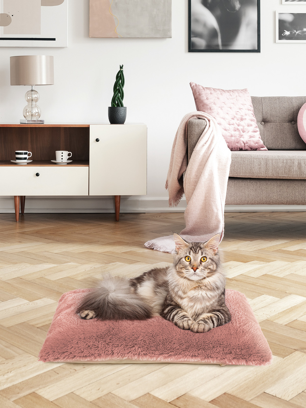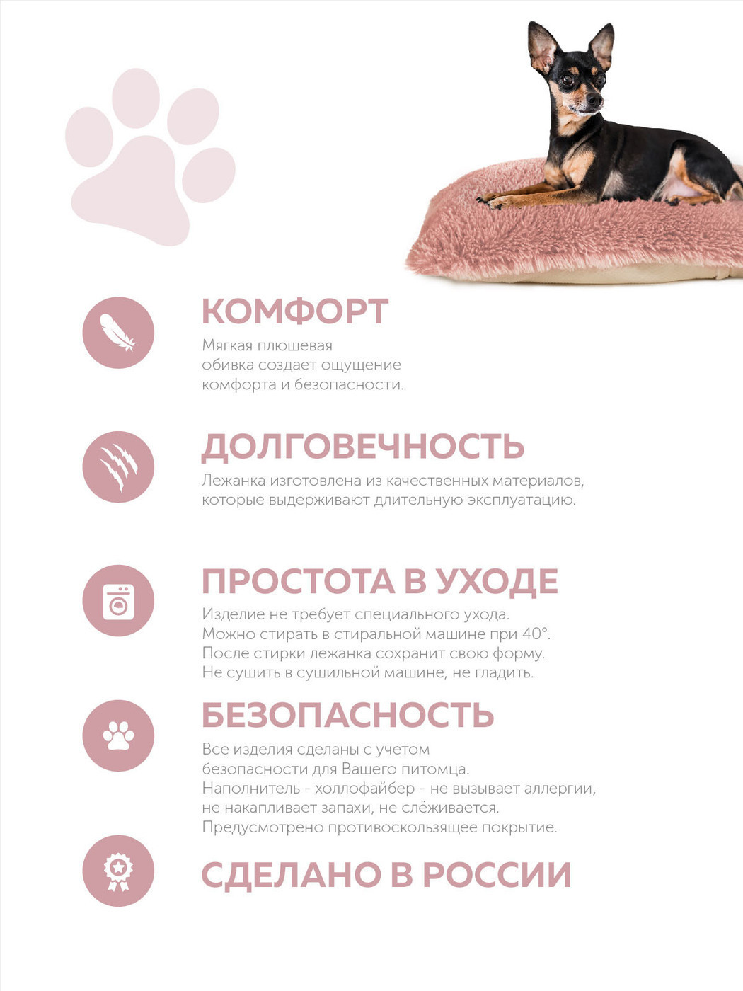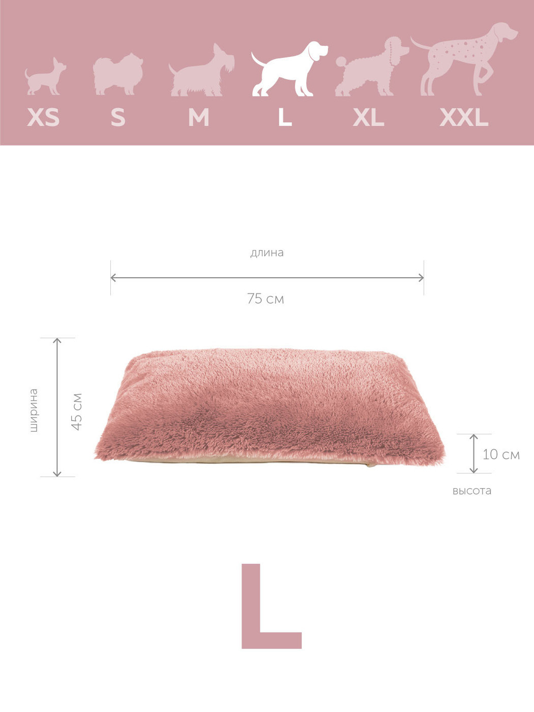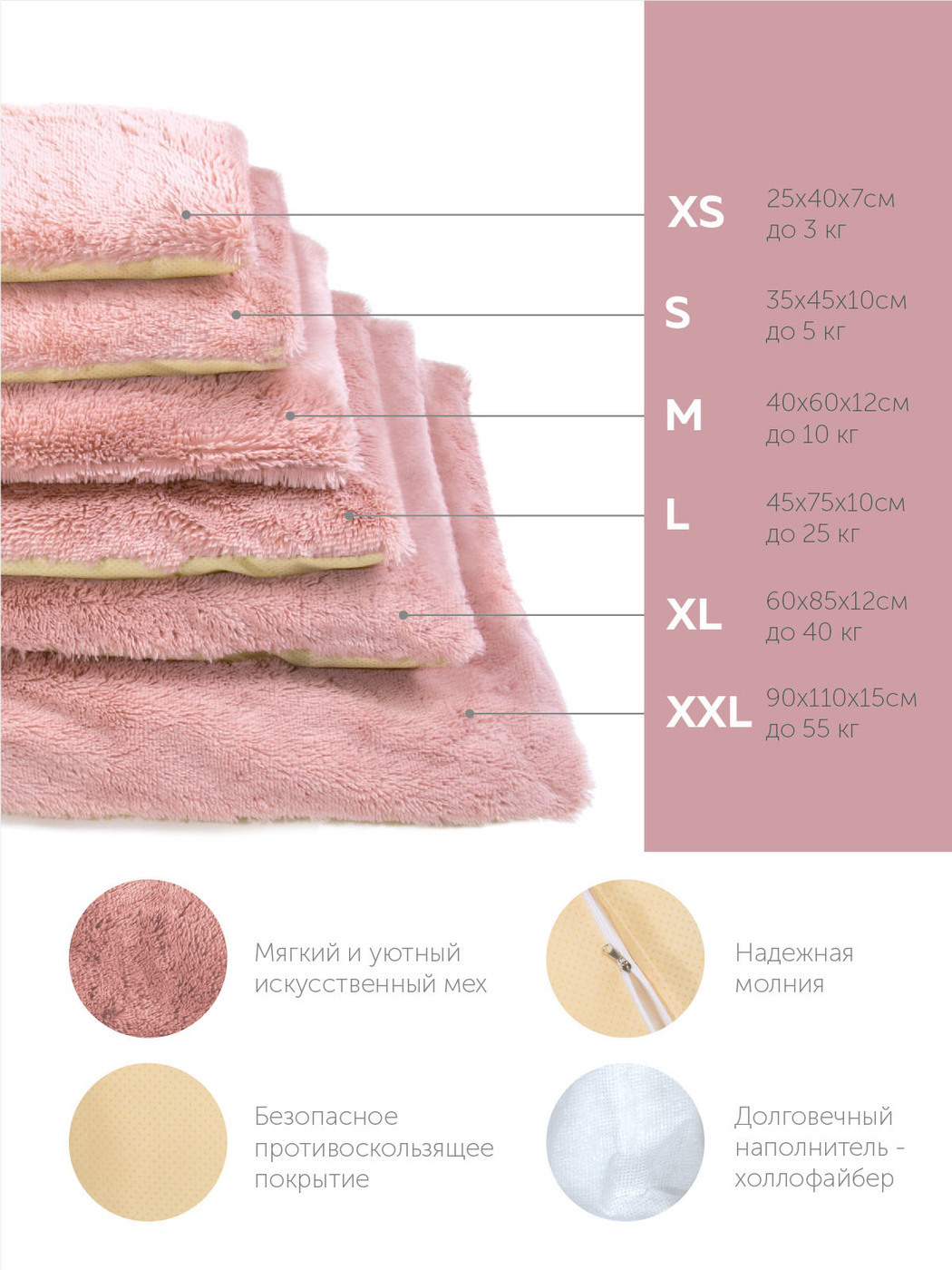 Пушистая лежанка 75х45см +-5 см для кошек и собак цвет пудра артикул PM_L
