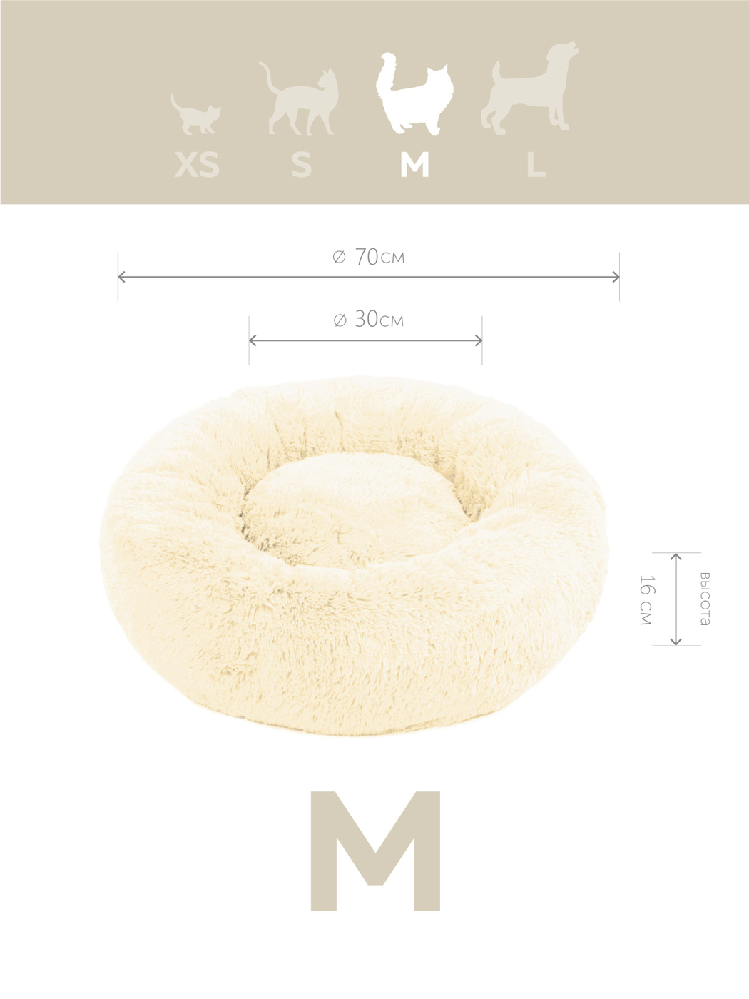 Пушистая лежанка d70 см +-5 см для крупных кошек и собак цвет экрю артикул PNL80
