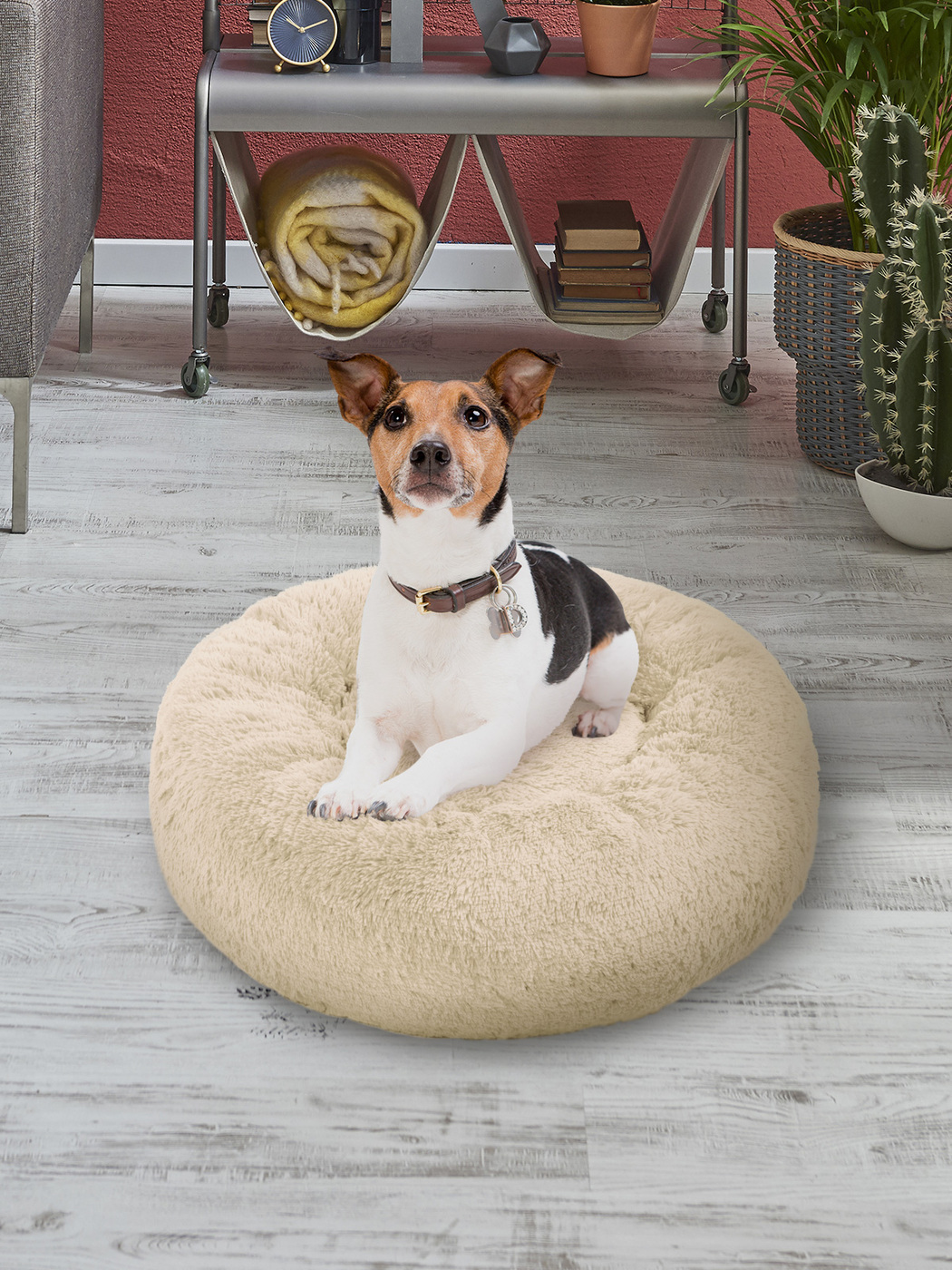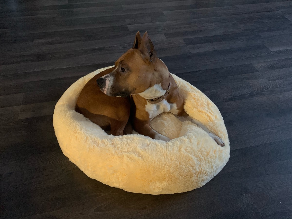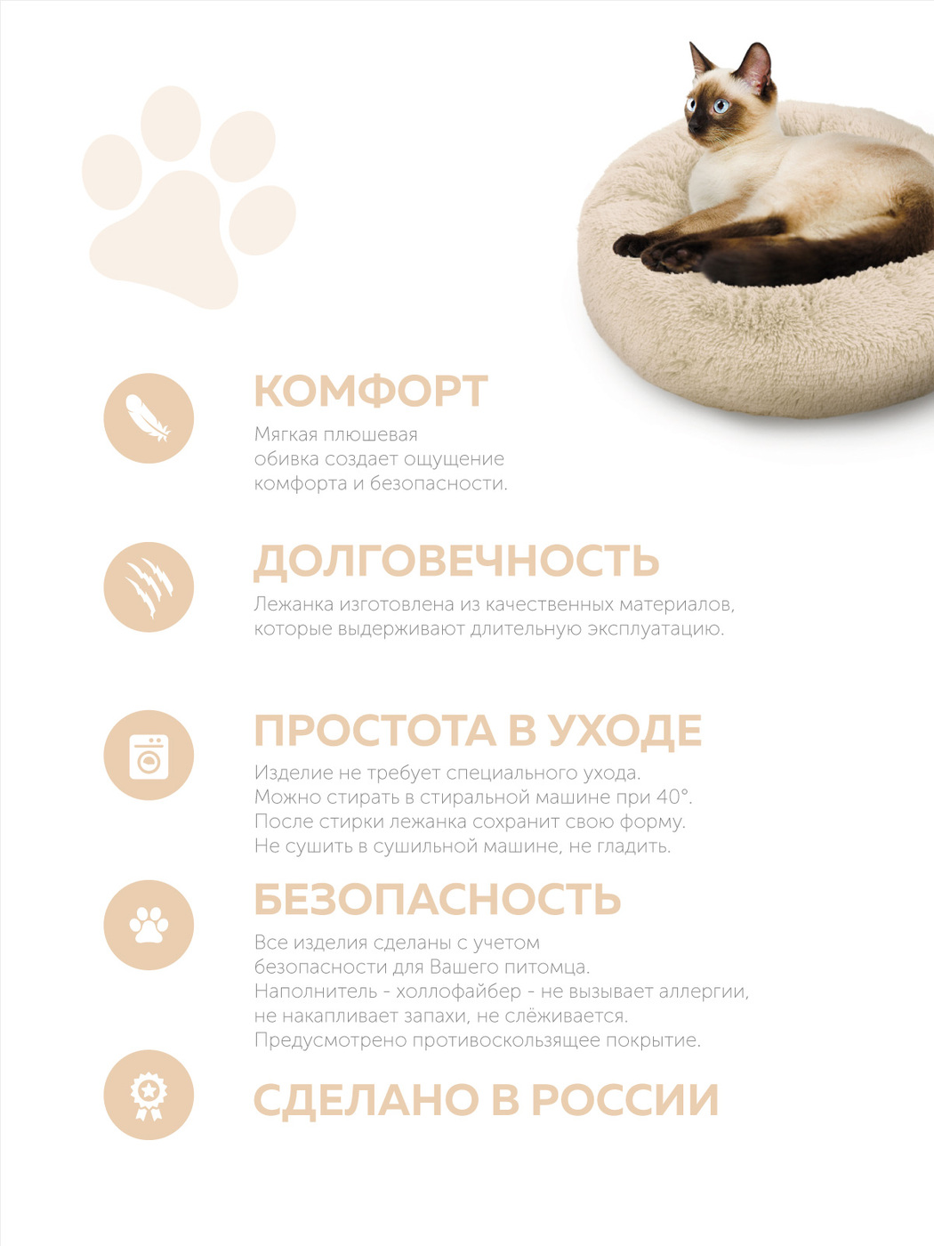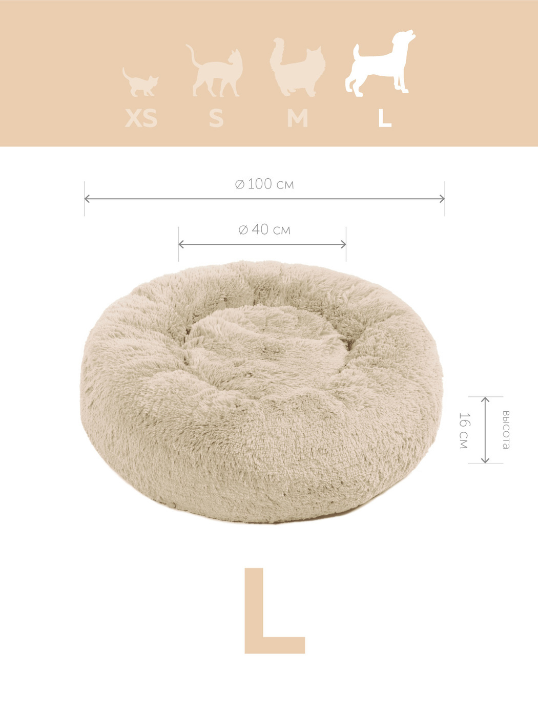 Пушистая лежанка d90 см +-5 см для очень крупных кошек и собак цвет айвори артикул L100