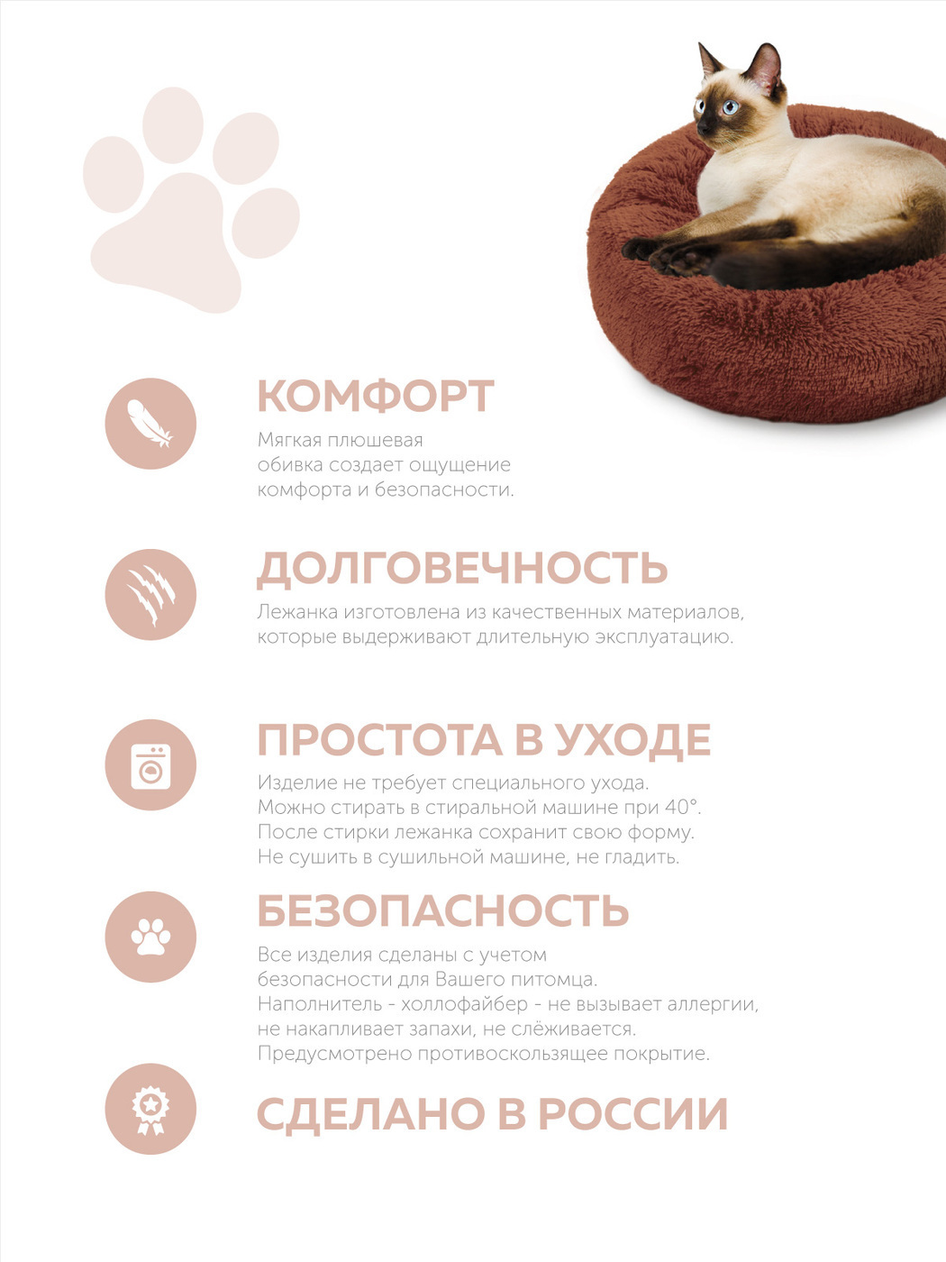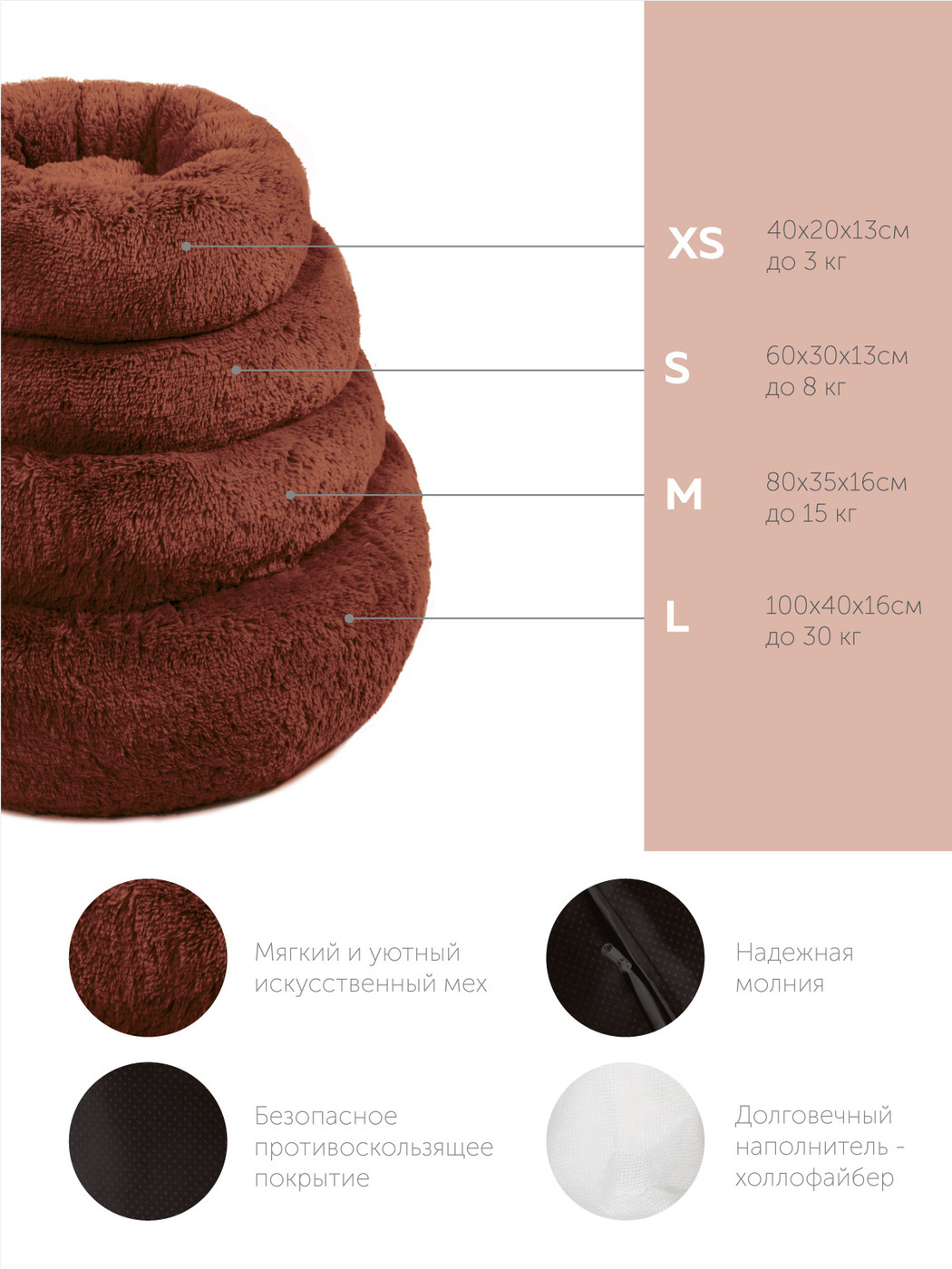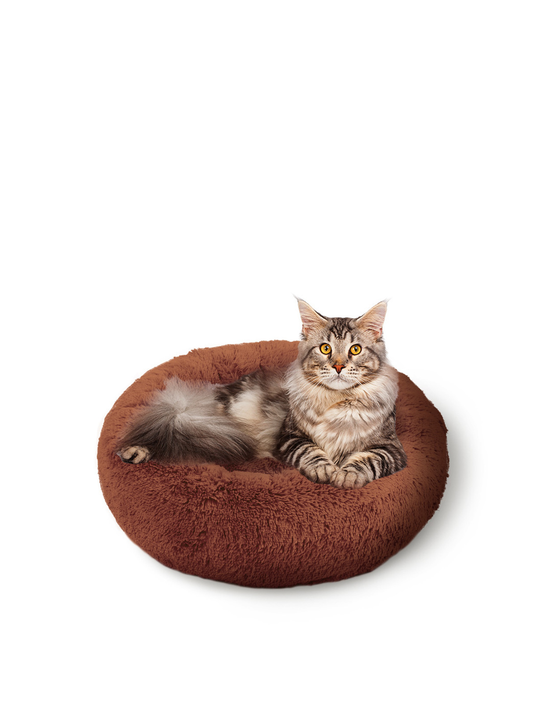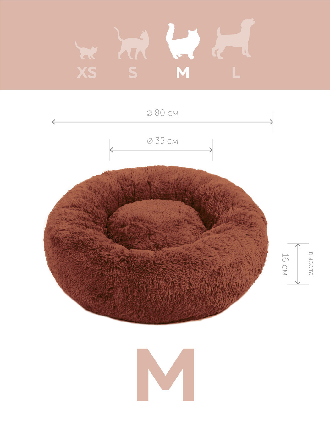 Пушистая лежанка d70 см +-5 см для собак и кошек цвет шоколадный артикул PNL80
