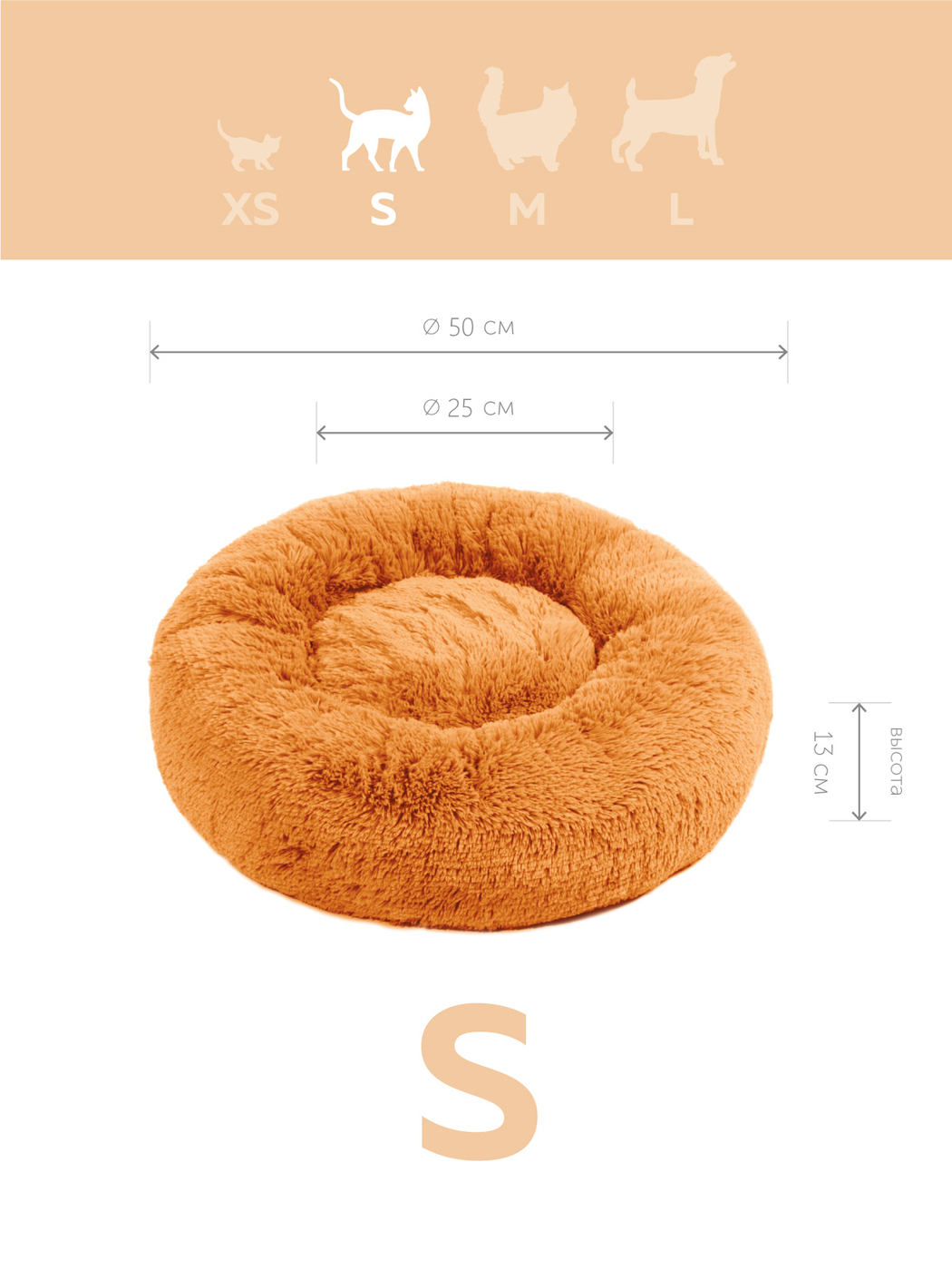 Пушистая лежанка d50 см +-5 см для средних кошек и собак цвет карамель артикул PNL60
