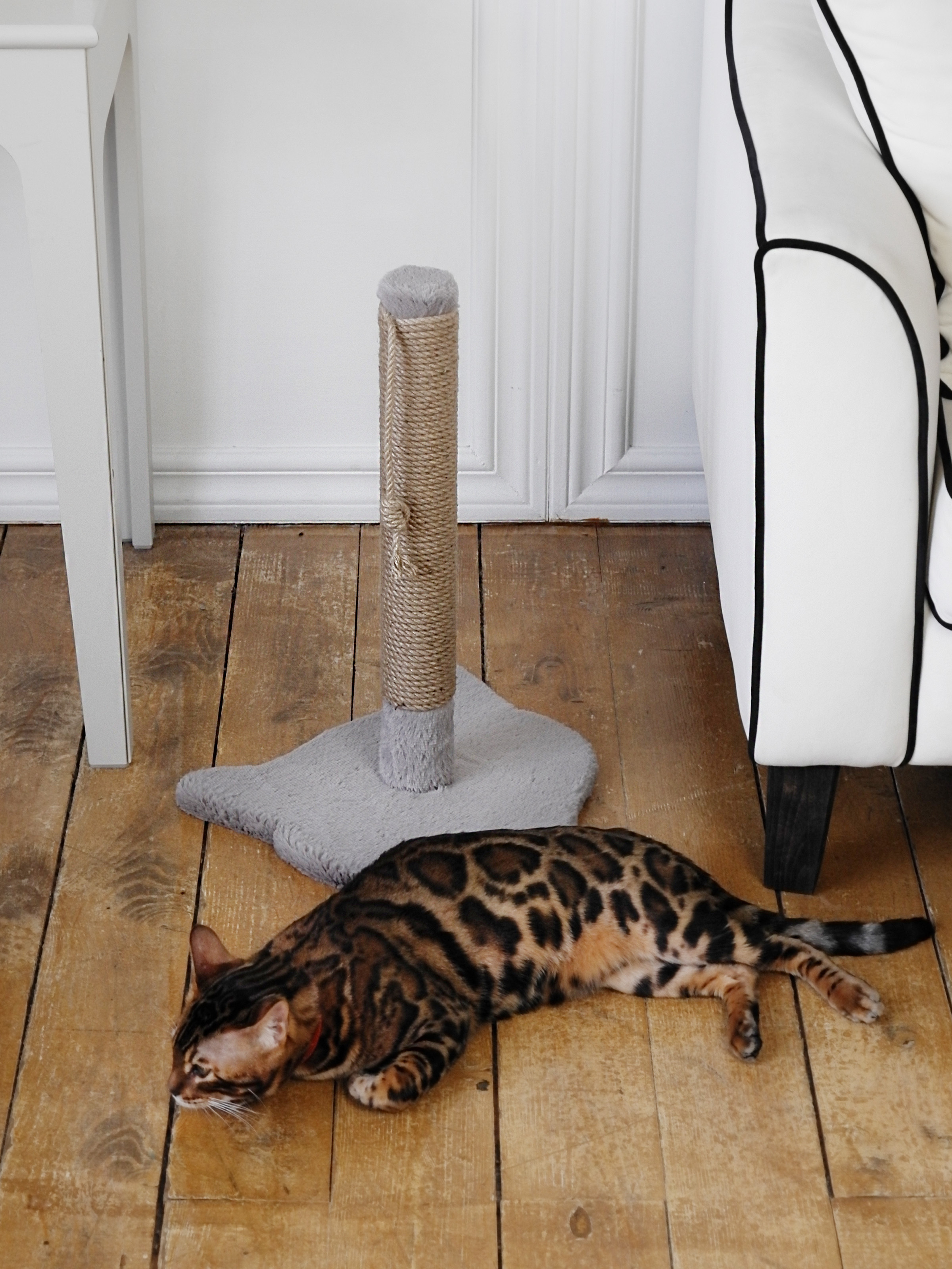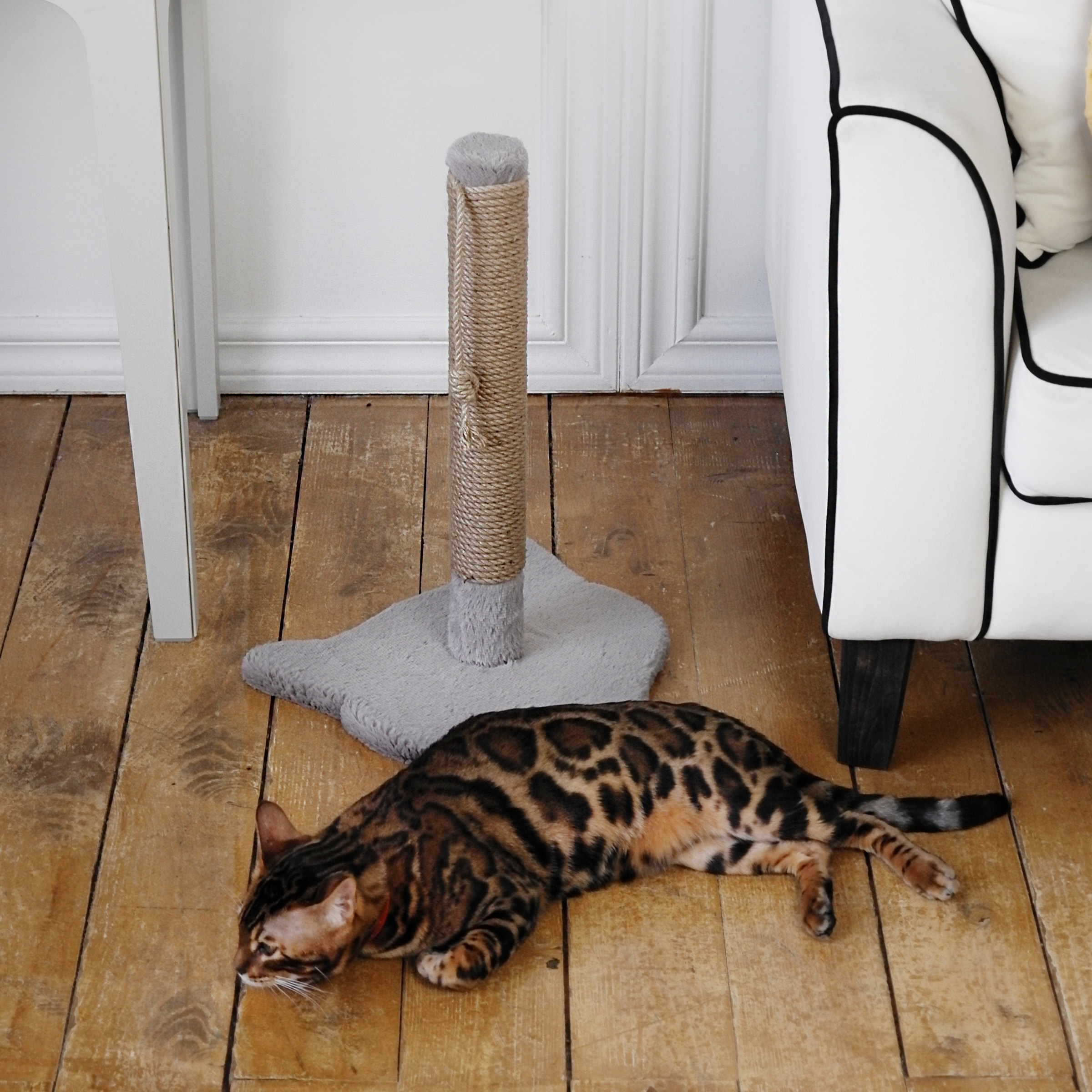 Когтеточка-столбик, кот, 33х35х54см, джут. Пушистый мех смоки 78-7