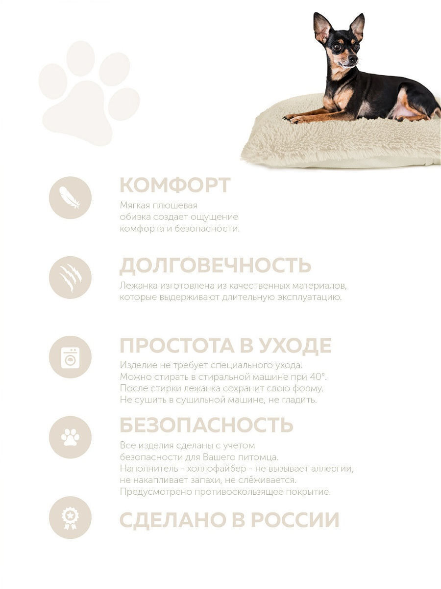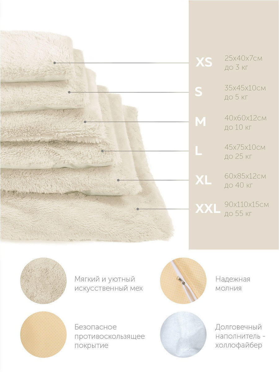 Пушистая лежанка 110х90см +-5 см для крупных собак цвет серо-бежевый артикул PM_XXL
