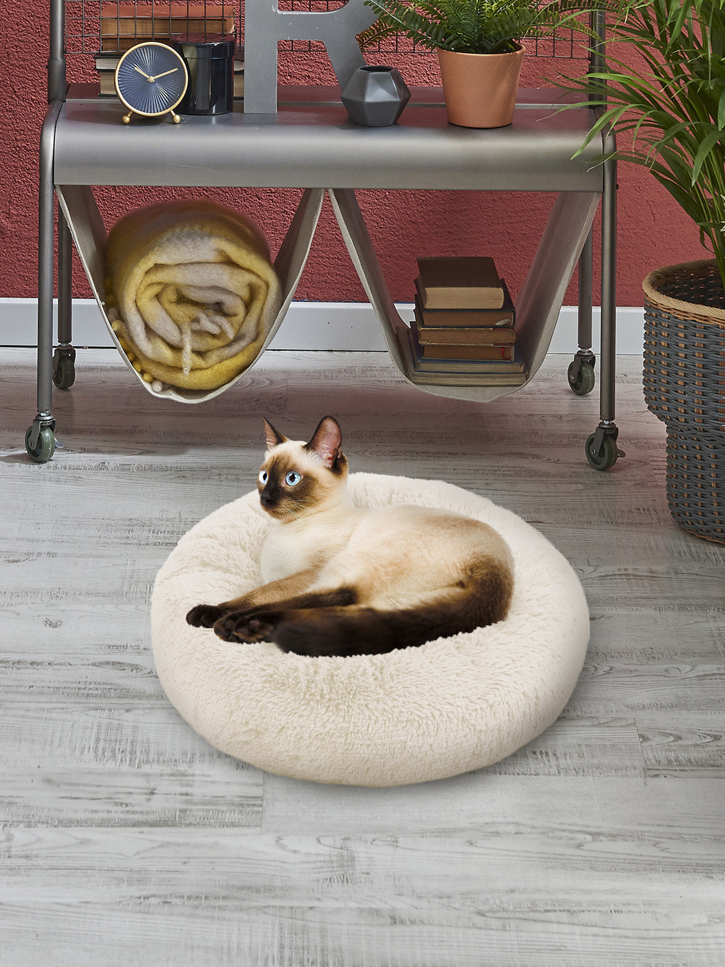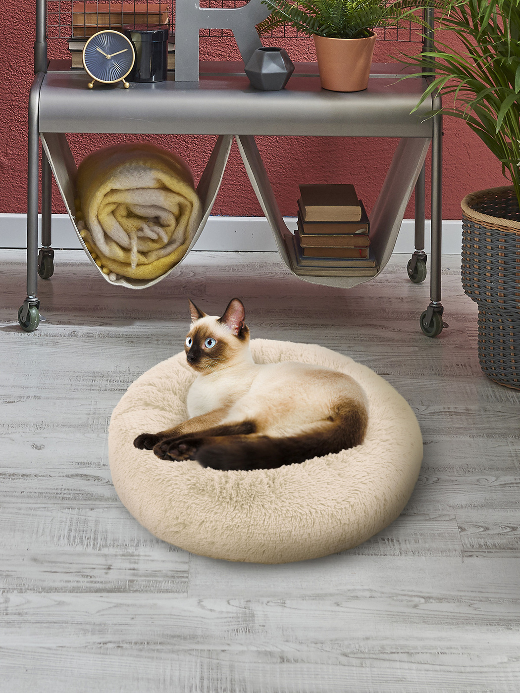 Пушистая лежанка d50 см +-5 см для средних кошек и собак цвет экрю артикул PNL60