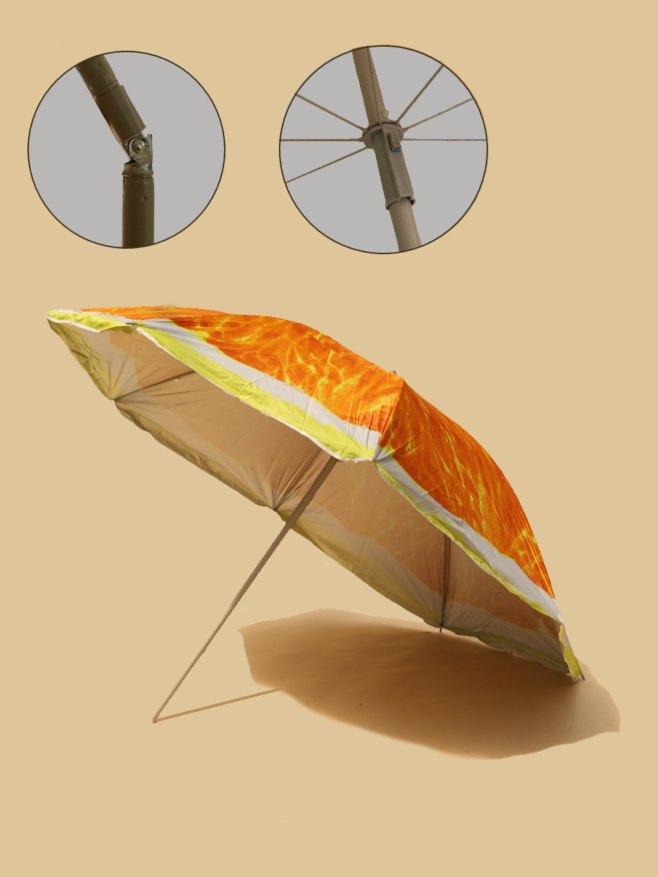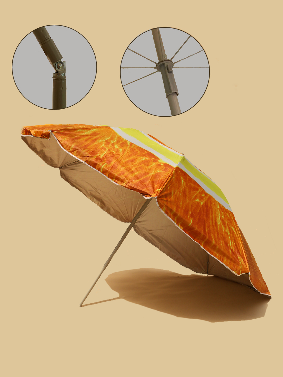 Зонт пляжный, с наклоном, d200cм, h200см, п/э190t, повышенная плотность, фотопечать, 8 спиц, чехол