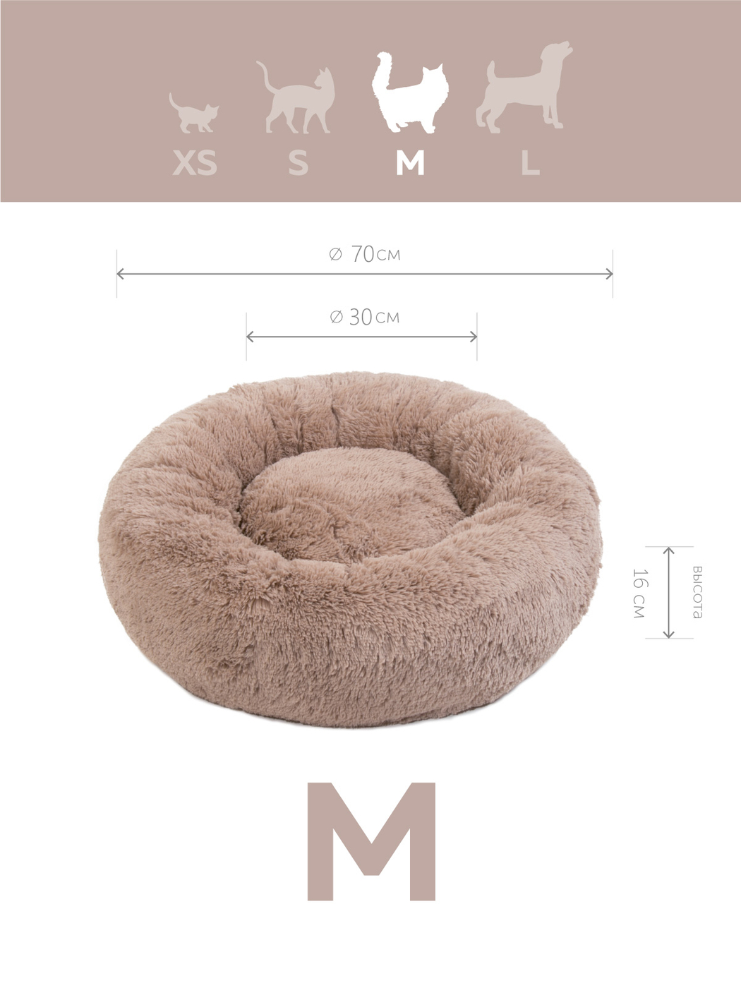 Пушистая лежанка d70 см +-5 см для собак и кошек цвет дымчатый артикул PNL80