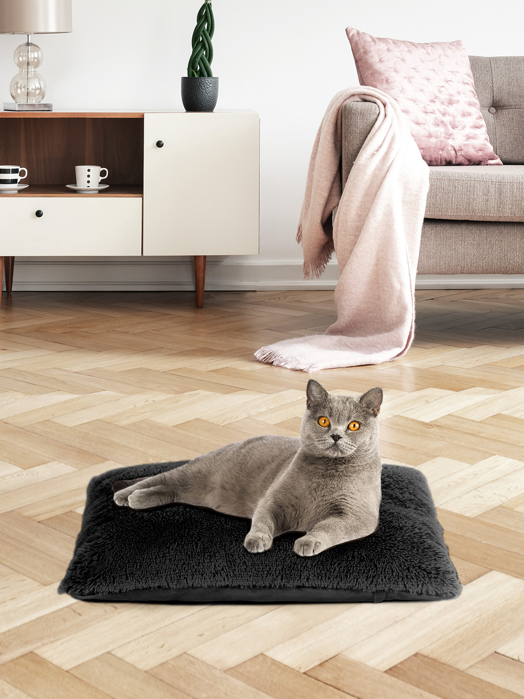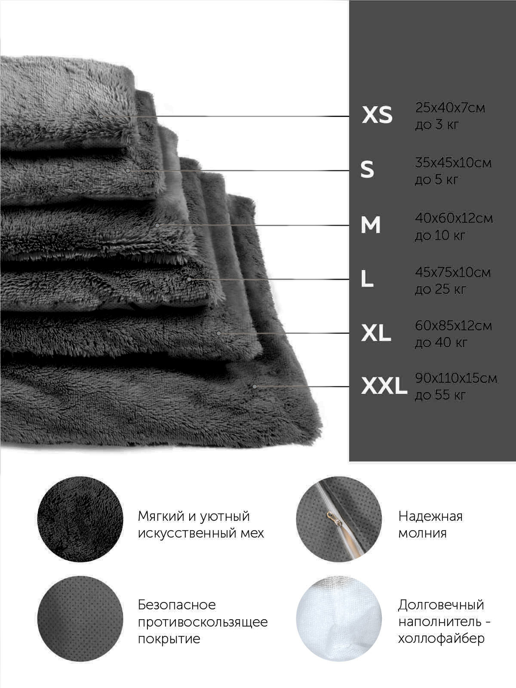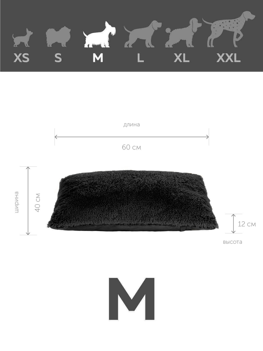 Пушистая лежанка 60х40см +-5 см для кошек и собак цвет черный артикул PM_M