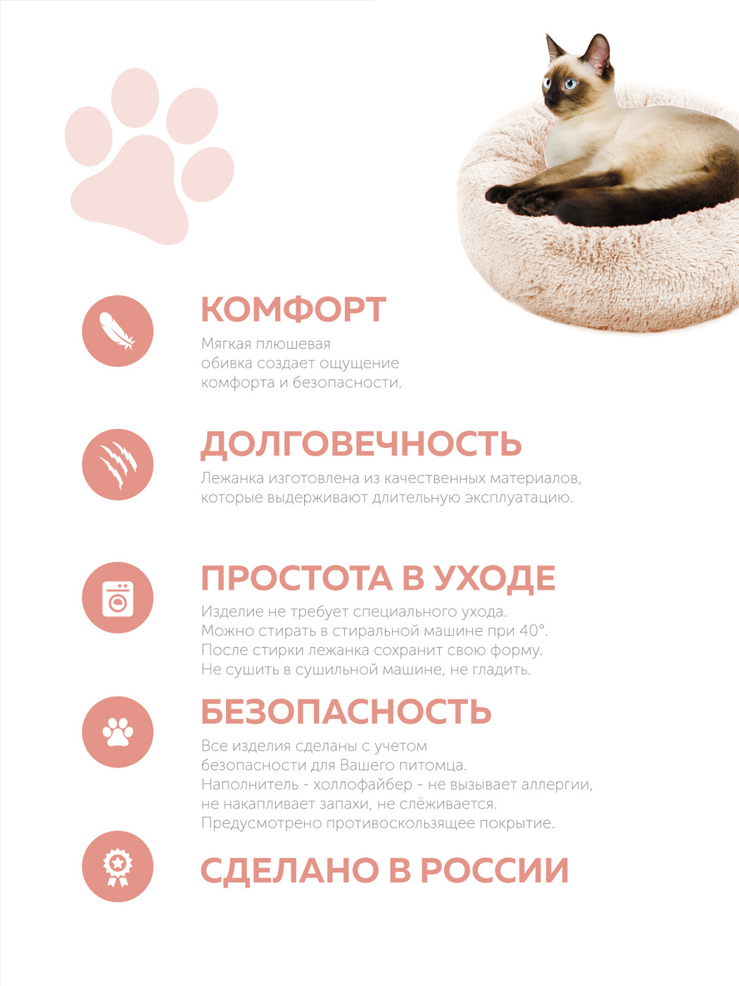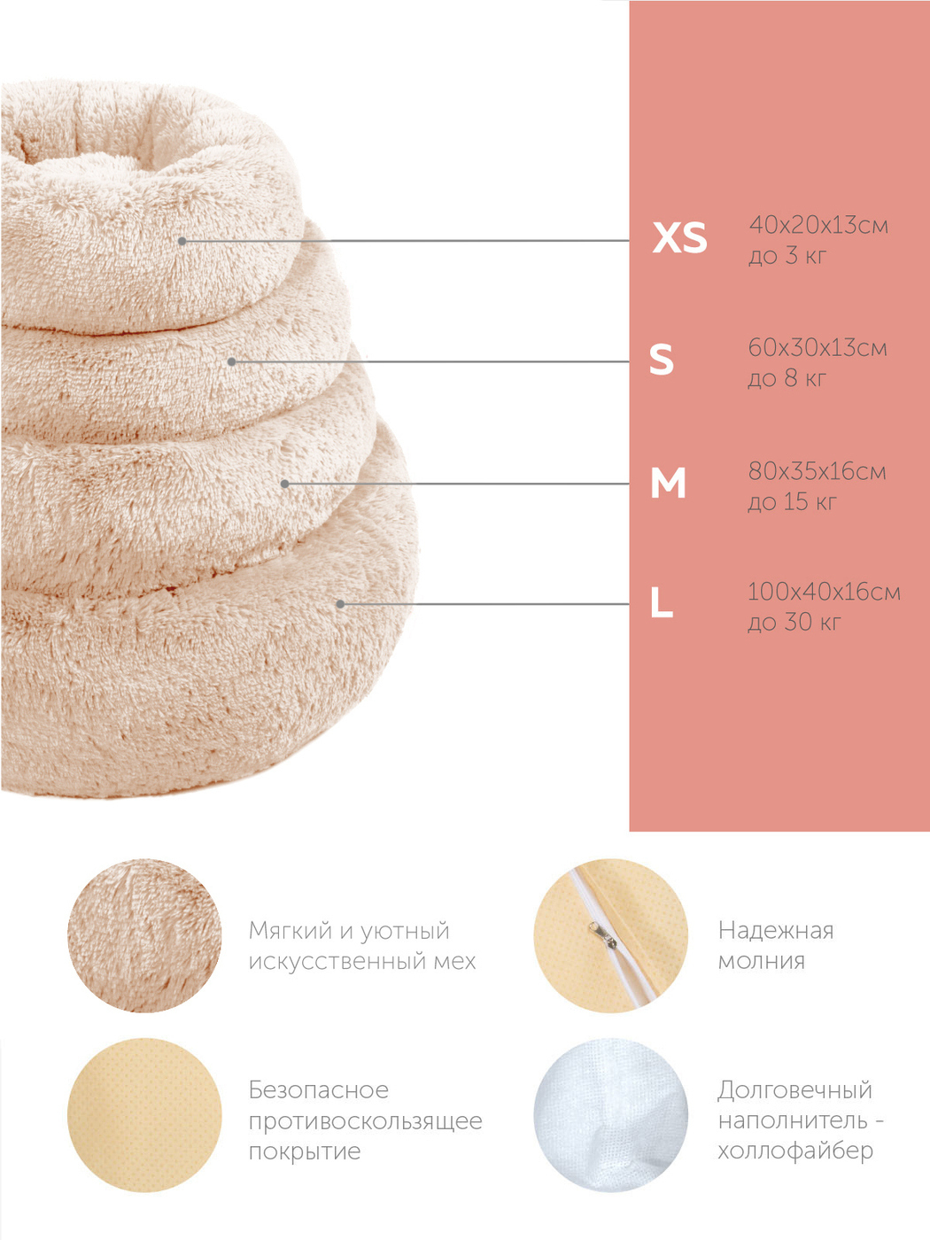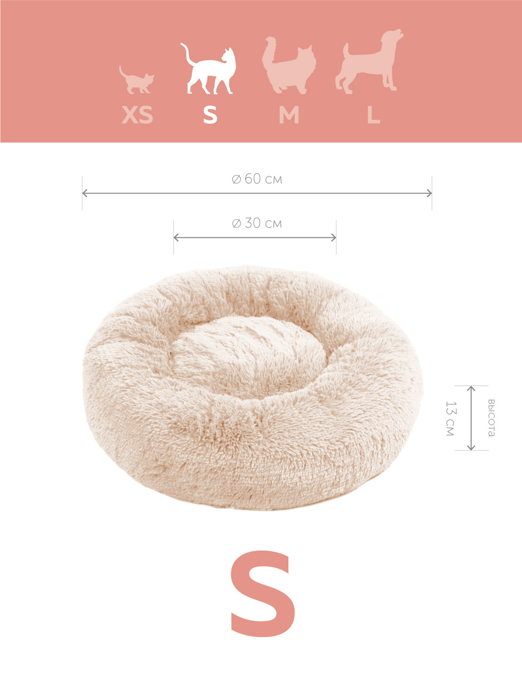 Пушистая лежанка d50 см +-5 см для средних кошек и собак цвет капучино артикул PNL60