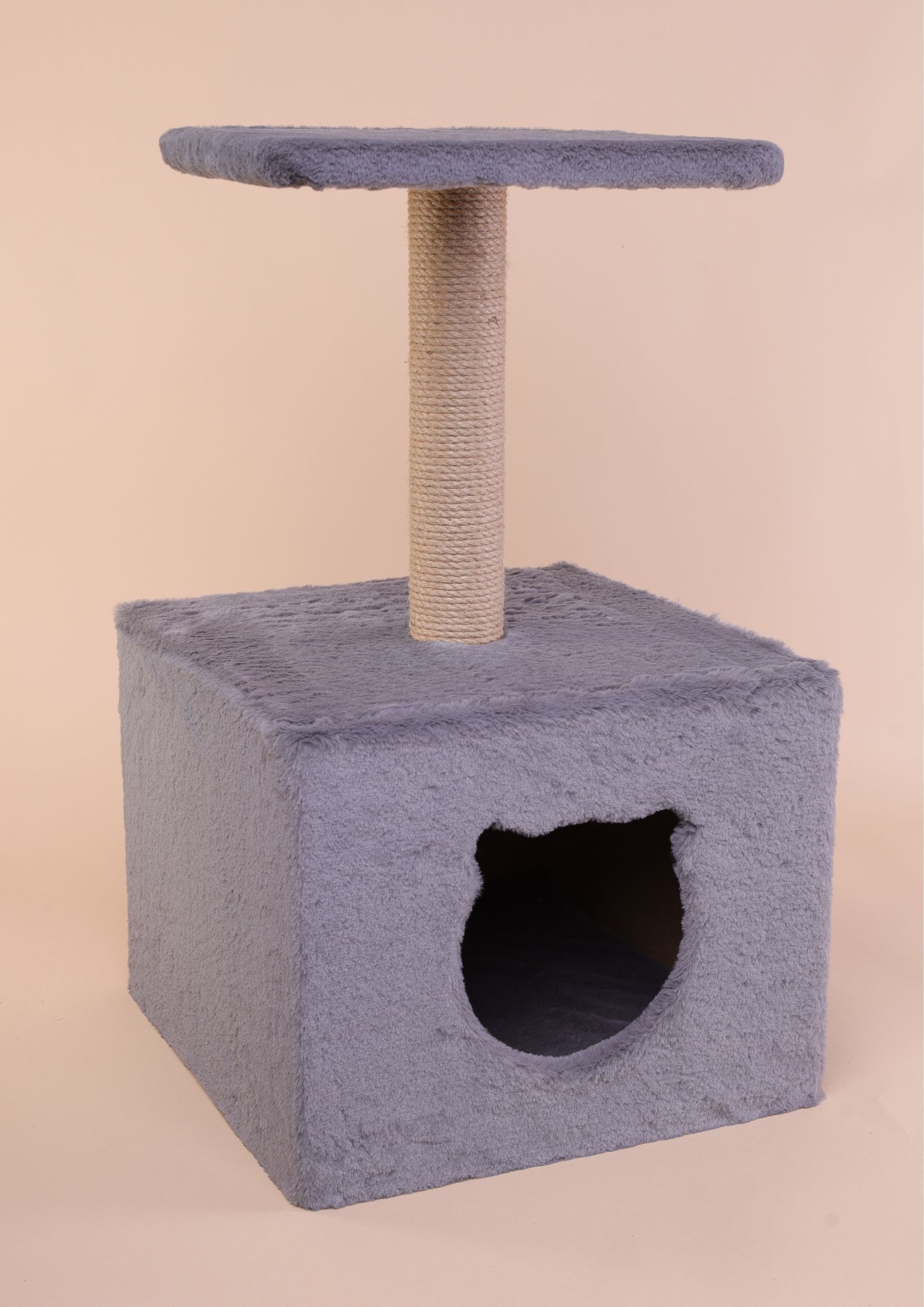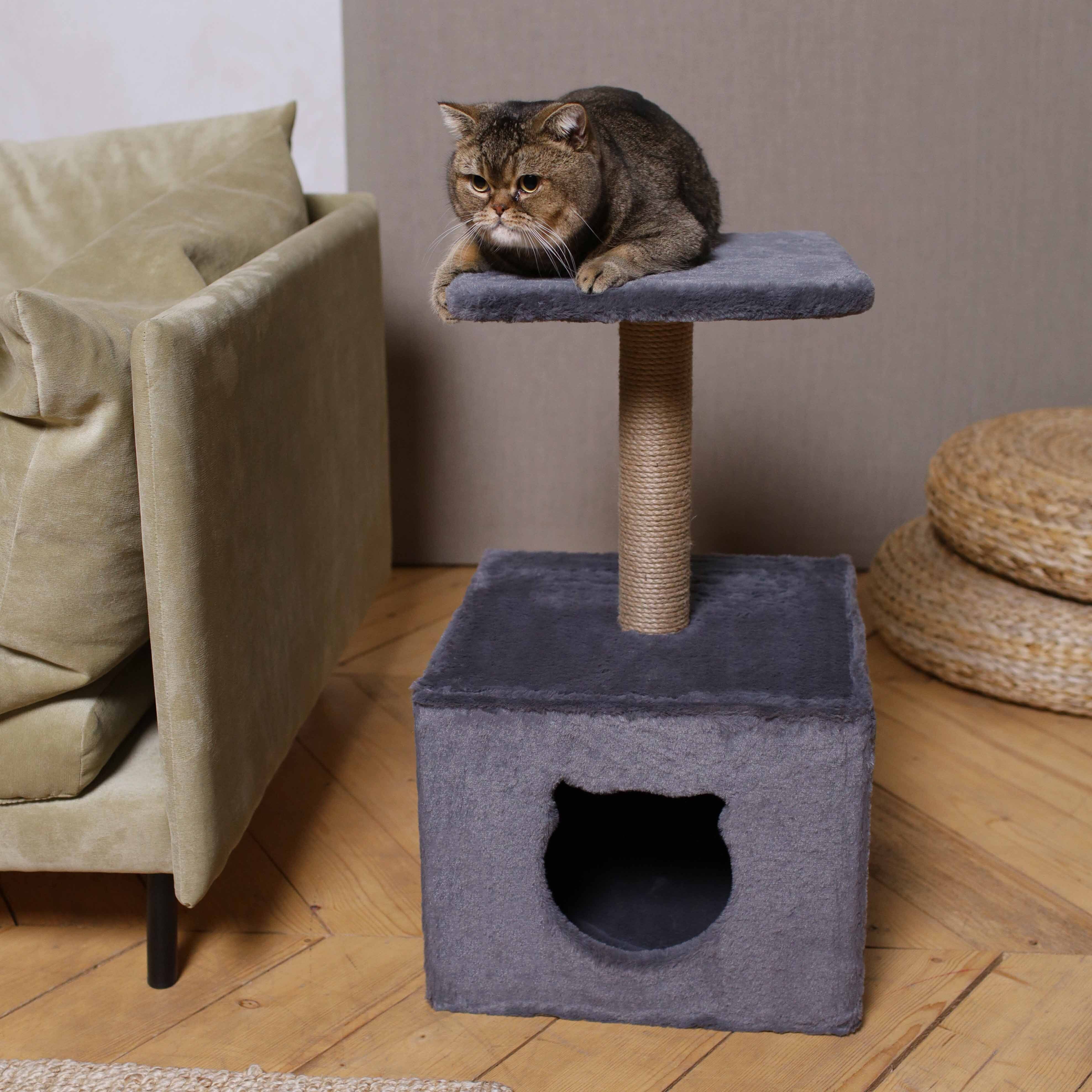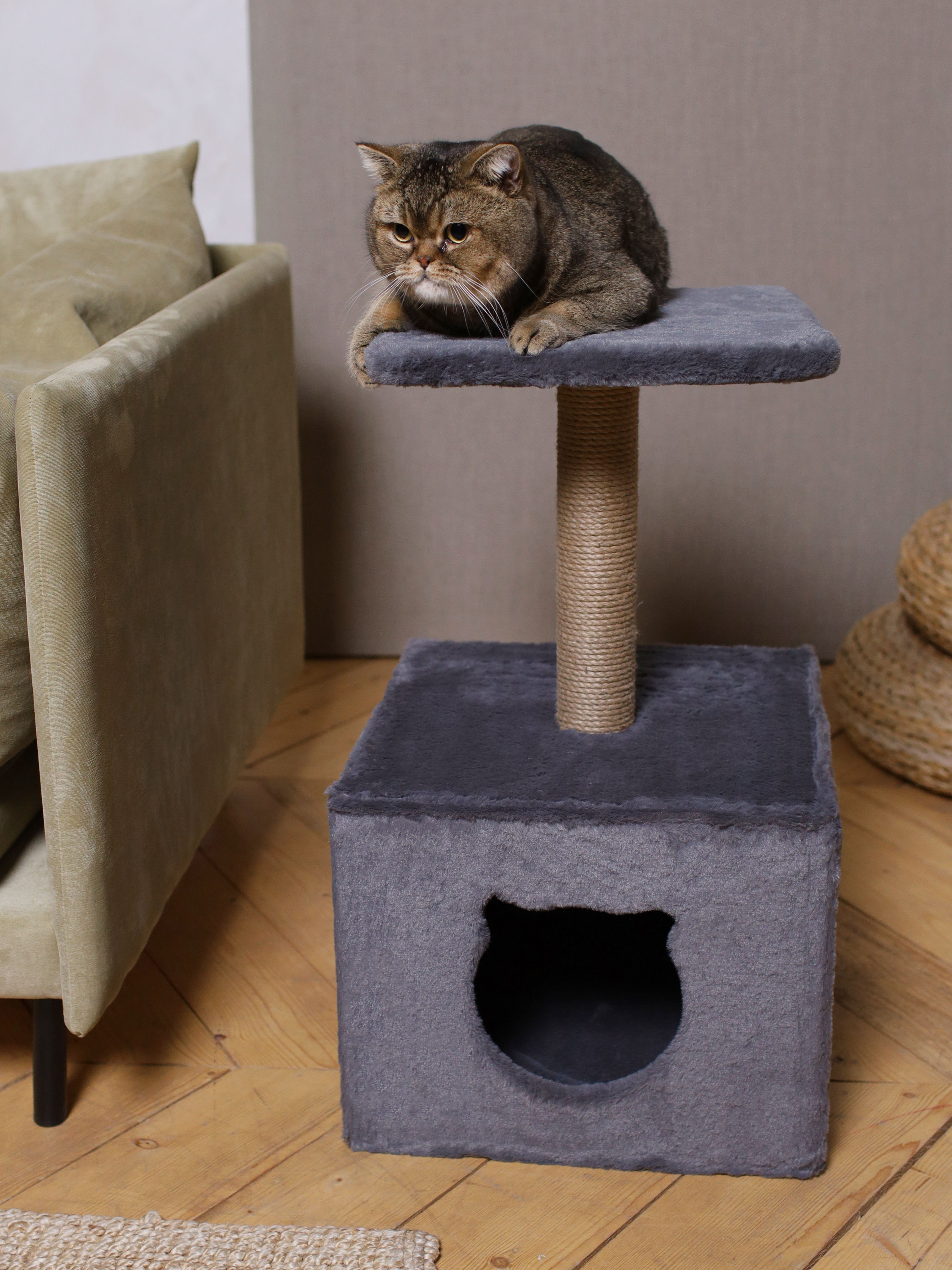 Когтеточка-домик 40х40х67 см, джут. Серый