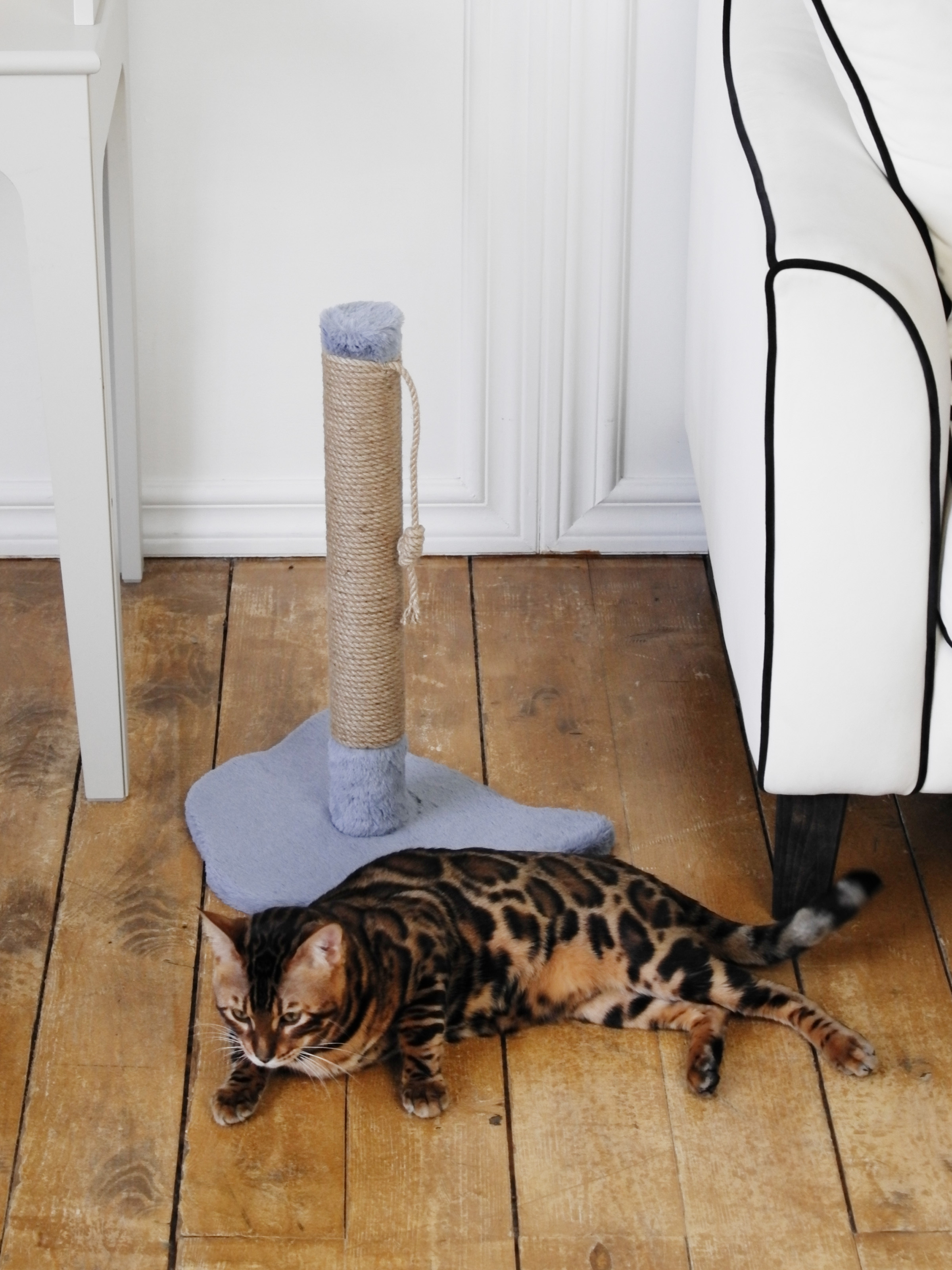 Когтеточка-столбик, кот, 33х35х54см, джут. Пушистый мех пыльная сирень 78-6