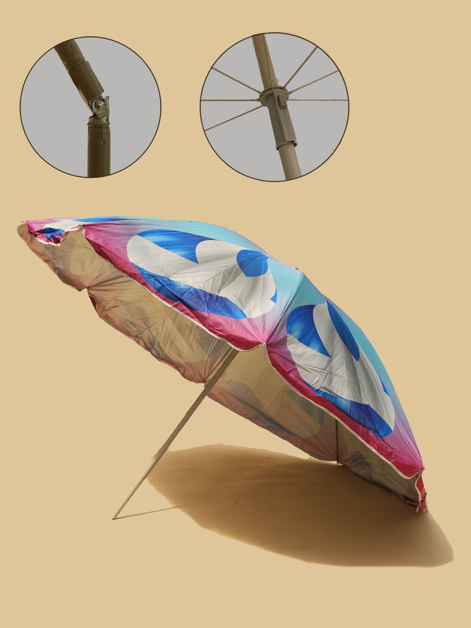 Зонт пляжный, с наклоном, d200cм, h200см, п/э190t, повышенная плотность, фотопечать, 8 спиц, чехол