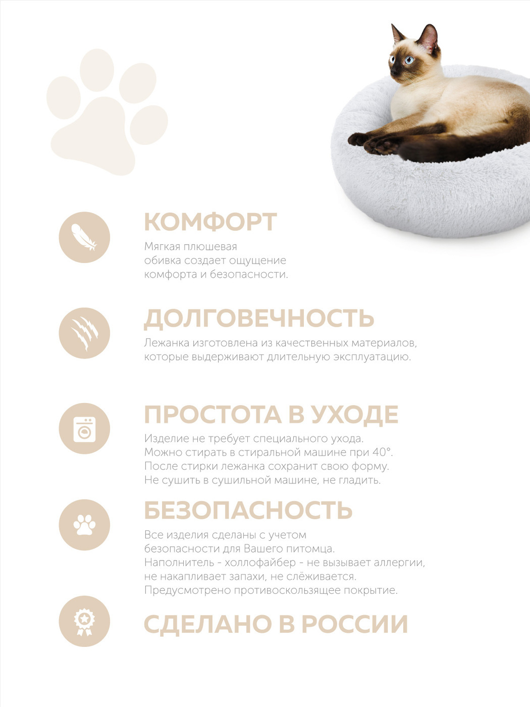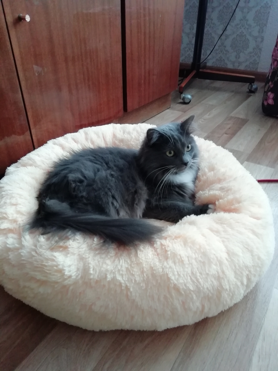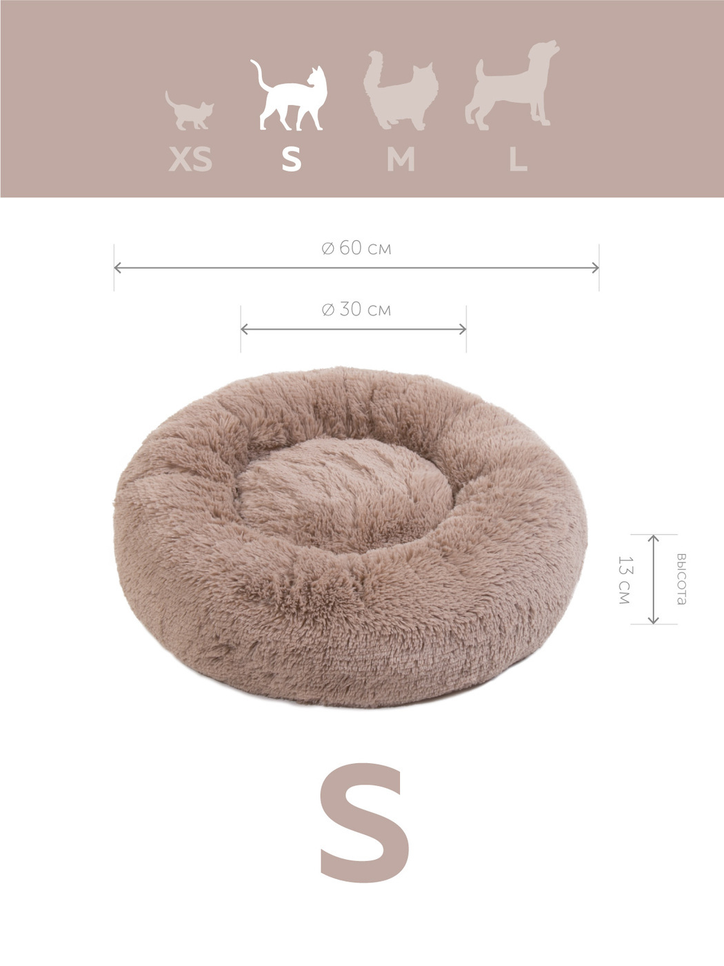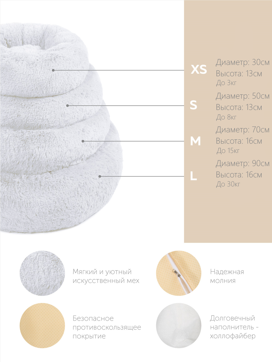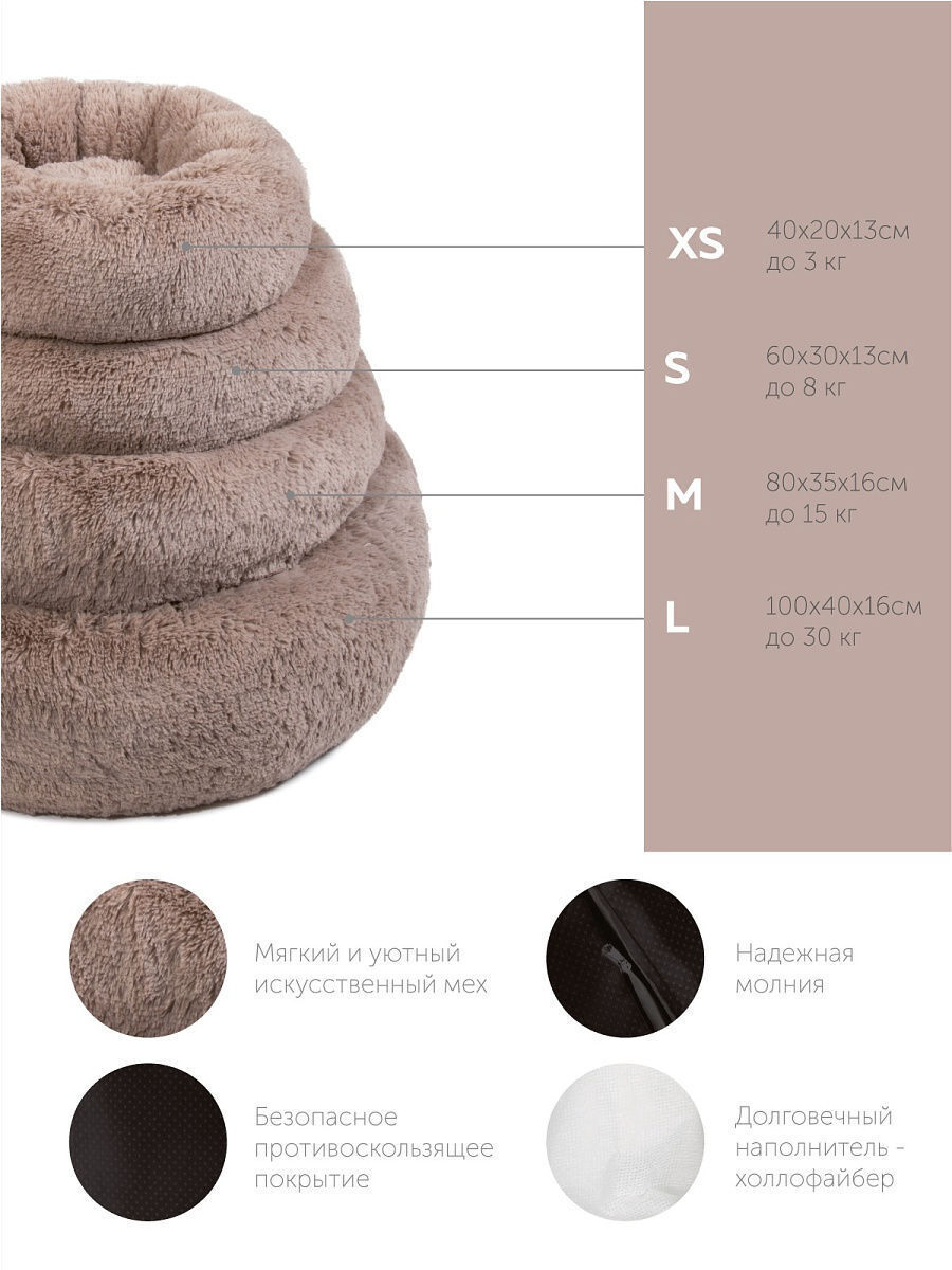 Пушистая лежанка d30 см +-5 см для мелких кошек и собак цвет серо-бежевый артикул PNL40