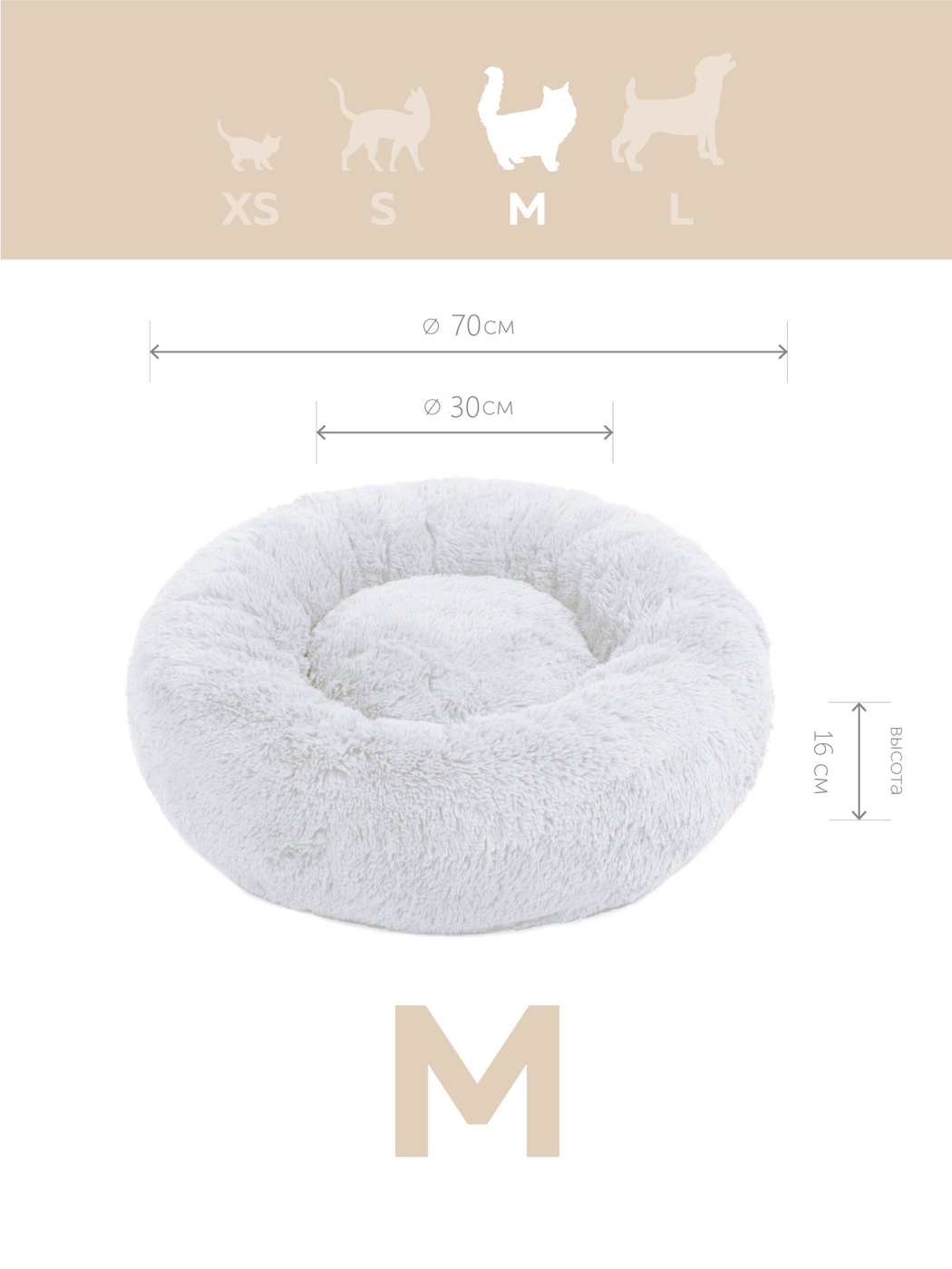 Пушистая лежанка d70 см +-5 см для крупных кошек и собак цвет белый артикул PNL80