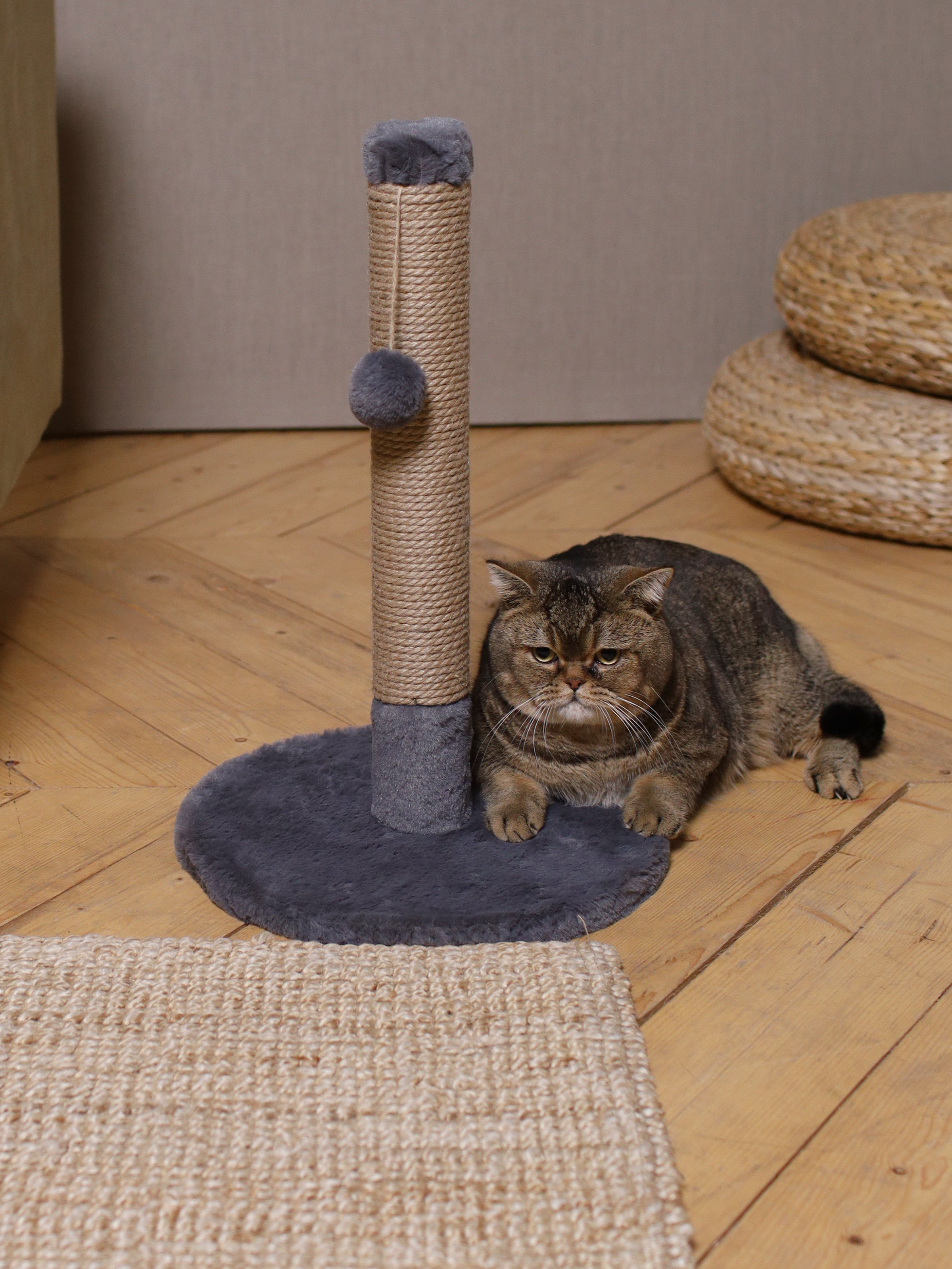 Когтеточка-столбик, круг, 35х35х54 см, джут. Серый