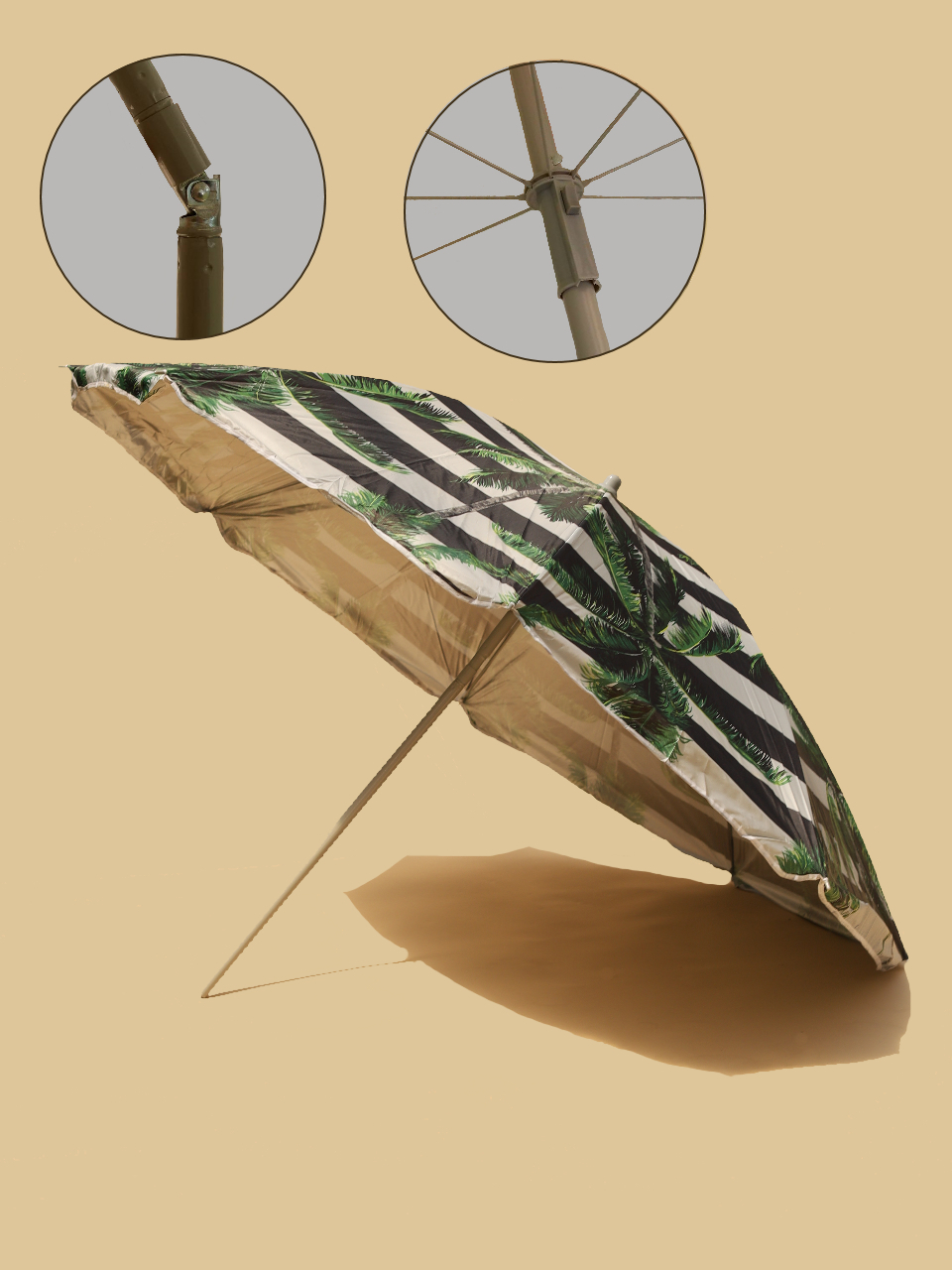 Зонт пляжный, с наклоном, d200cм, h200см, п/э190t, повышенная плотность, фотопечать, 8 спиц, чехол