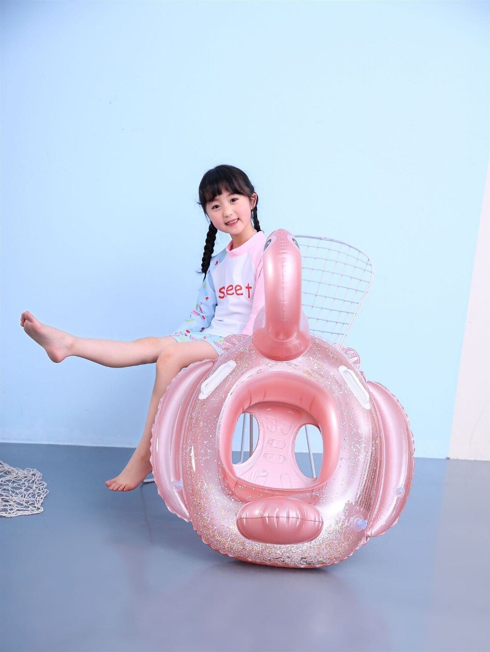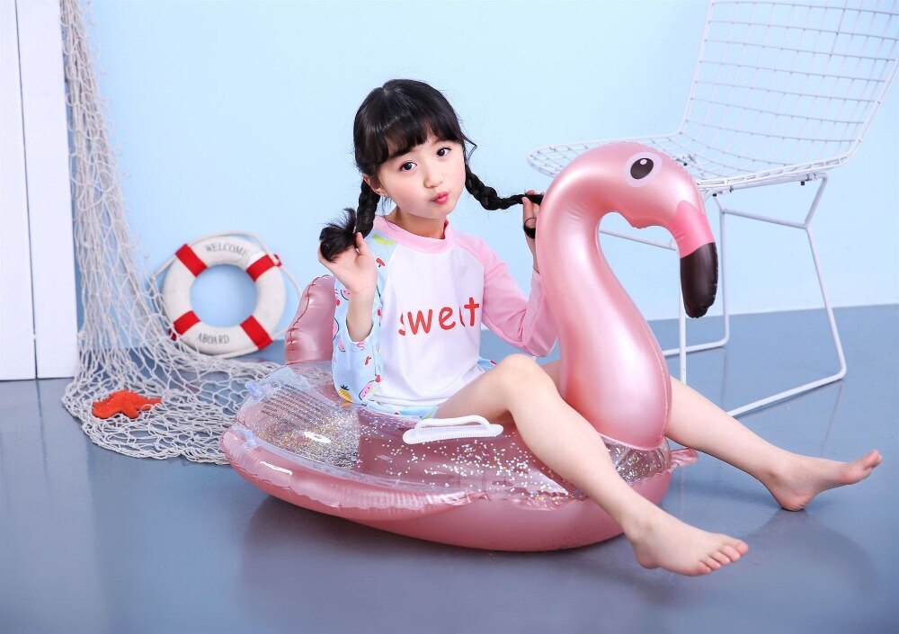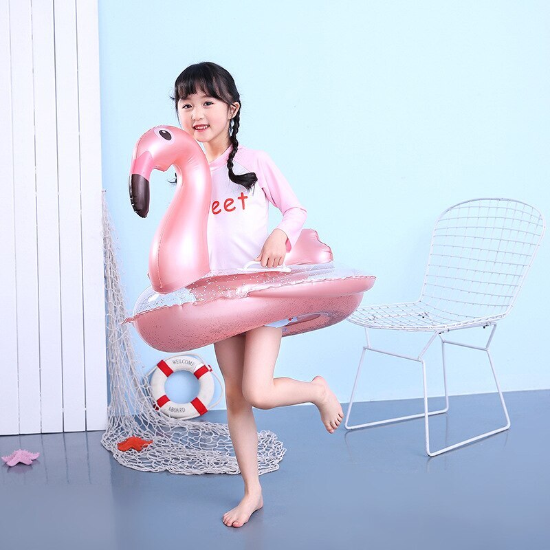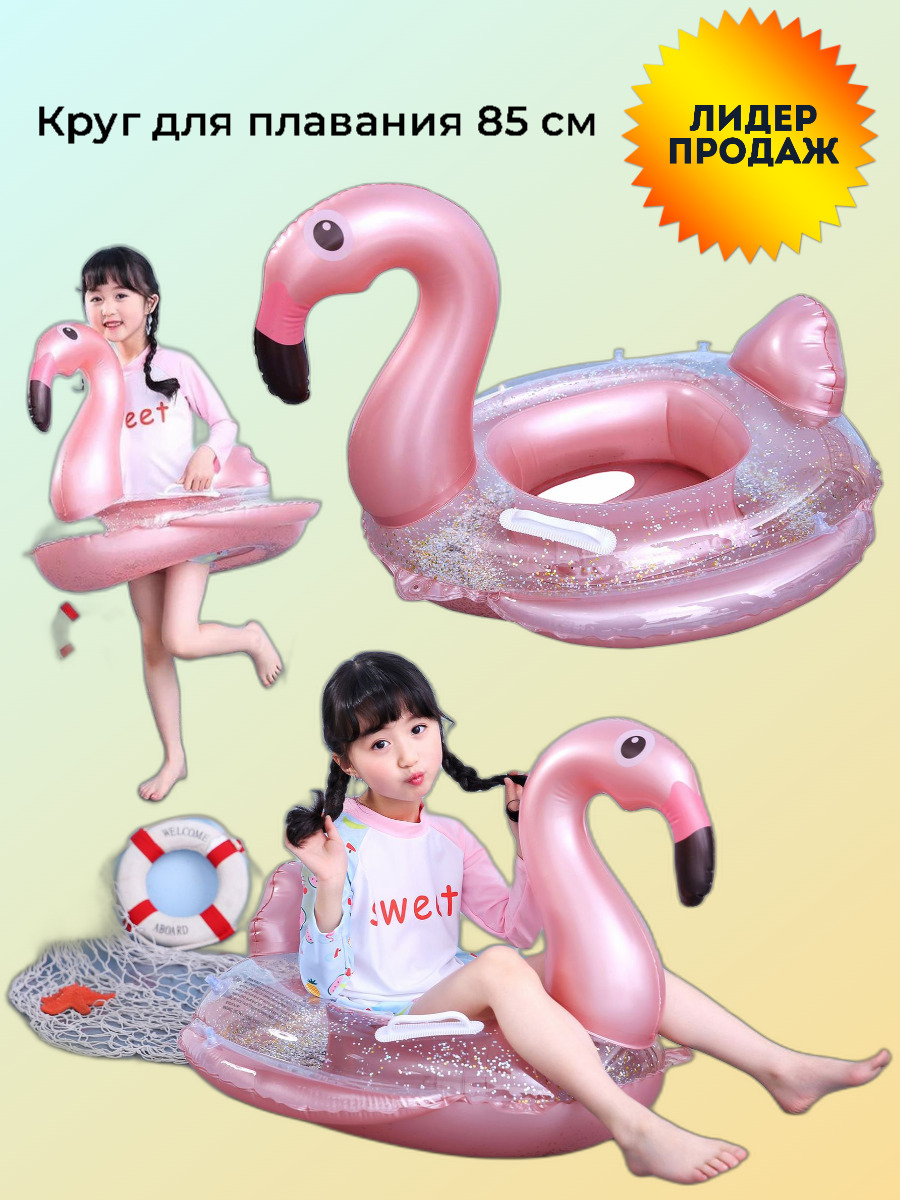Круг для плавания 85 см с ножками и блестками Фламинго