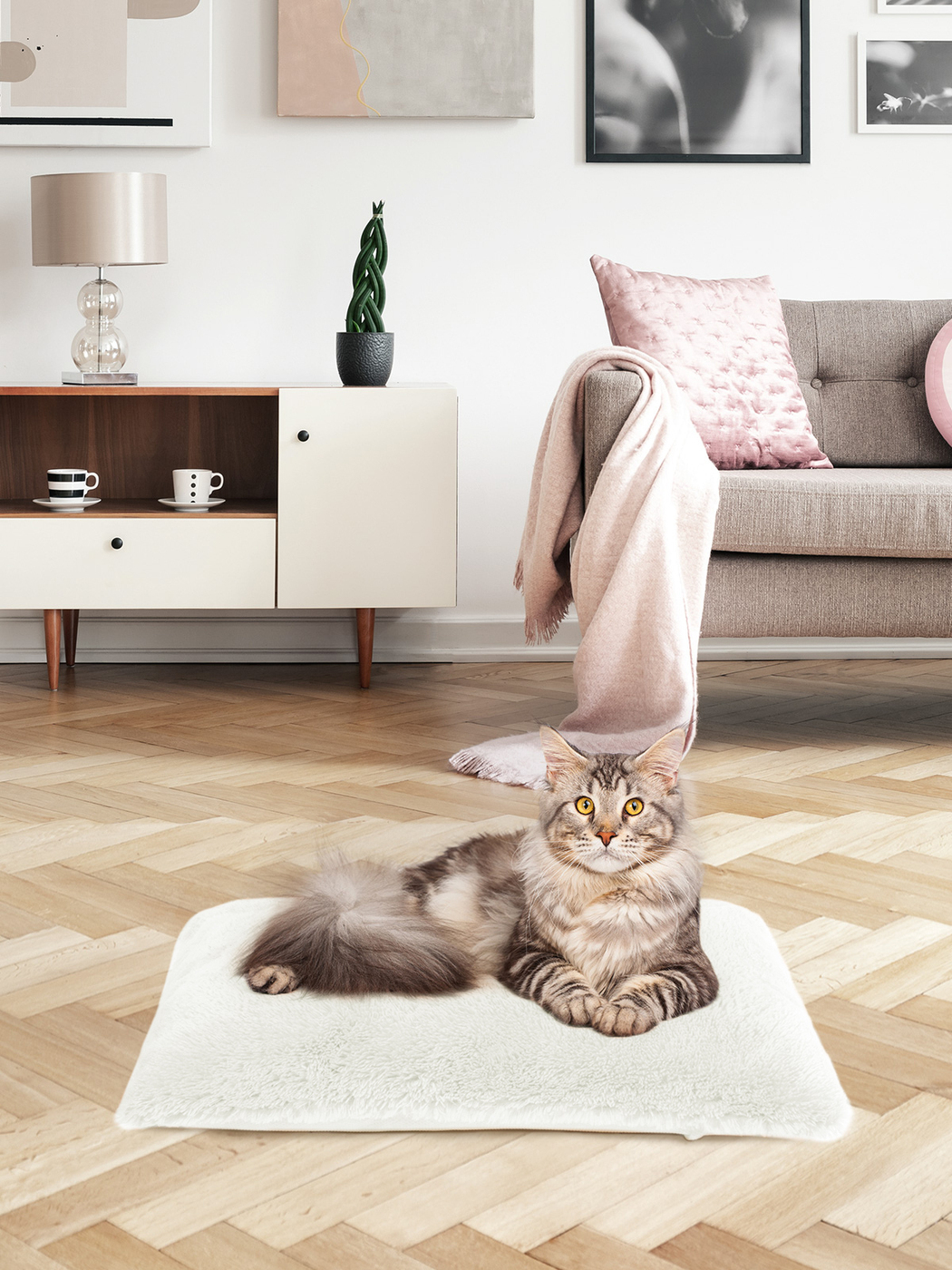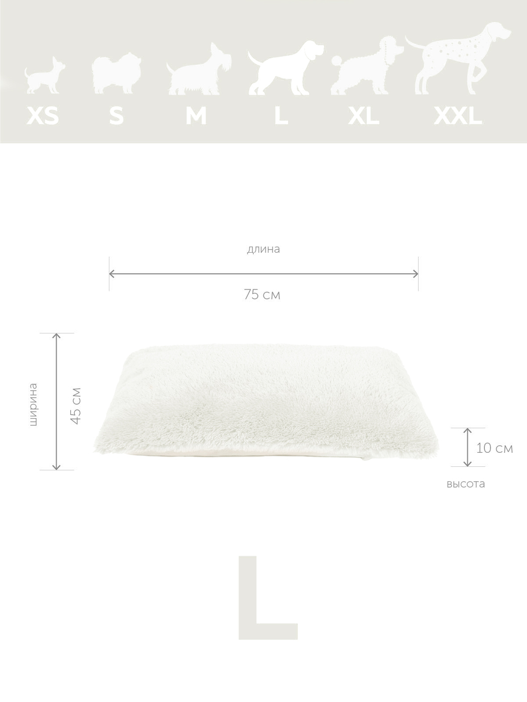 Пушистая лежанка 75х45см +-5 см для кошек и собак цвет белый артикул PM_L