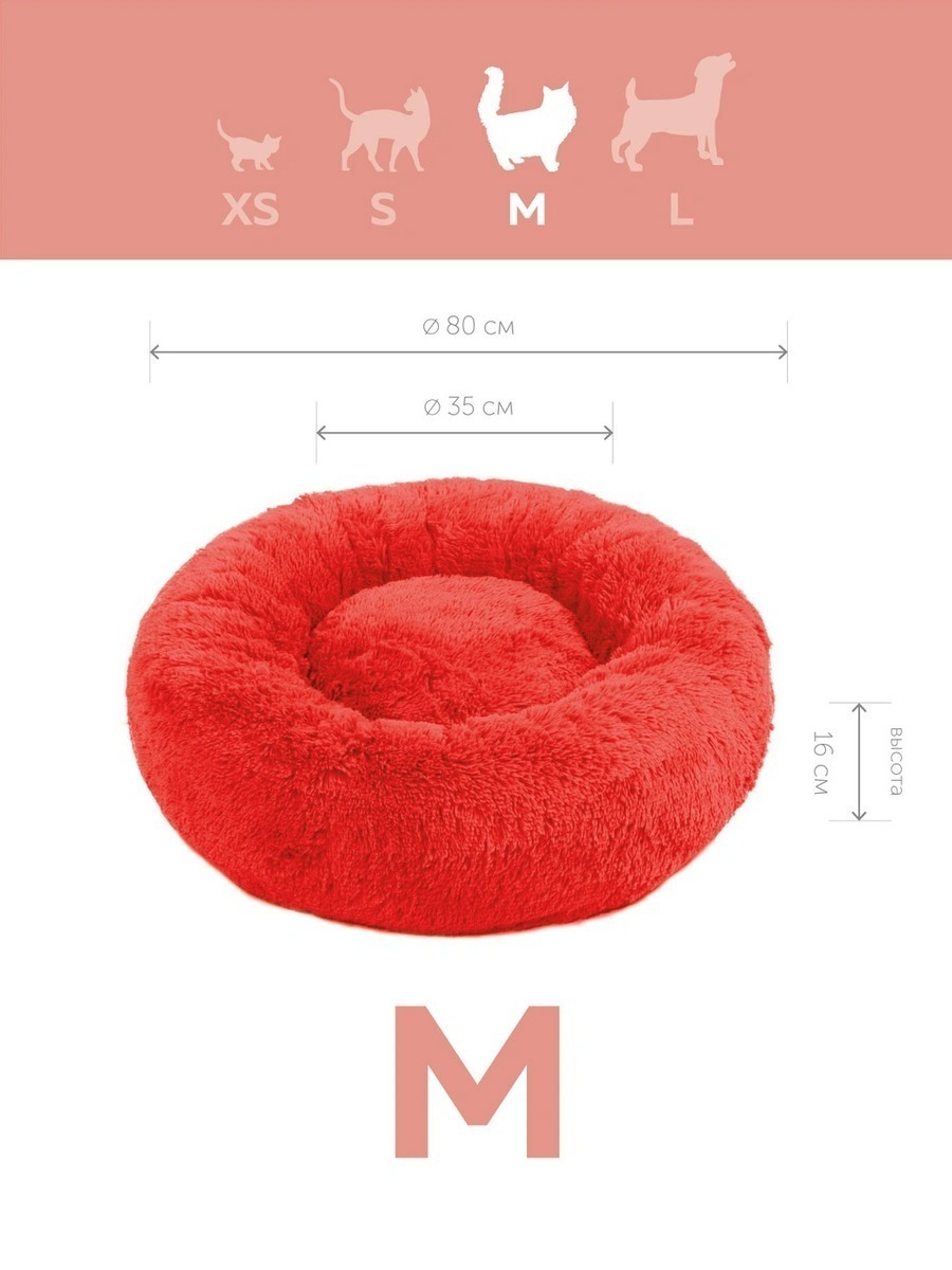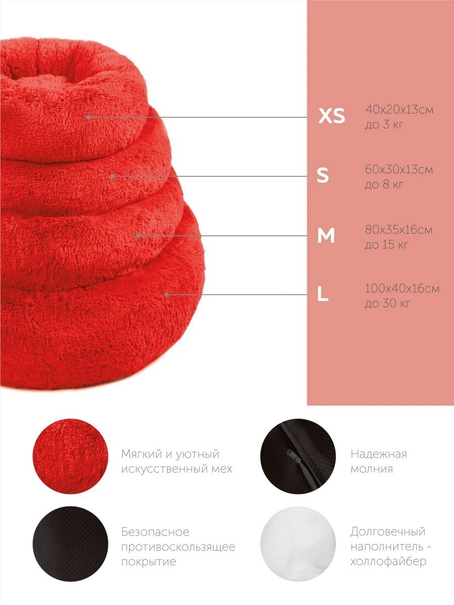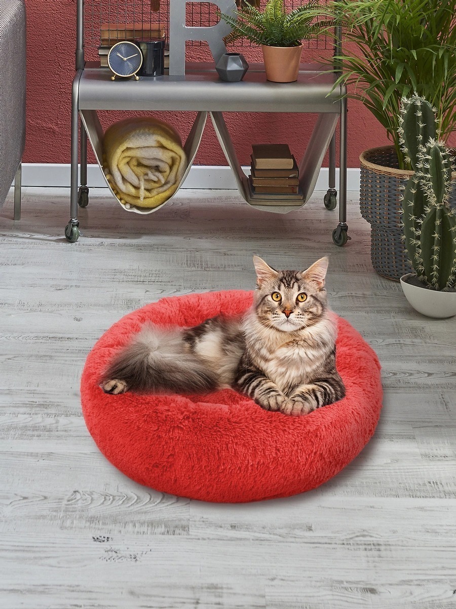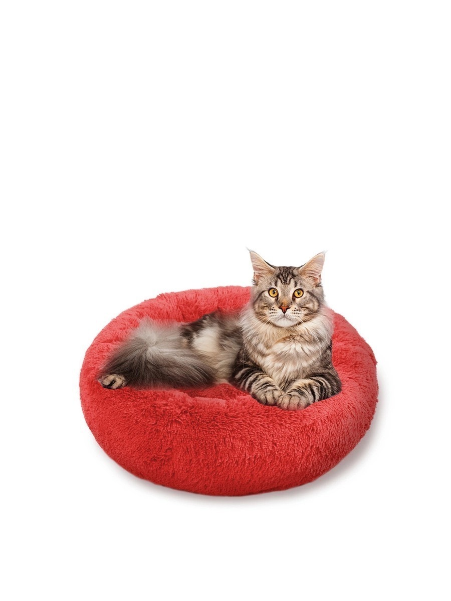 Пушистая лежанка d70 см +-5 см для крупных кошек и собак цвет красный артикул PNL80