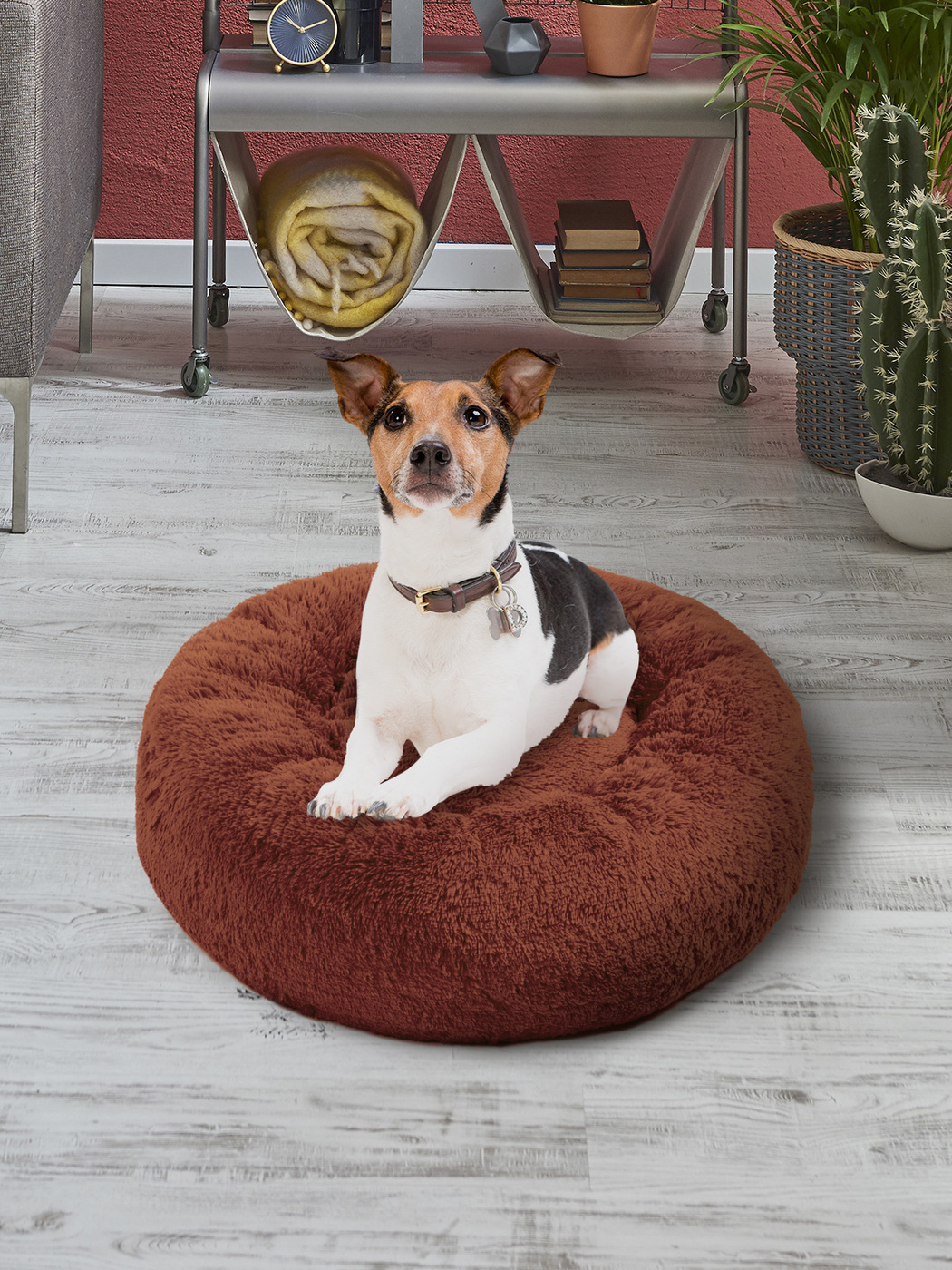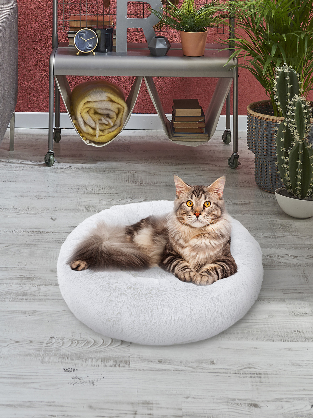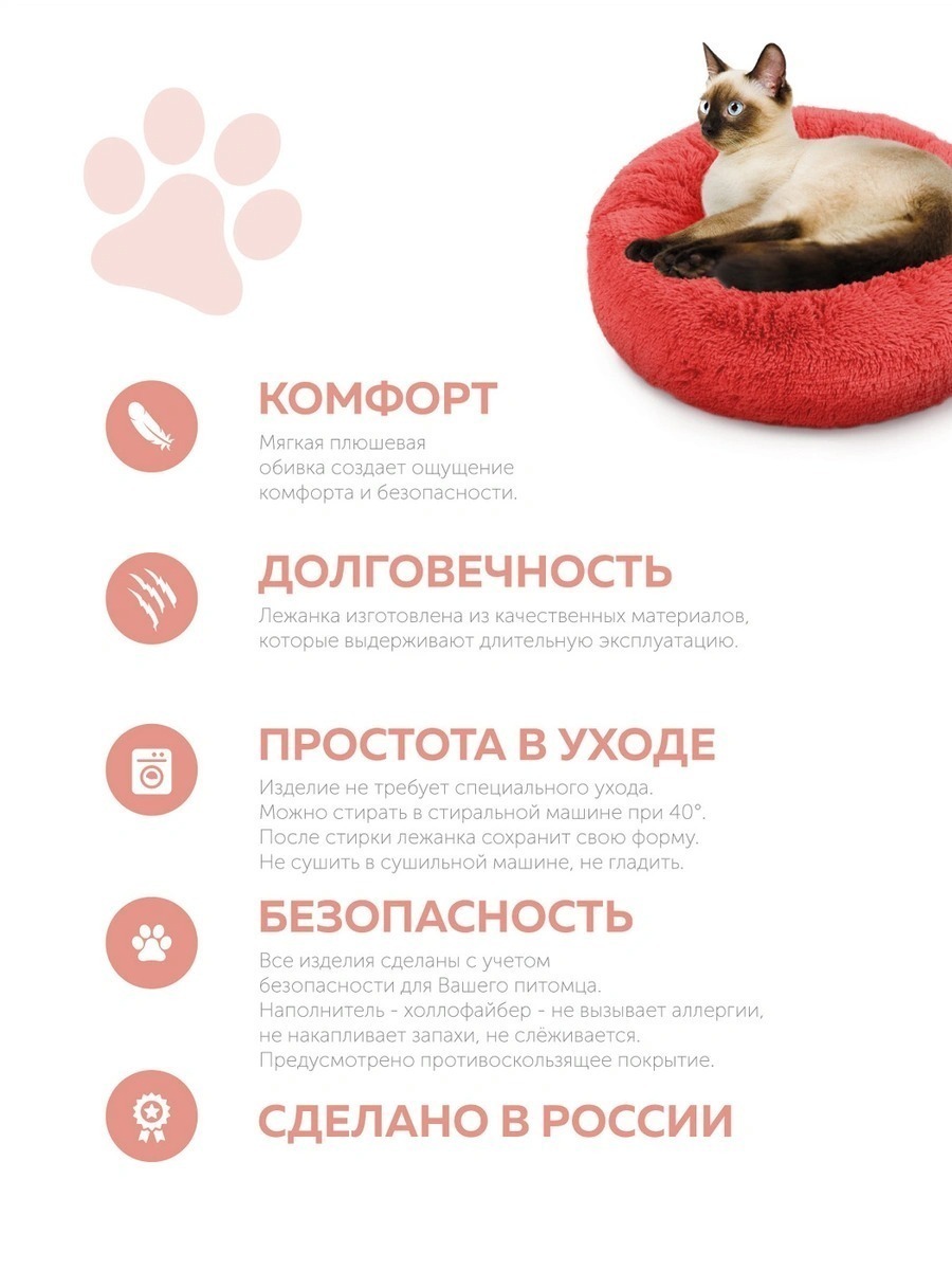 Пушистая лежанка d70 см +-5 см для крупных кошек и собак цвет красный артикул PNL80