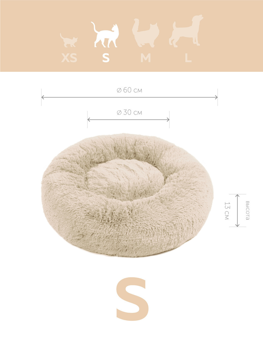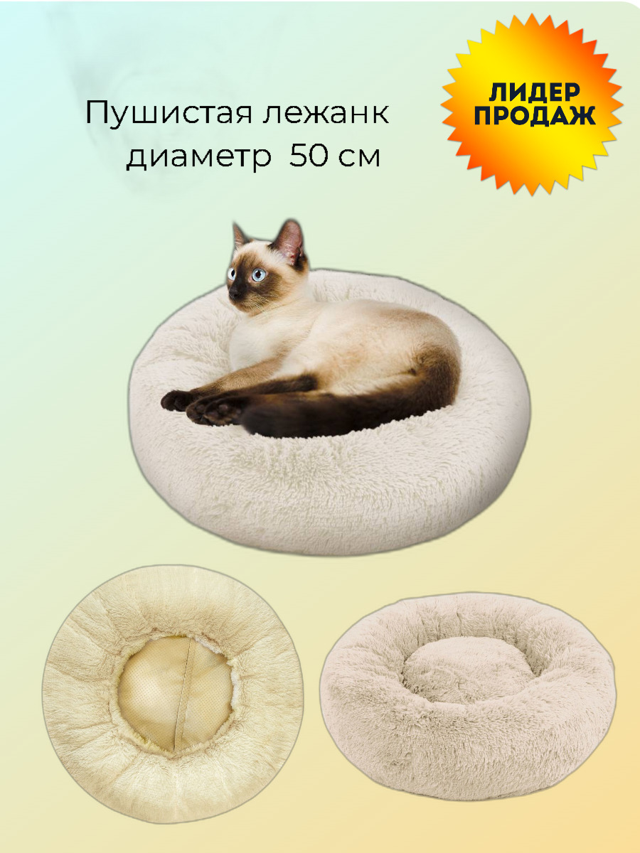 Пушистая лежанка d50 см +-5 см для средних кошек и собак цвет серо-бежевый артикул PNL60