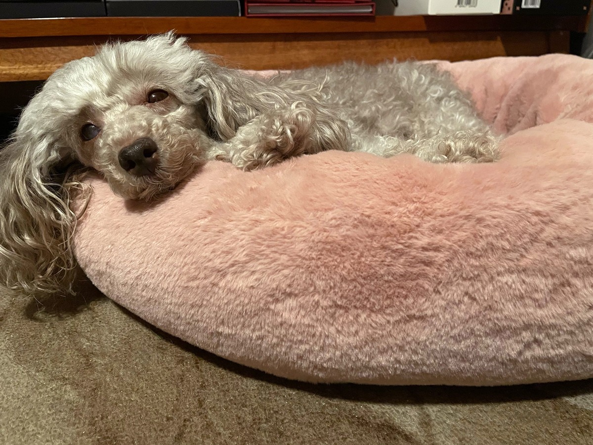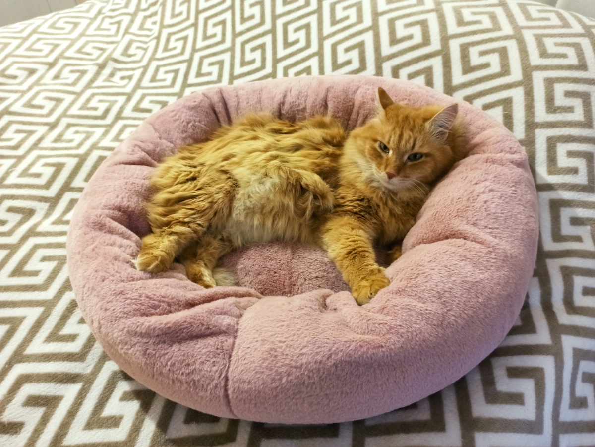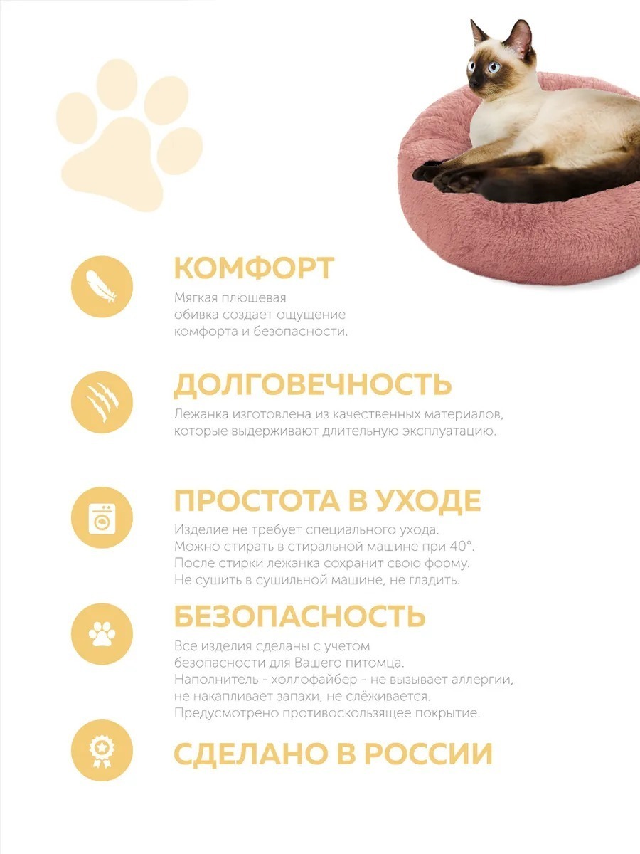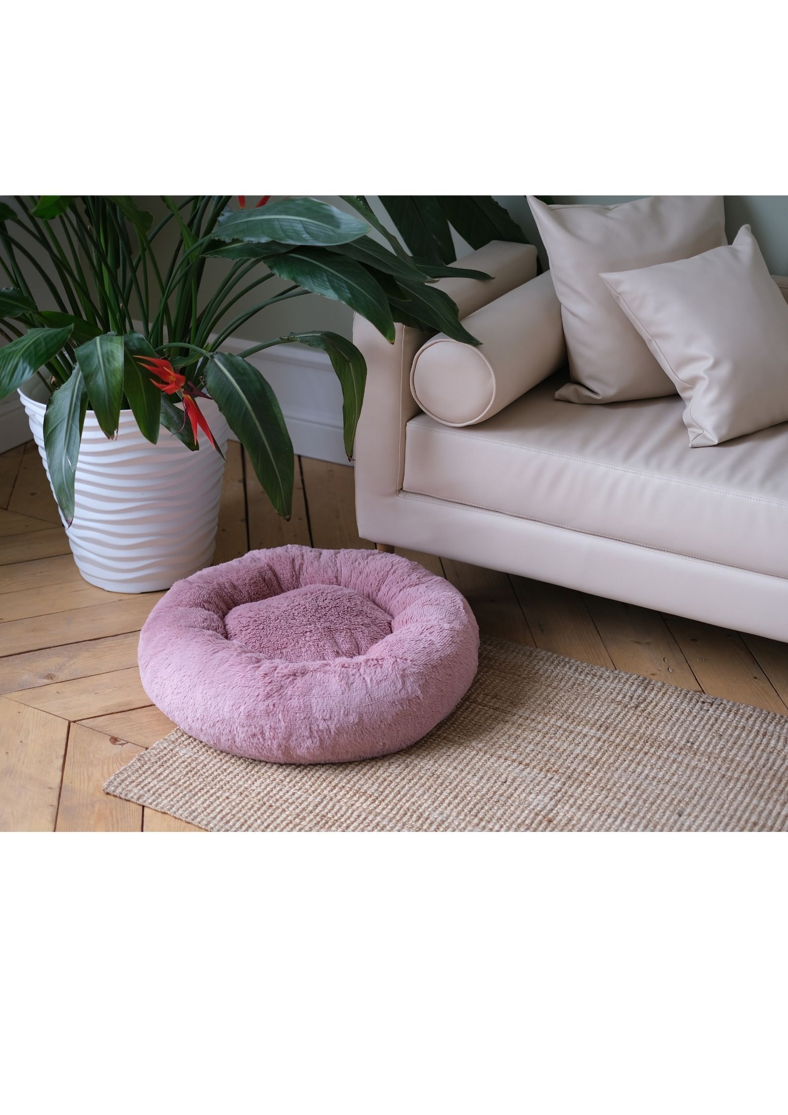 Пушистая лежанка d70 см +-5 см для крупных кошек и собак цвет пудра артикул PNL80