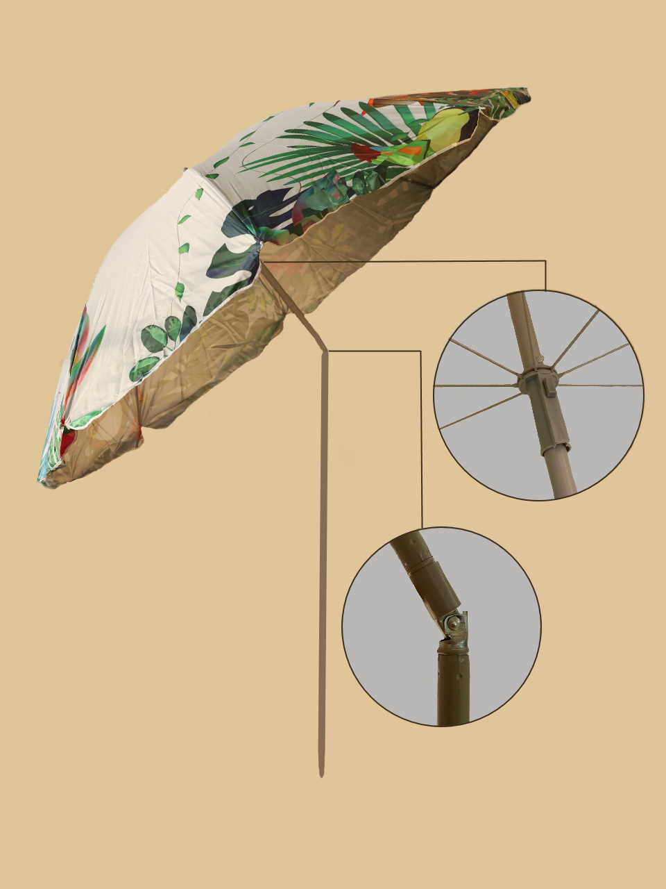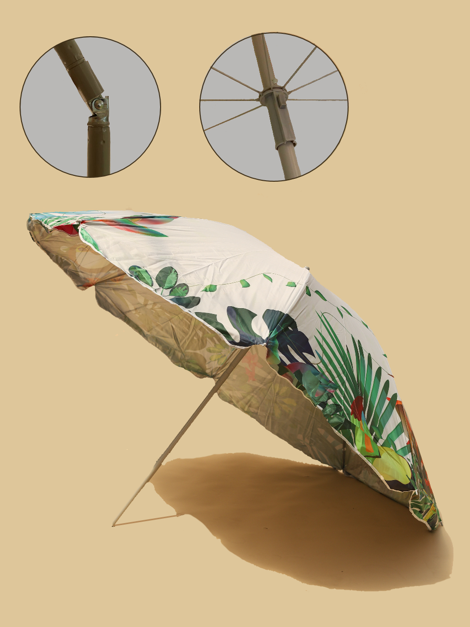 Зонт пляжный, с наклоном, d200cм, h200см, п/э190t, повышенная плотность, фотопечать, 8 спиц, чехол