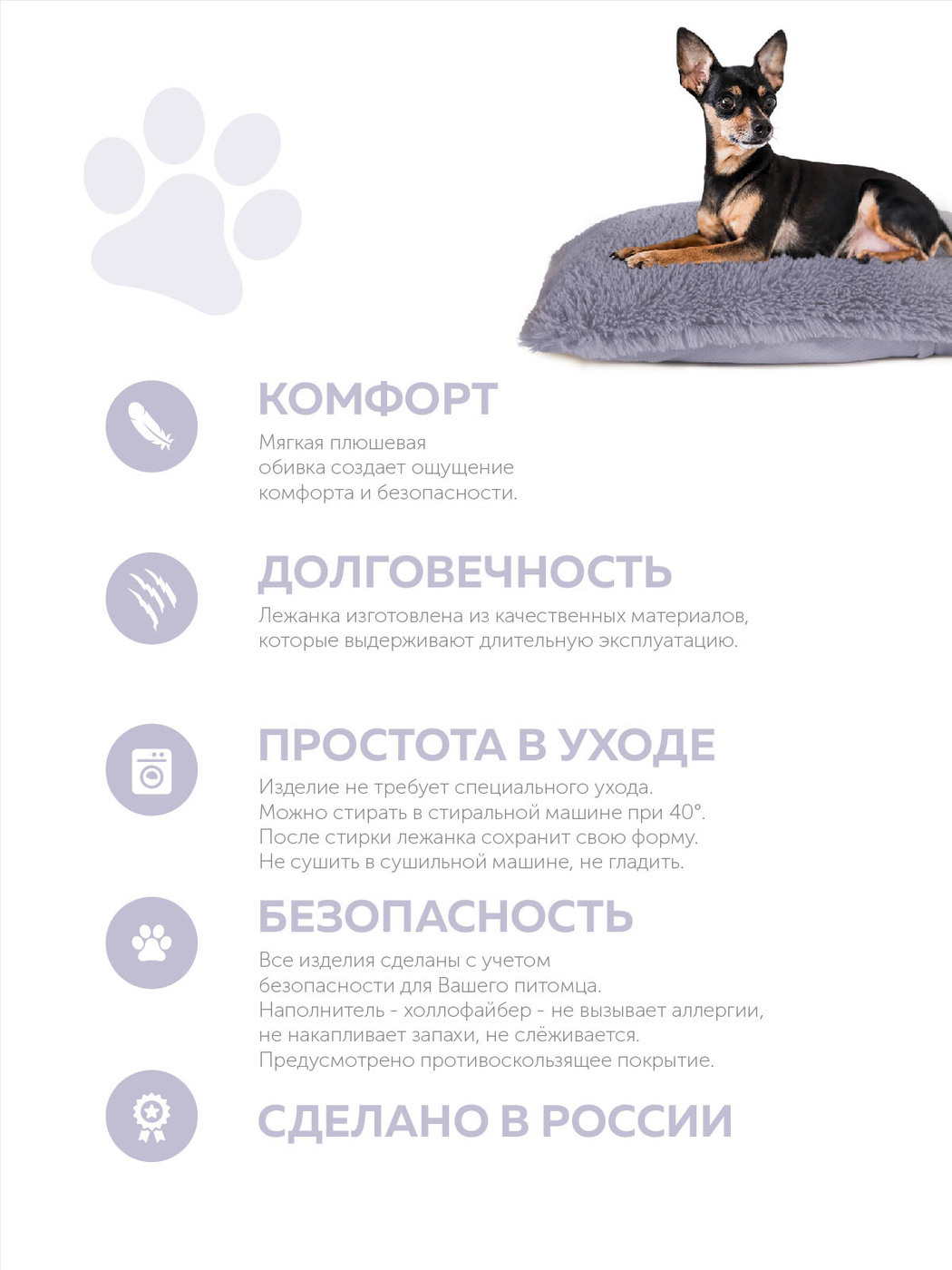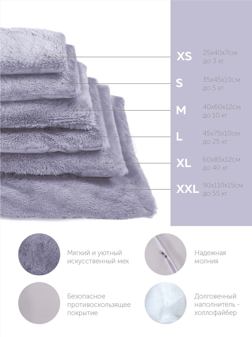 Пушистая лежанка 45х35см +-5 см для мелких кошек и собак цвет сирень артикул PM_S