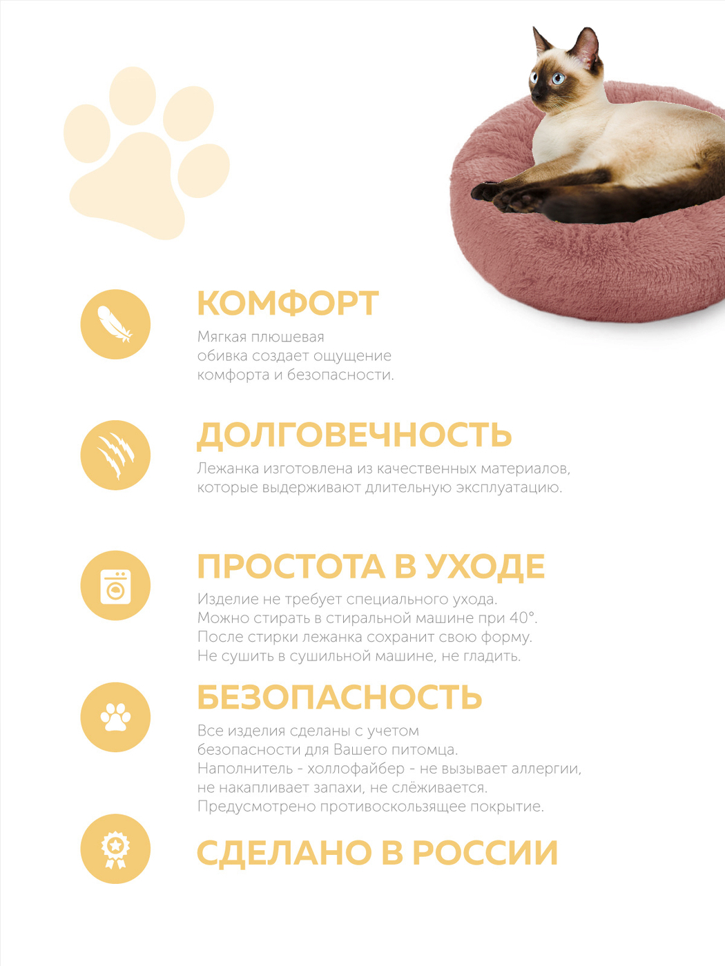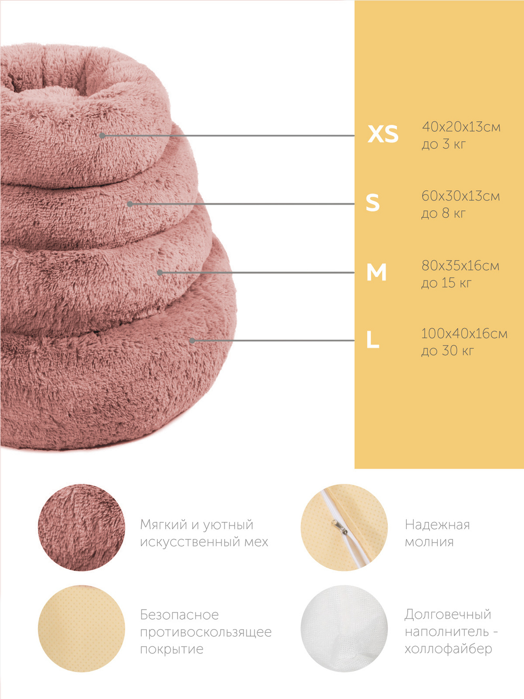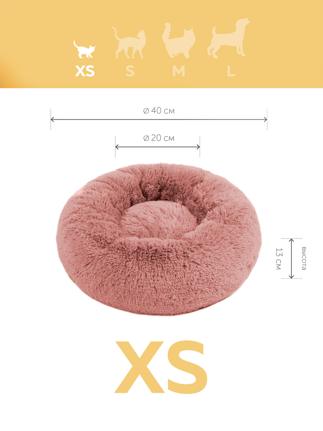 Пушистая лежанка d30 см +-5 см для собак и кошек цвет пудра артикул PNL40
