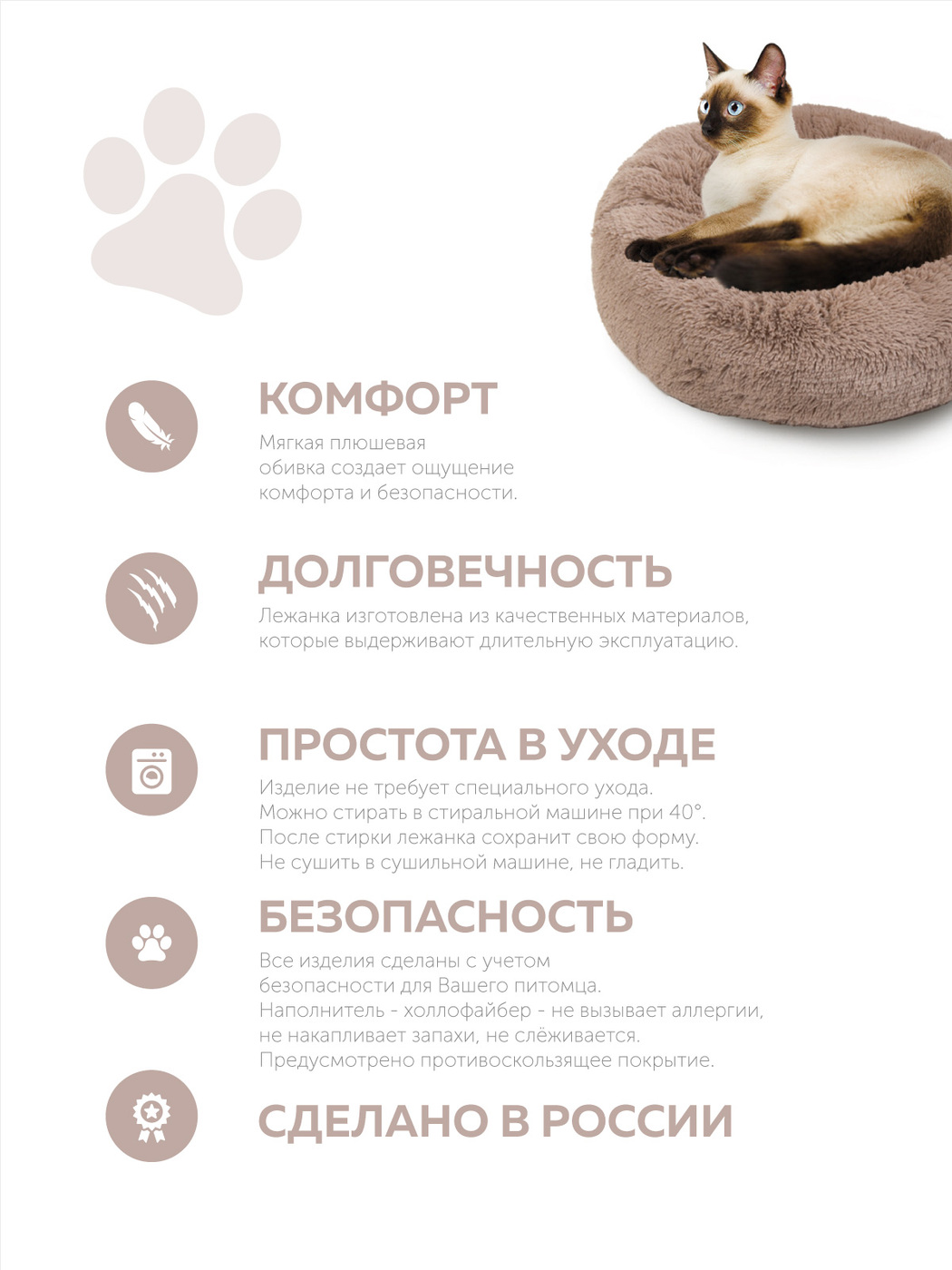 Пушистая лежанка d50 см +-5 см для средних кошек и собак цвет дымчатый артикул PNL60