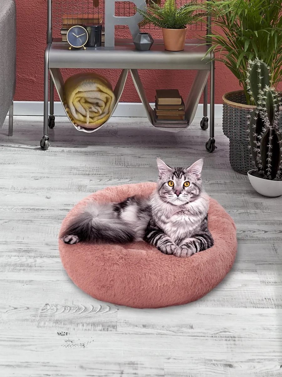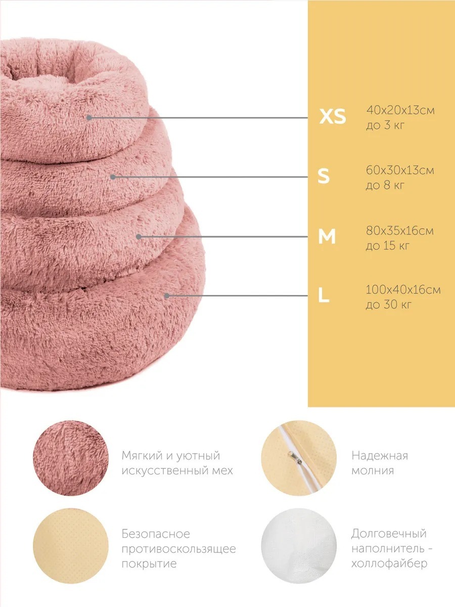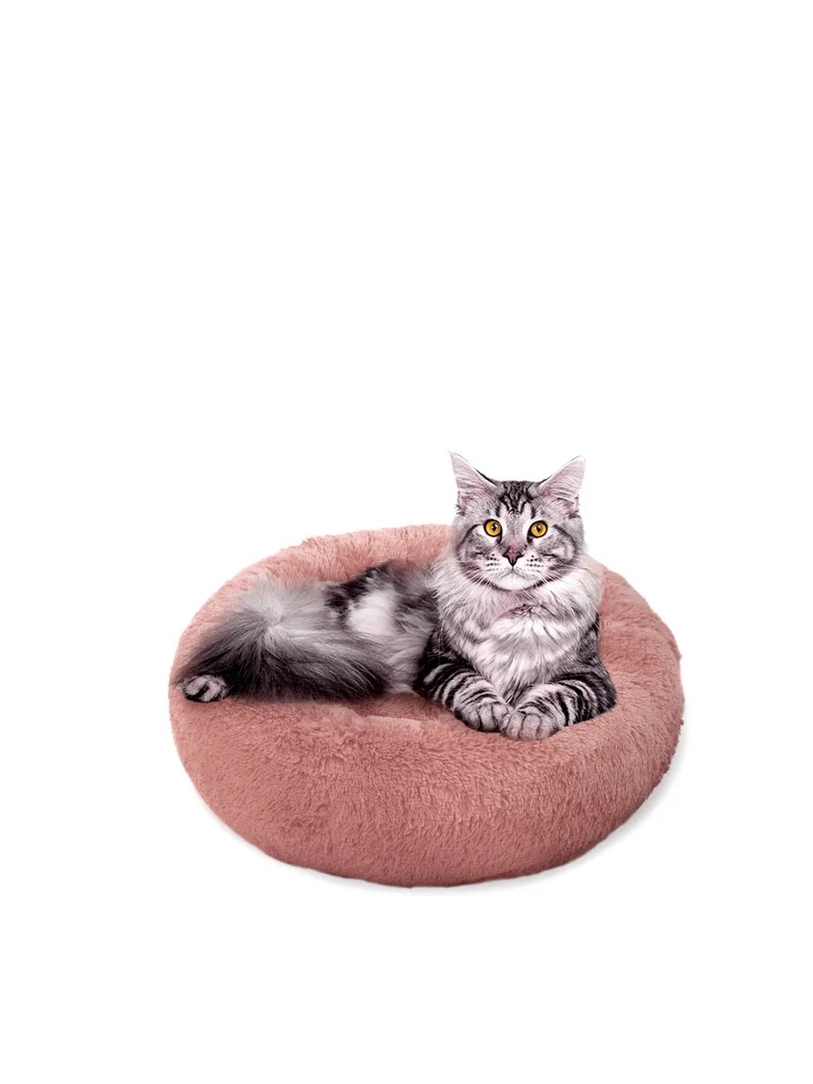 Пушистая лежанка d70 см +-5 см для крупных кошек и собак цвет пудра артикул PNL80
