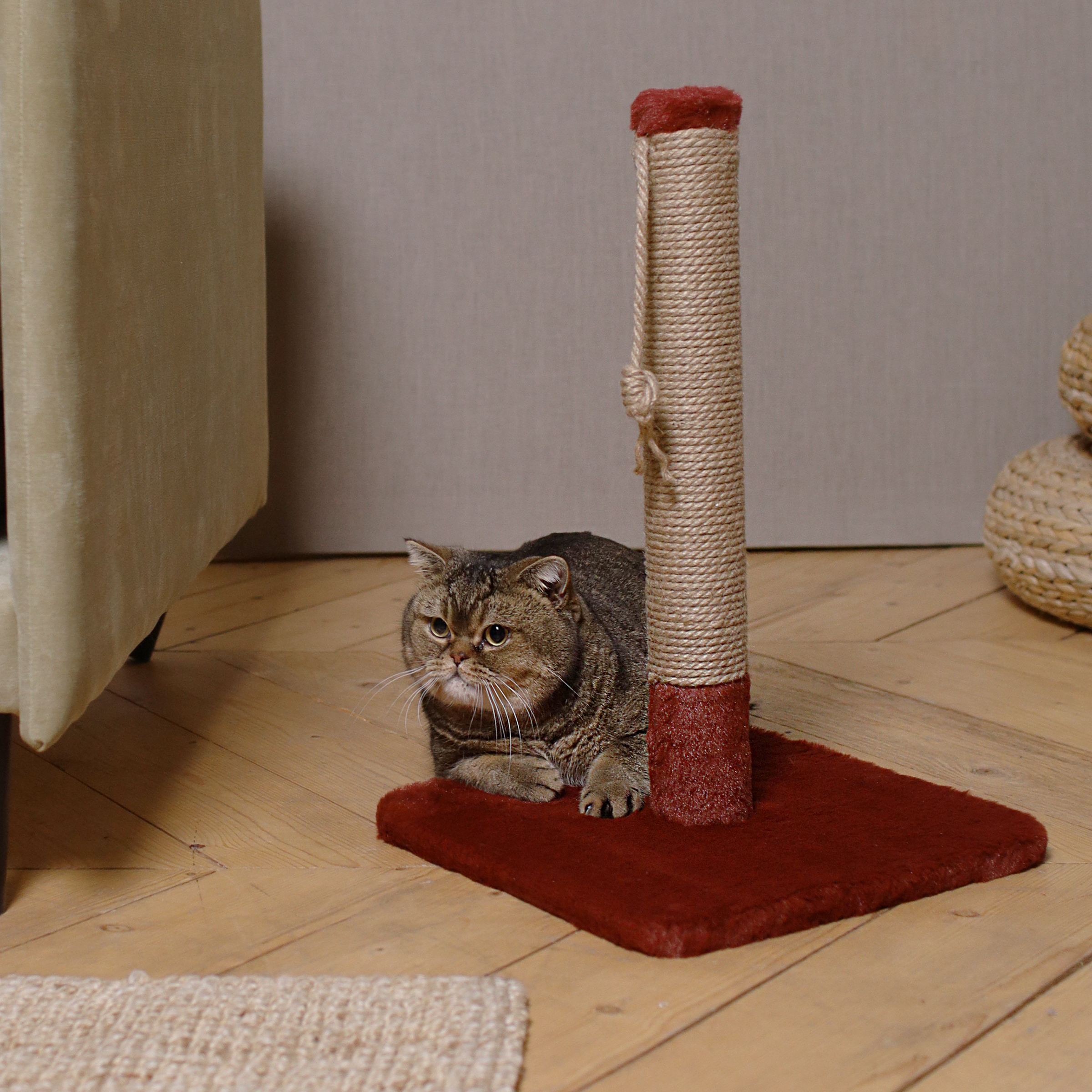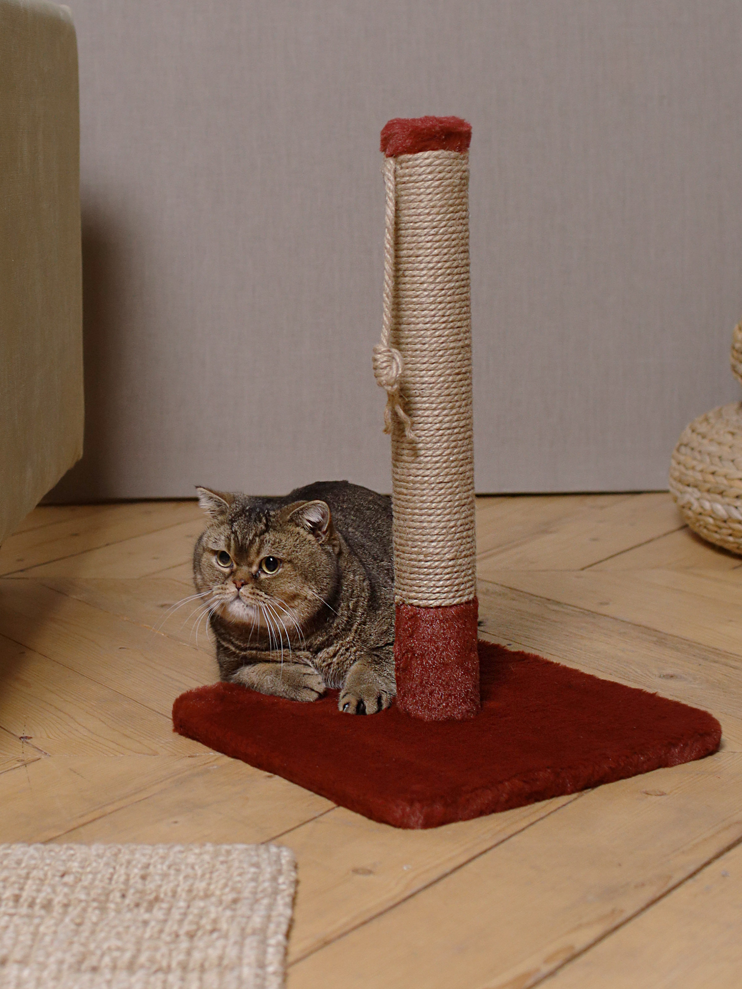 Когтеточка-столбик, квадрат, 35х35х54 см, джут. Красный