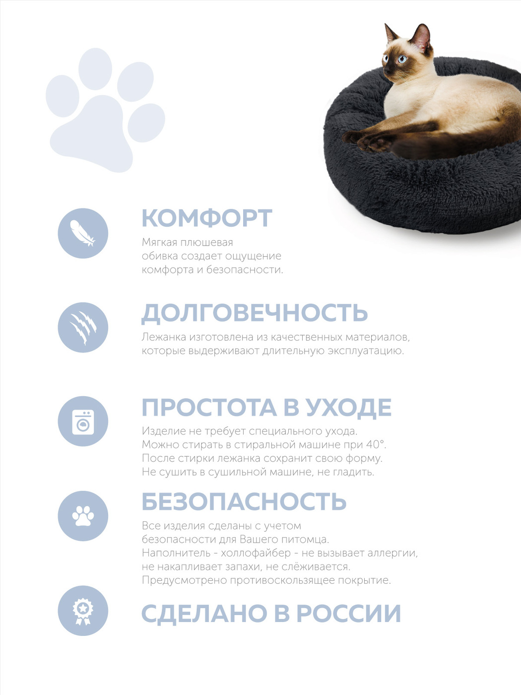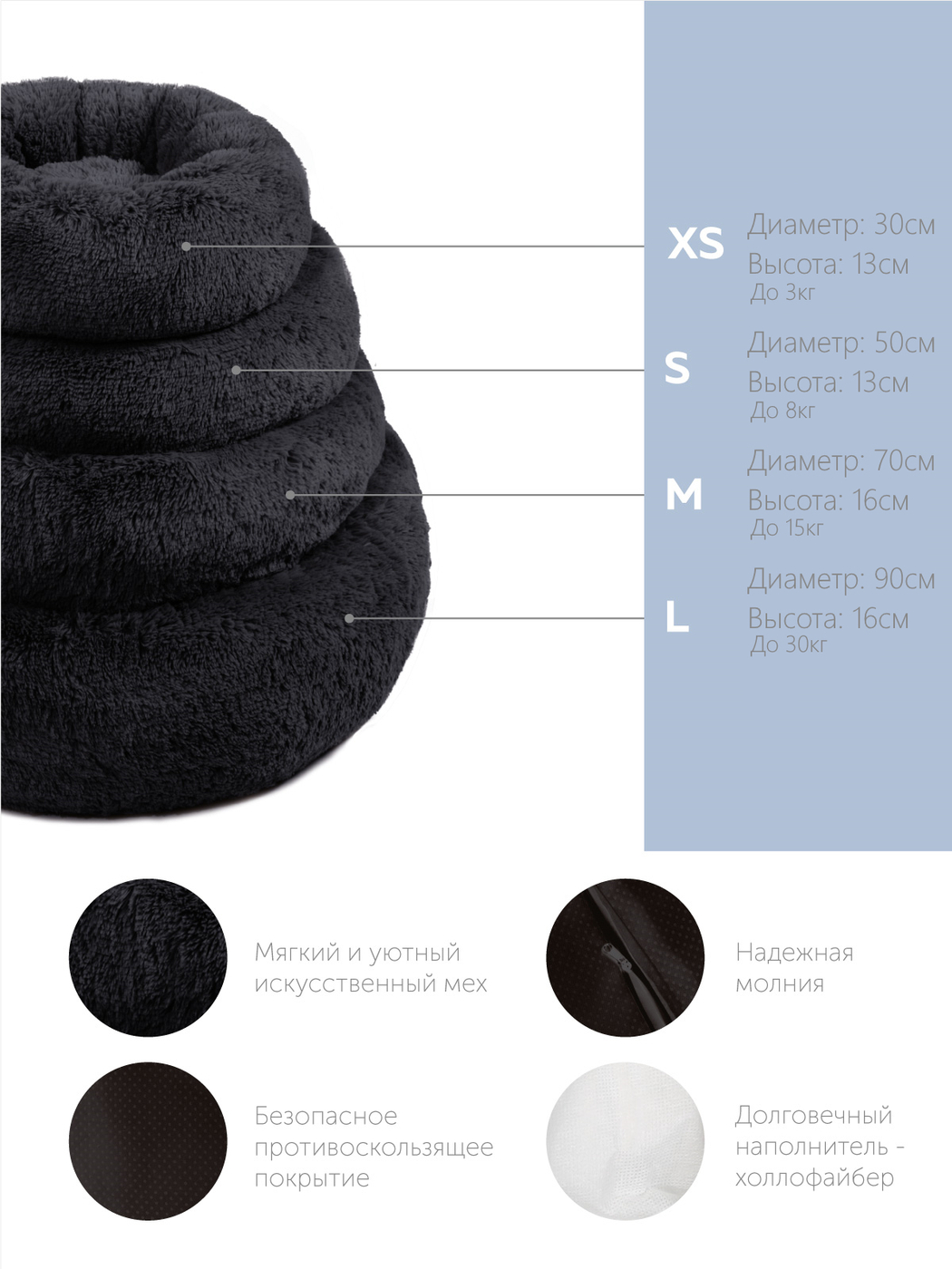 Пушистая лежанка d30 см +-5 см для мелких кошек и собак цвет айвори артикул PNL40