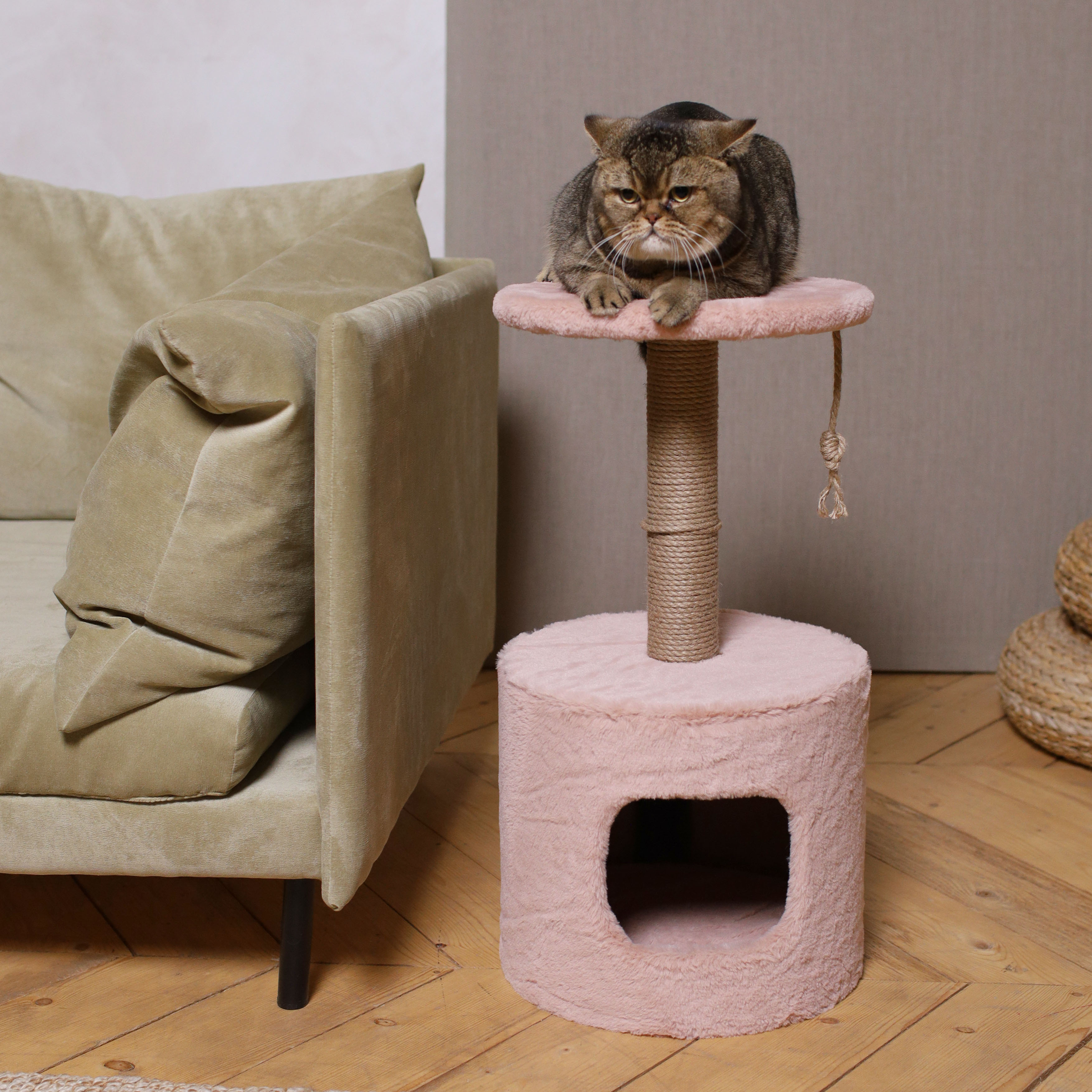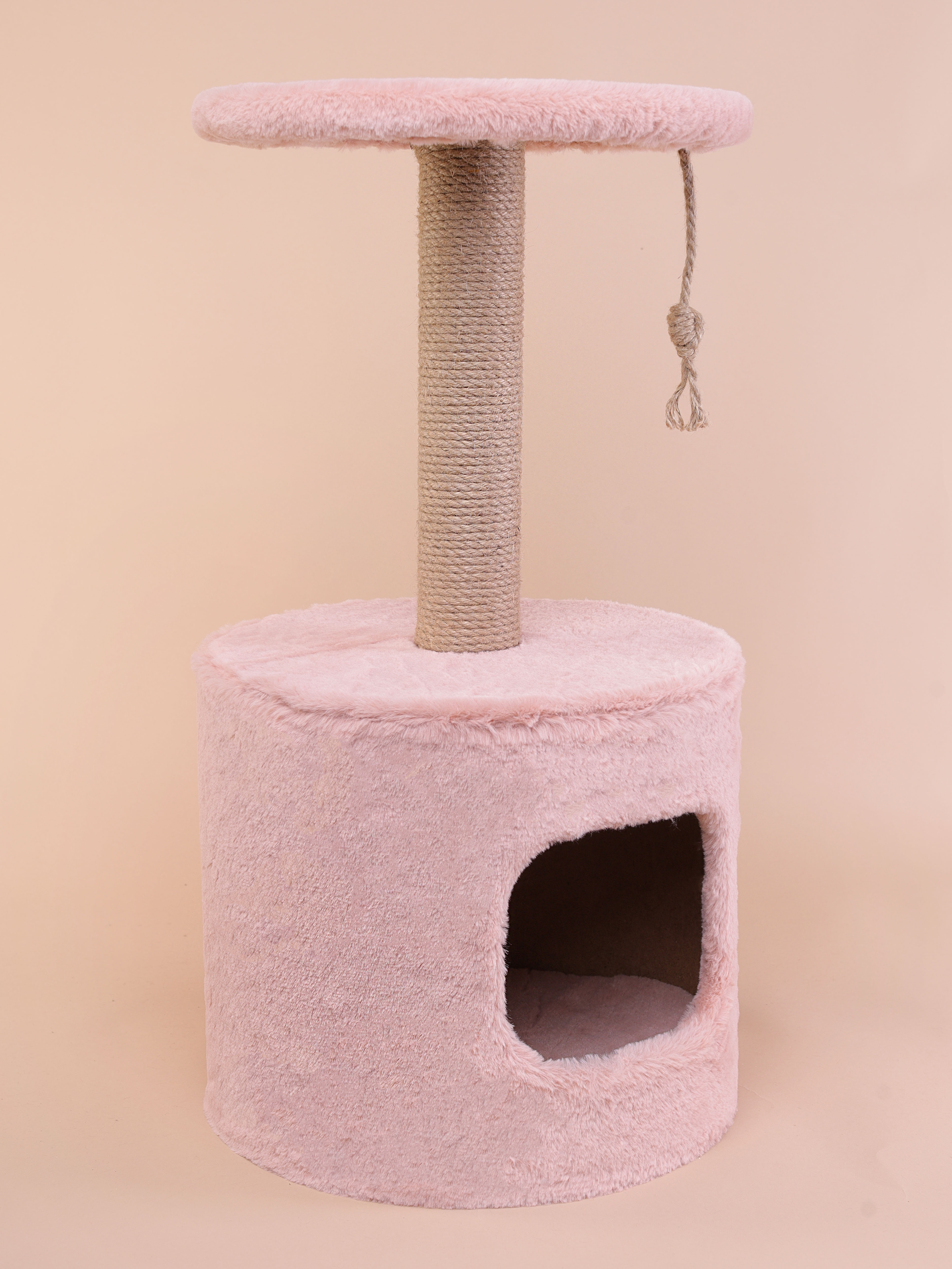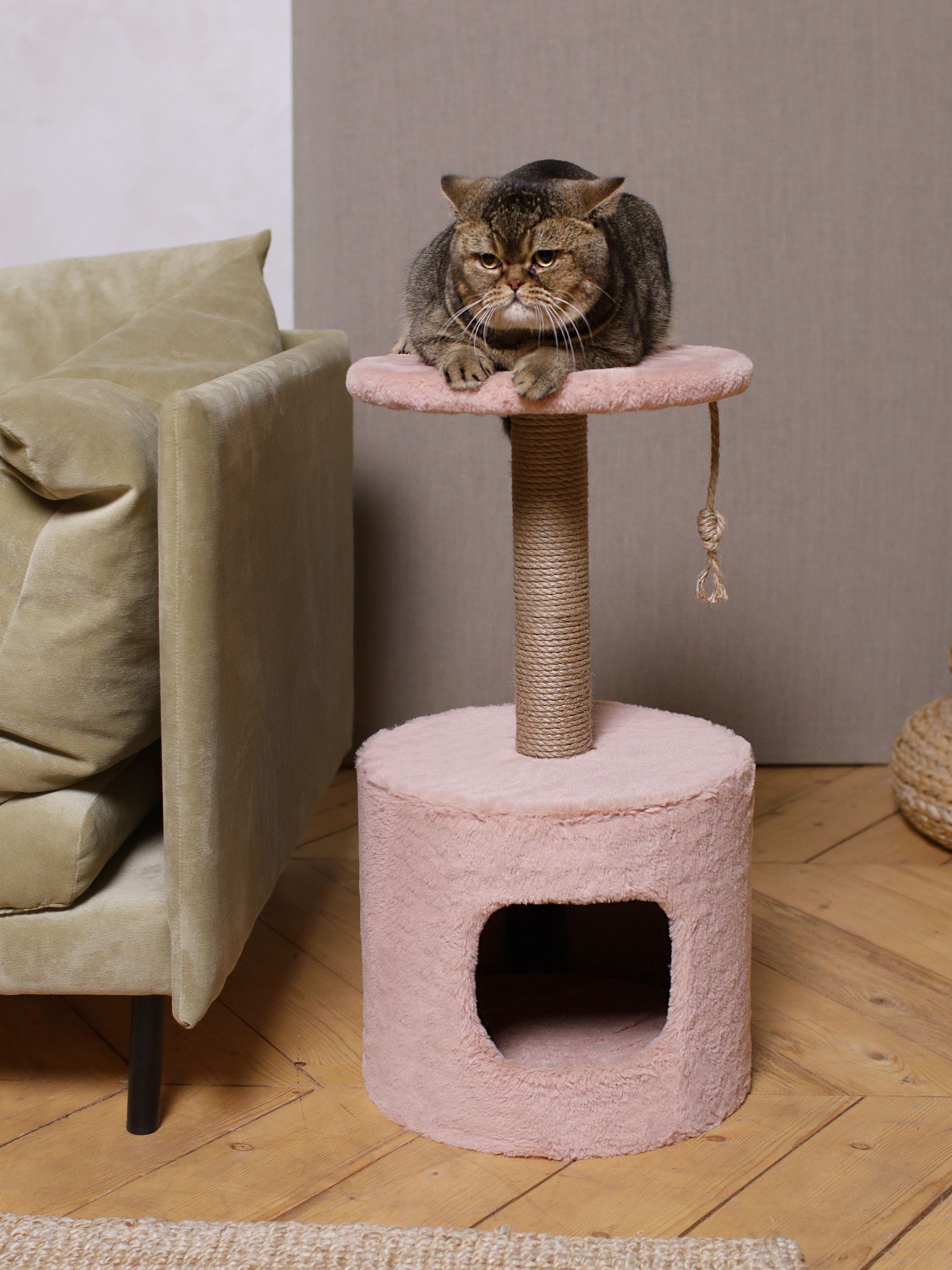 Когтеточка-домик 36х36х70 см, джут. Розовый
