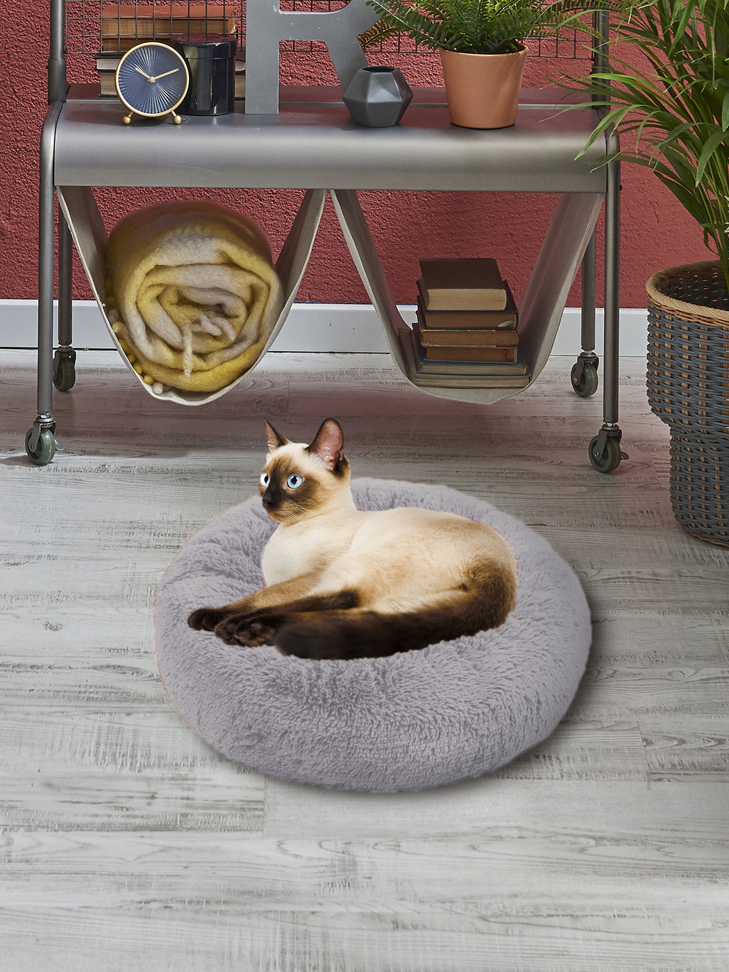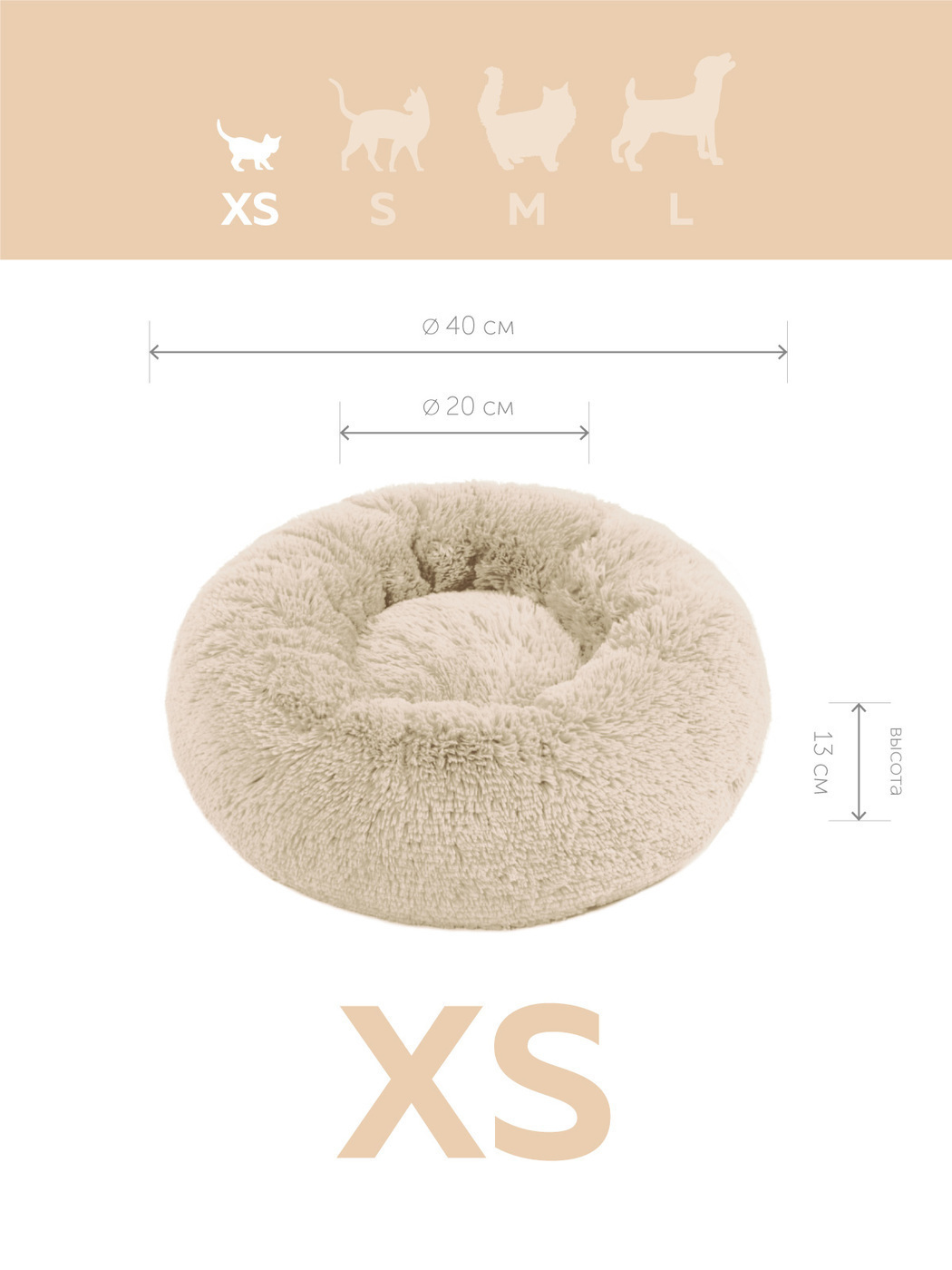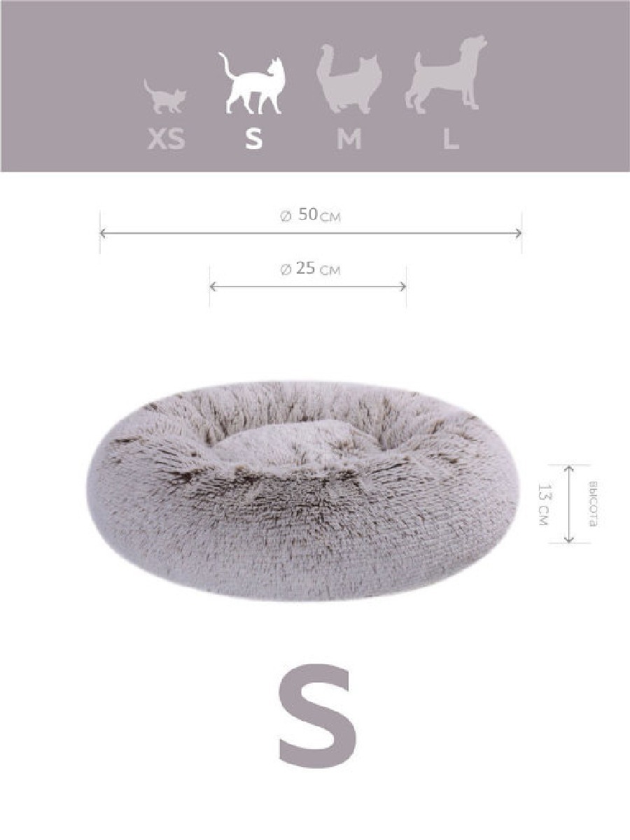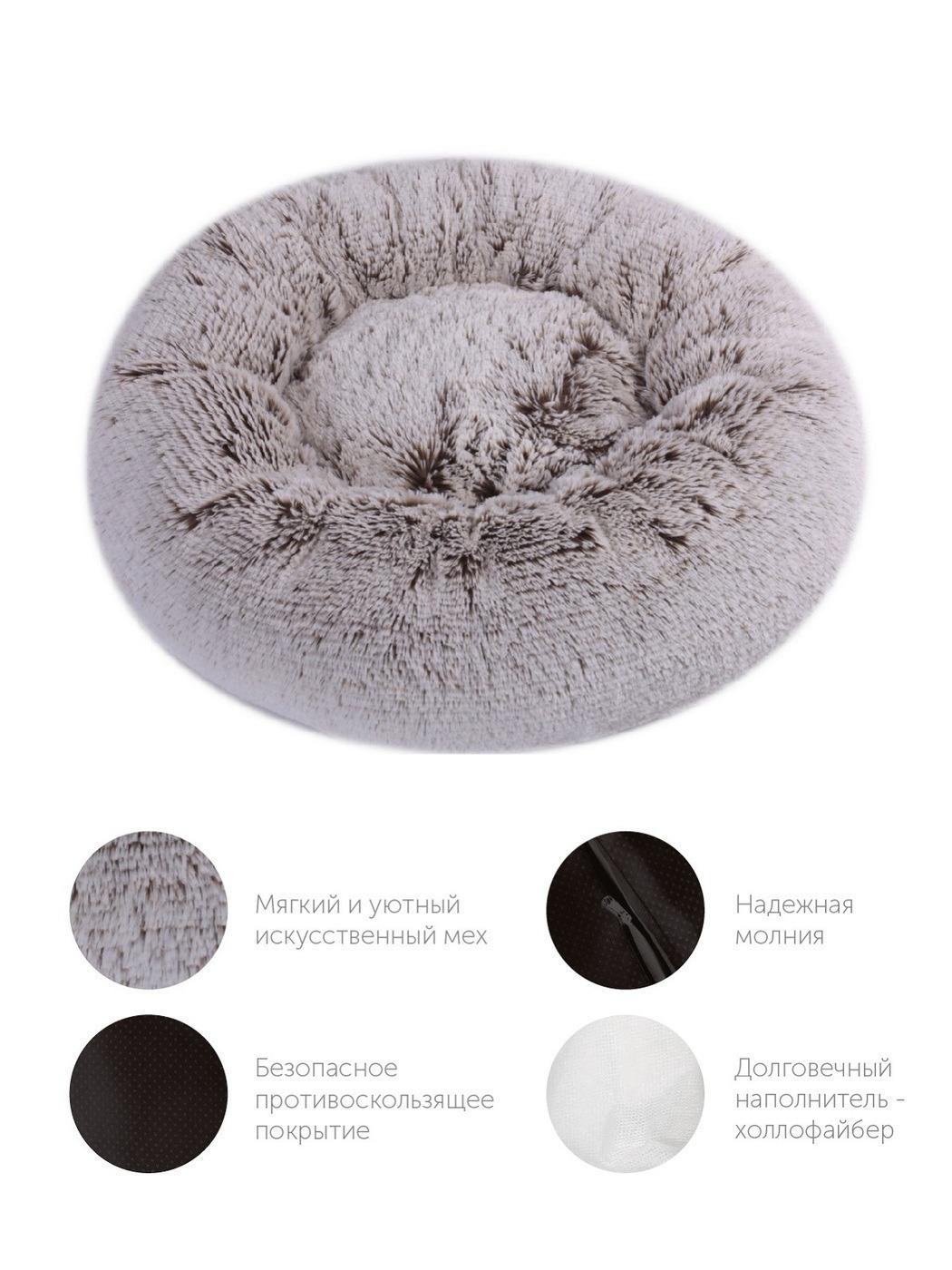 Пушистая лежанка d30 см +-5 см для мелких кошек и собак цвет серо-бежевый артикул PNL40