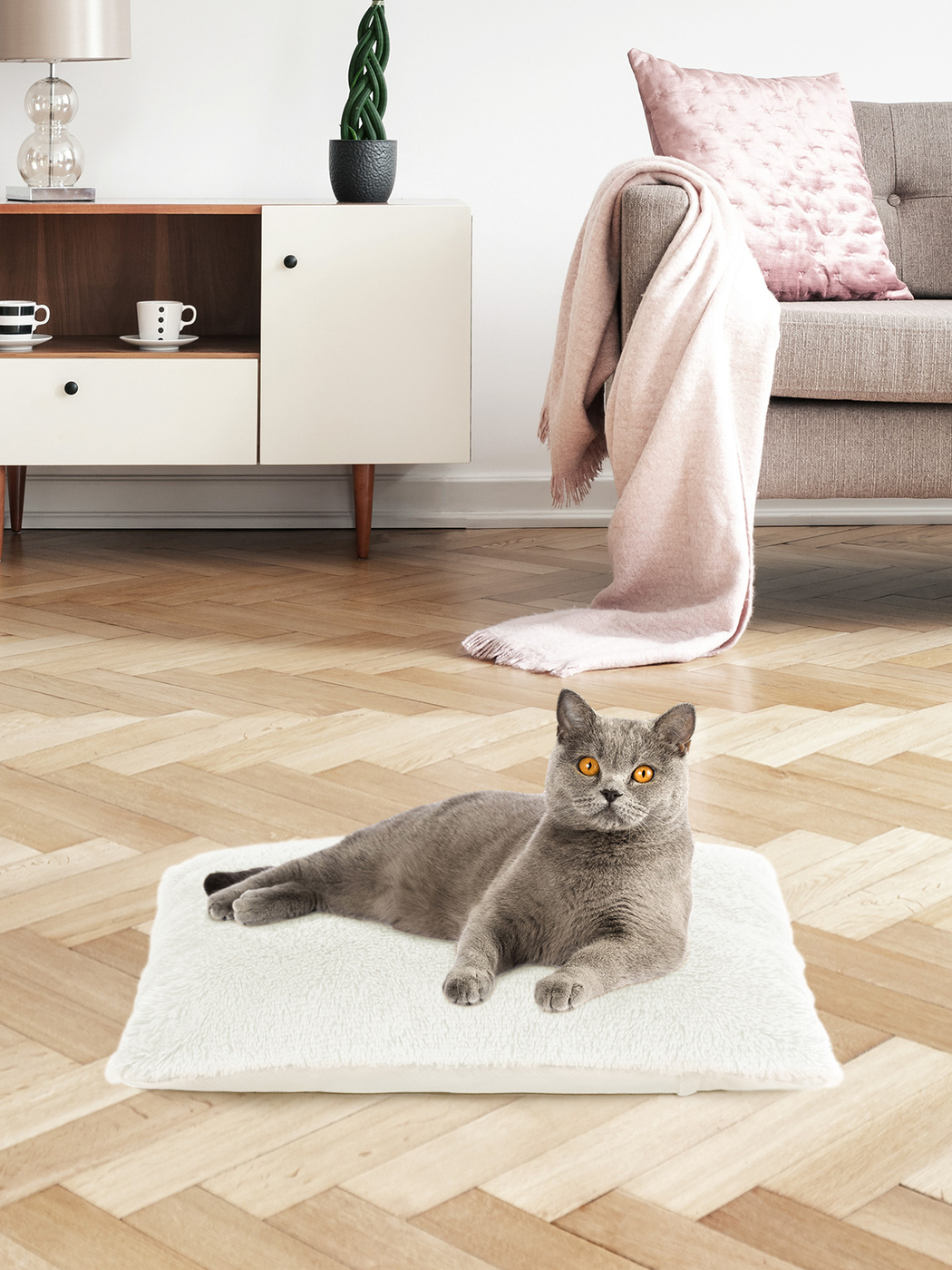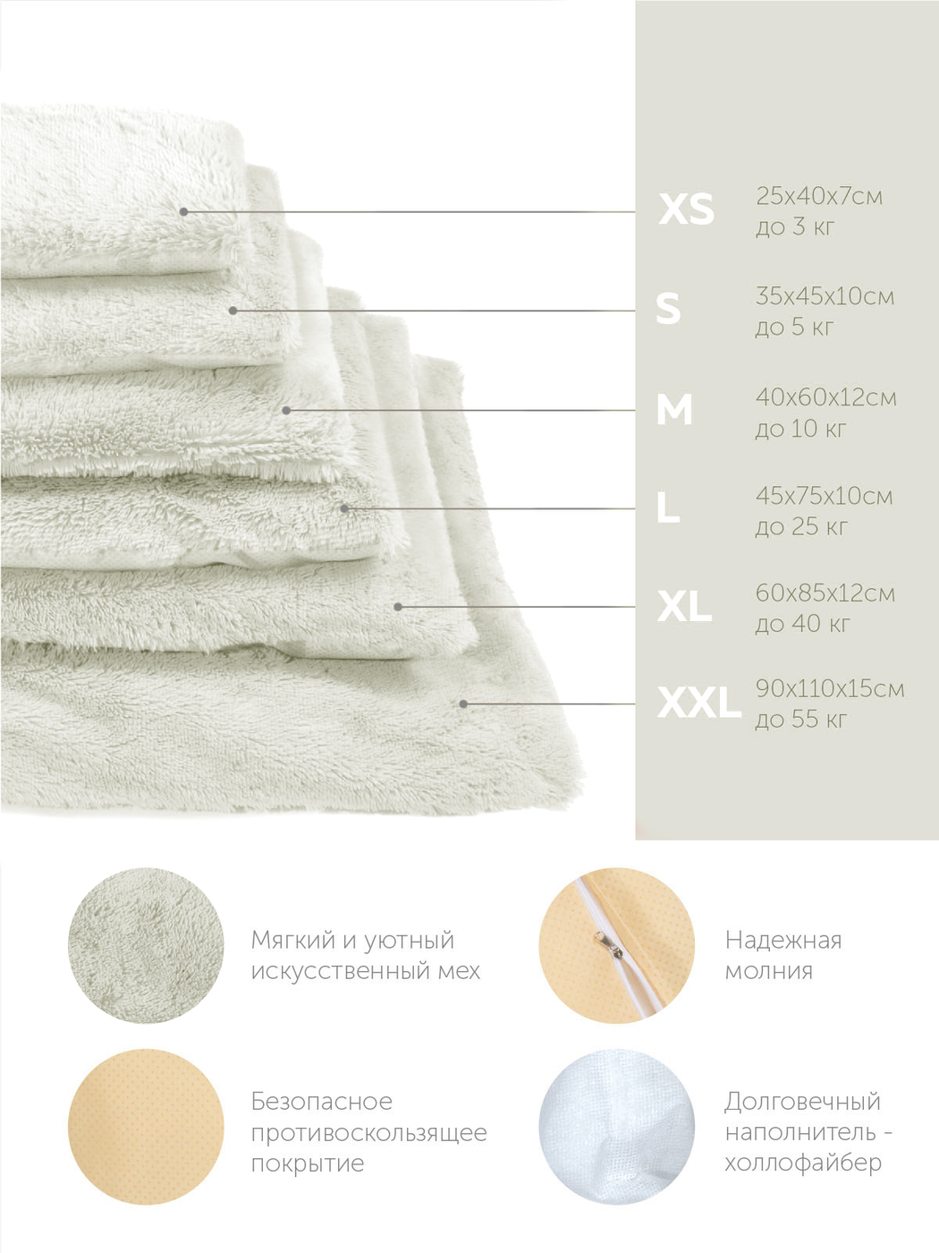 Пушистая лежанка 60х40см +-5 см для кошек и собак цвет белый артикул PM_M
