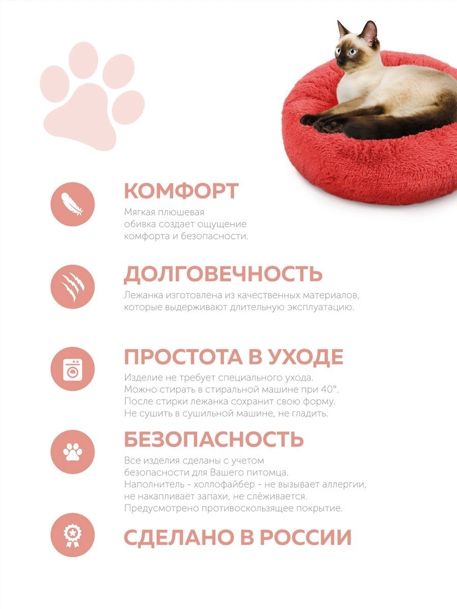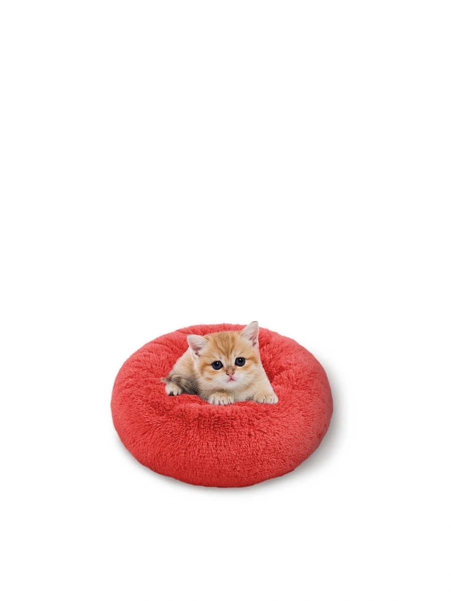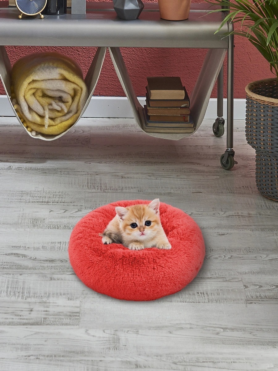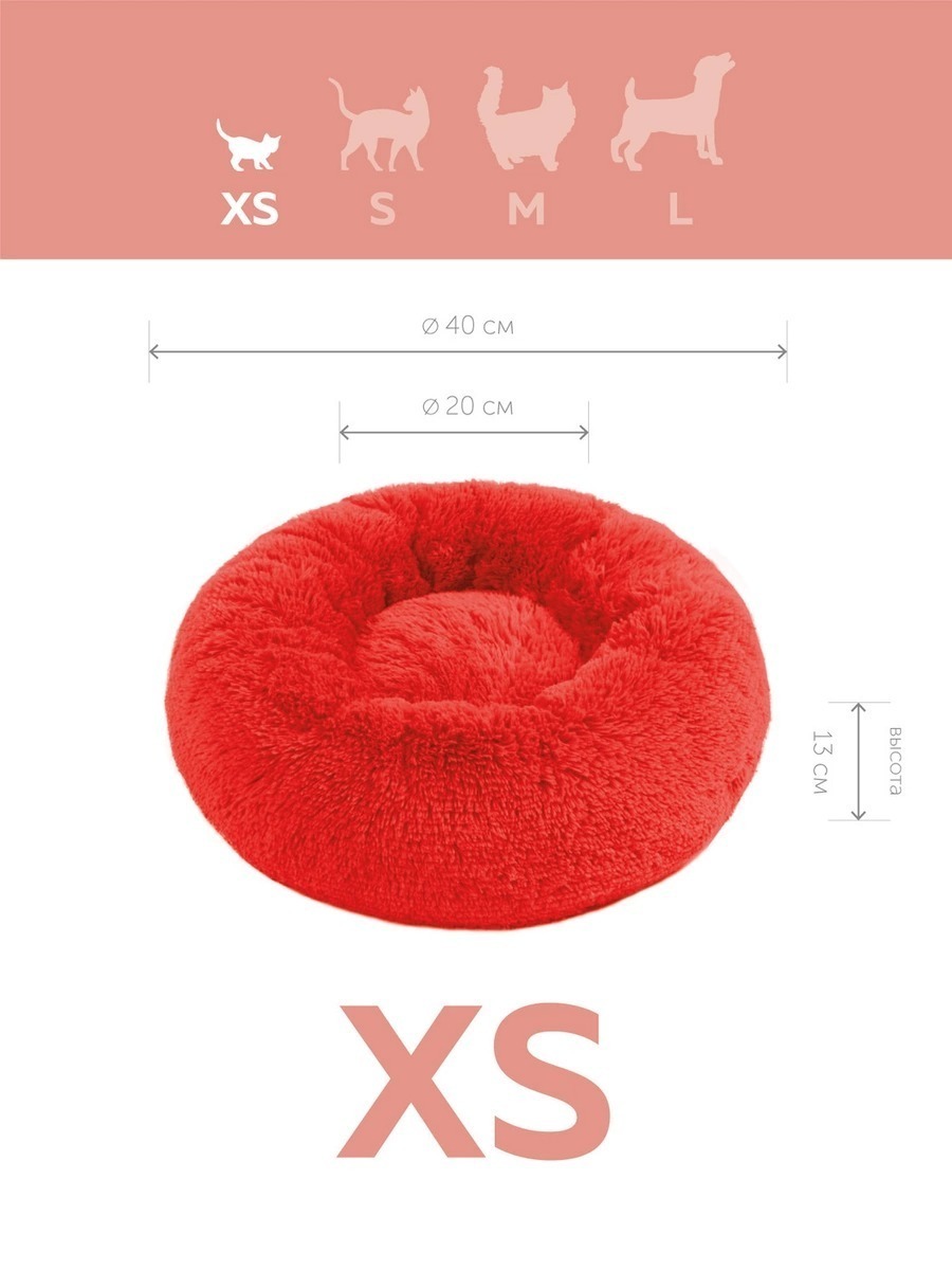 Пушистая лежанка d30 см +-5 см для мелких кошек и собак цвет красный артикул PNL40