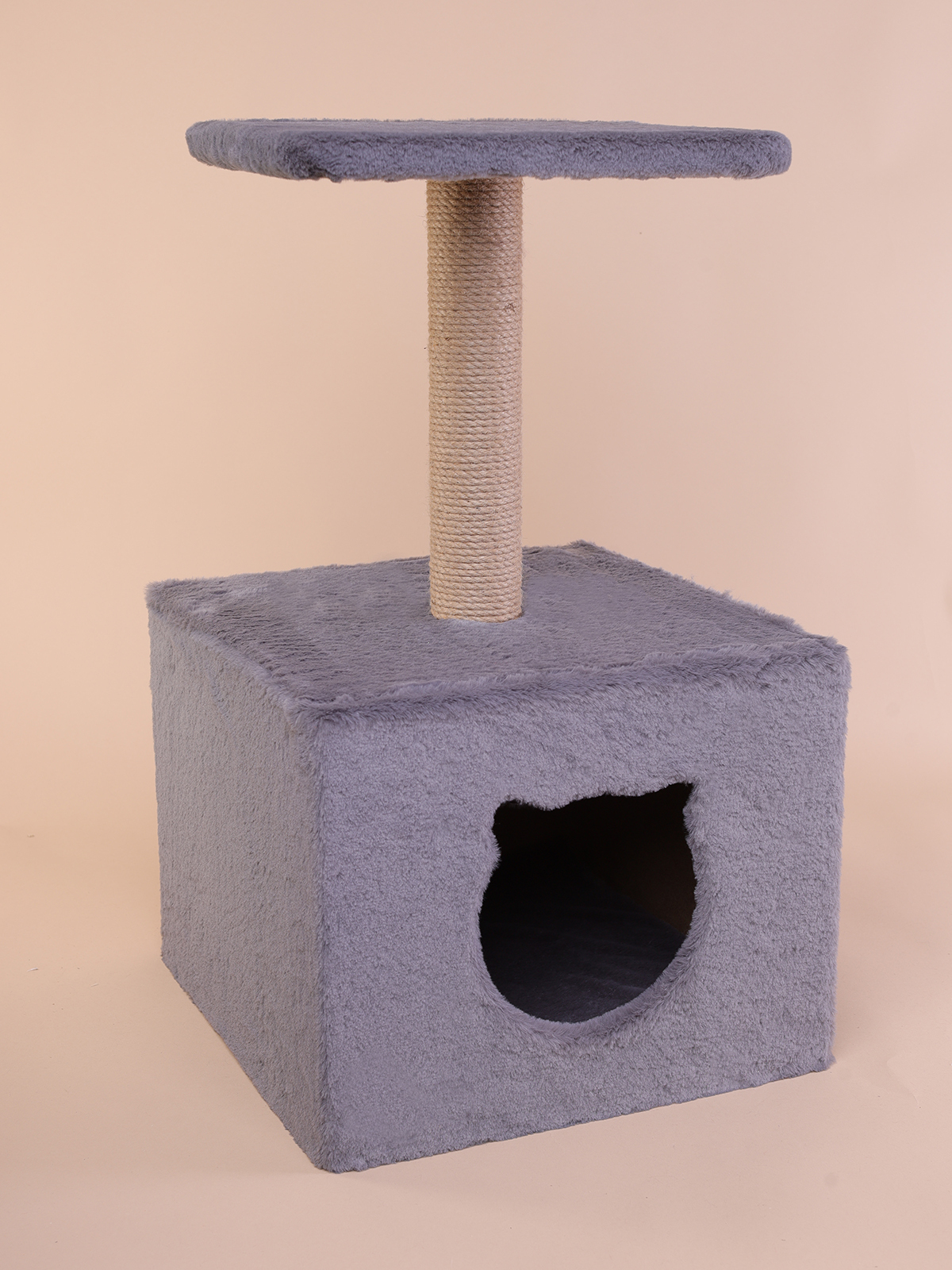 Когтеточка-домик 40х40х67 см, джут. Серый
