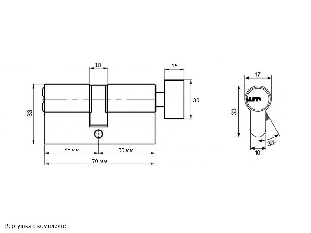Цилиндровый механизм Cisa (Чиза) Asix 35*35В ОЕ302-13-0 цилиндр личинка для замка