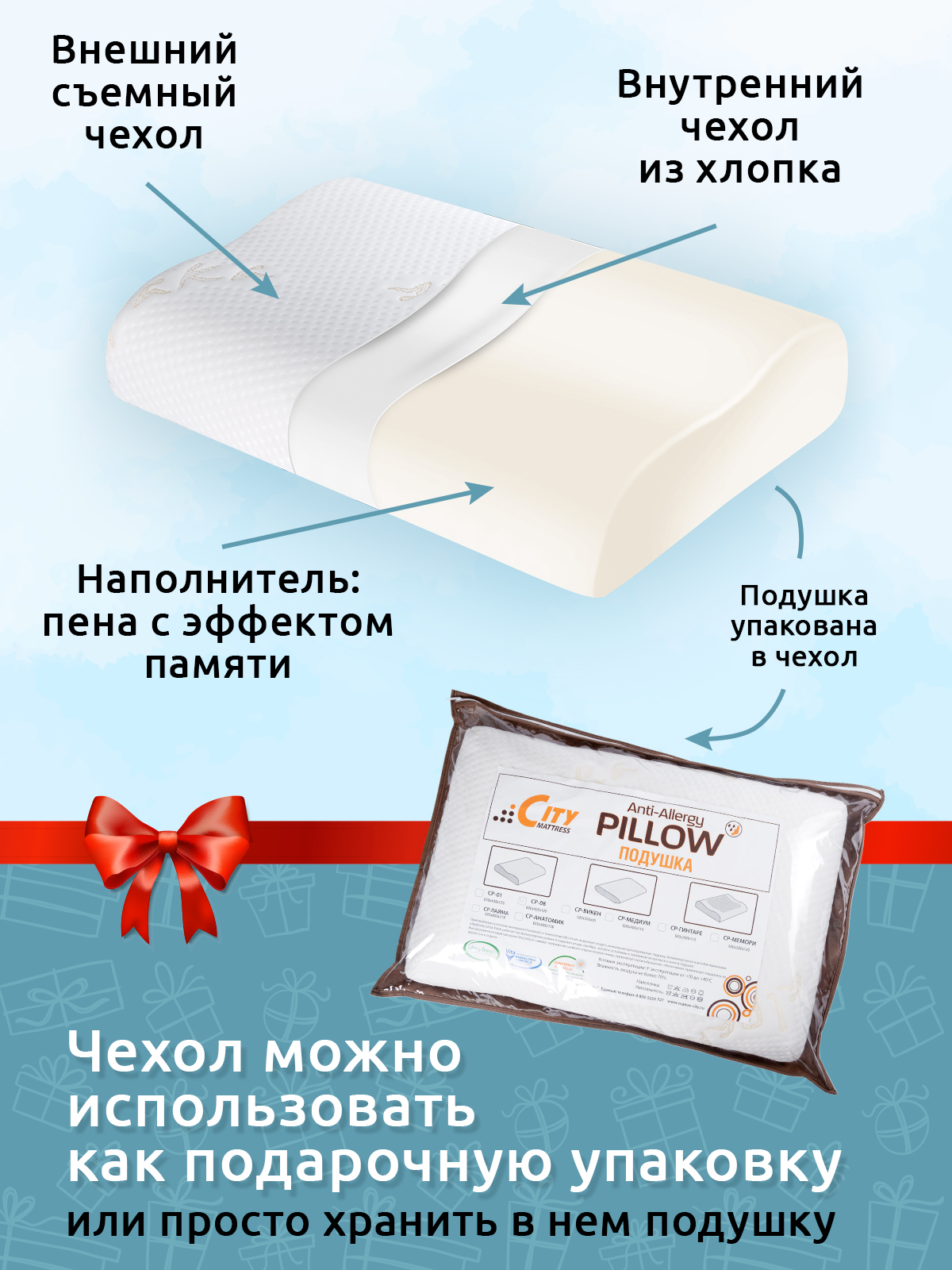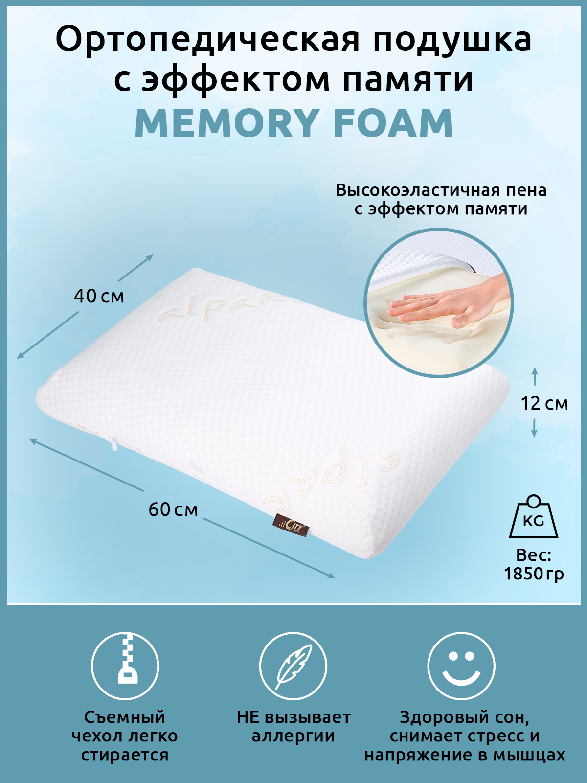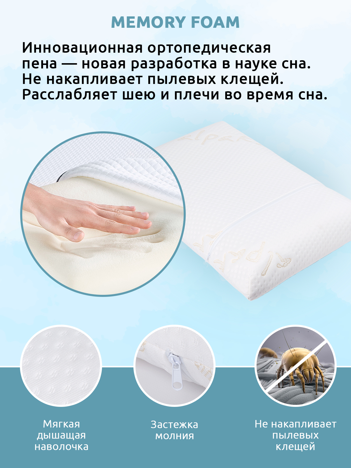 Подушка ортопедическая, анатомическая для сна с эффектом памяти 60х40см