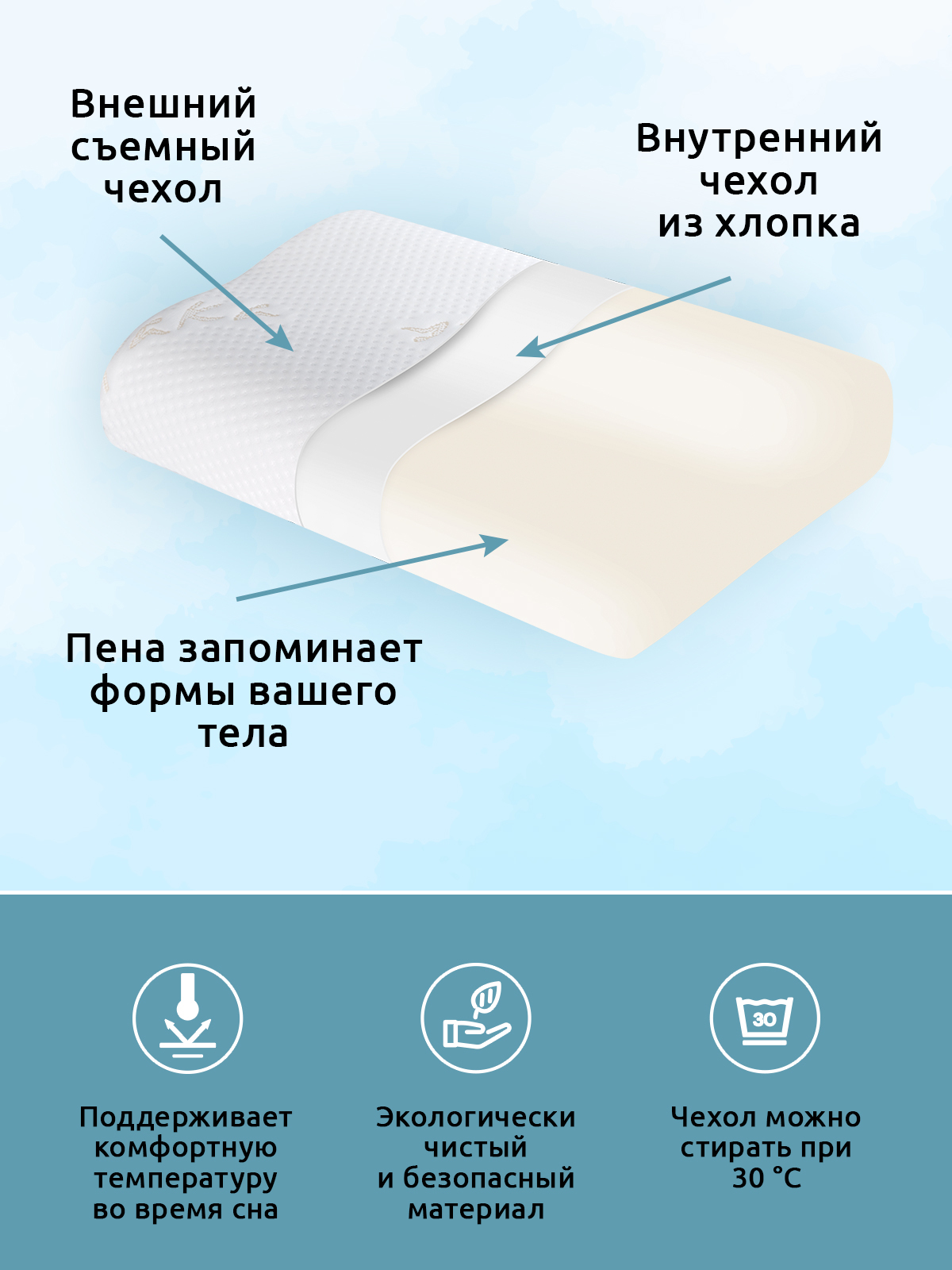 Подушка ортопедическая с эффектом памяти 60х40, Анатомическая подушка 60х40, Подушка для сна