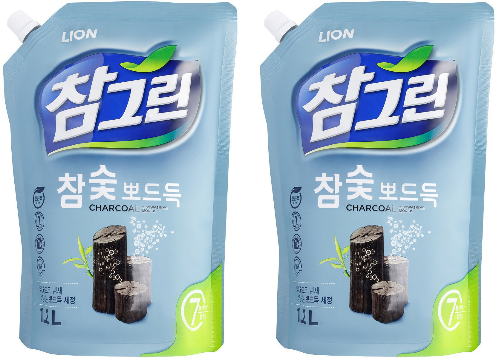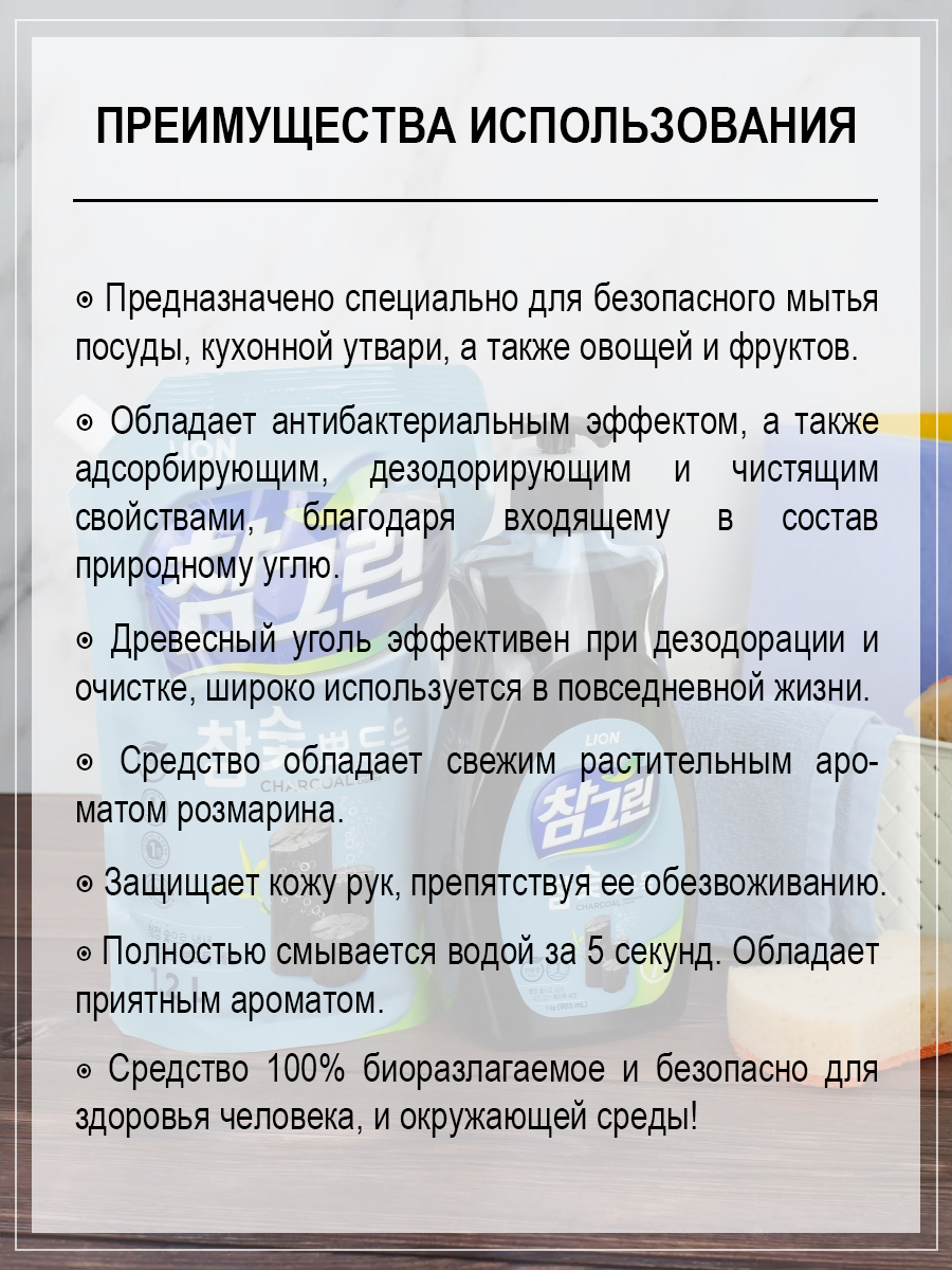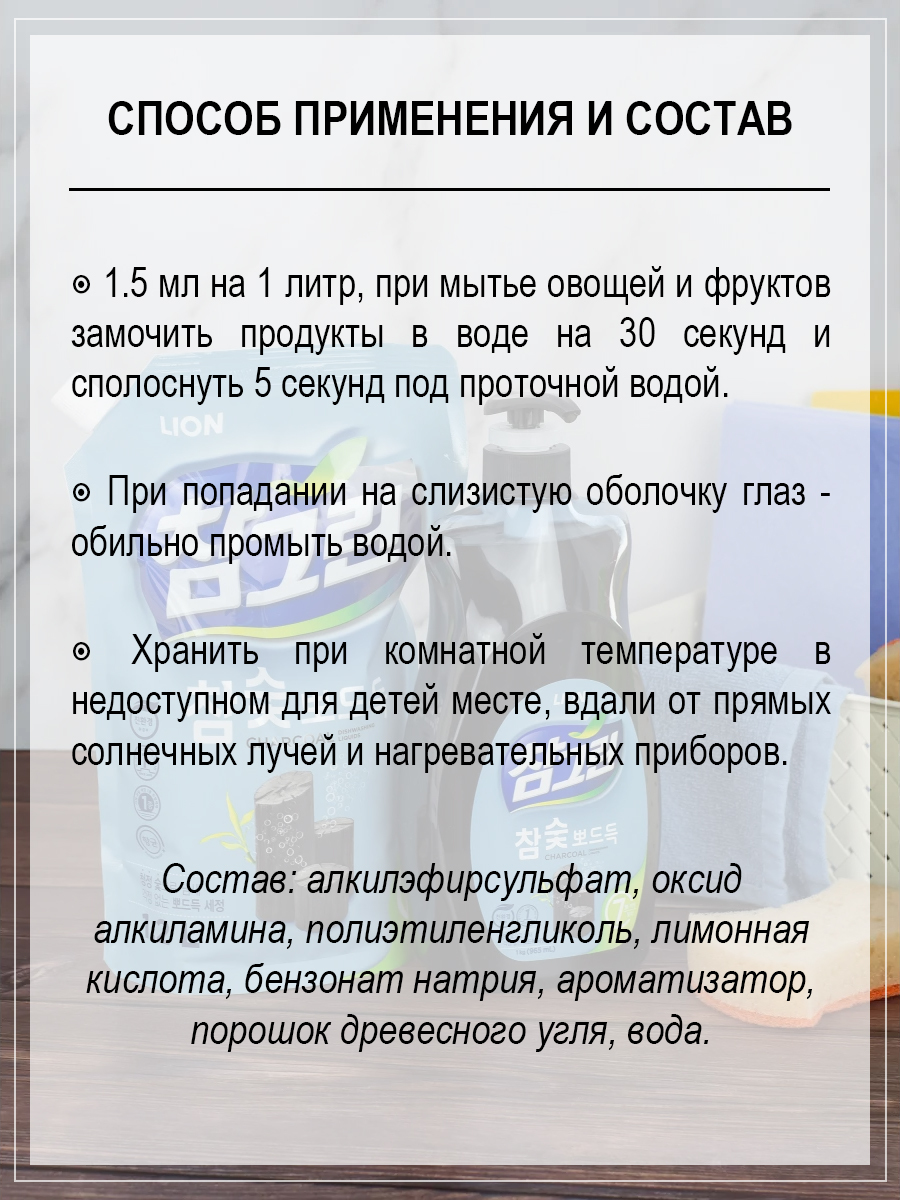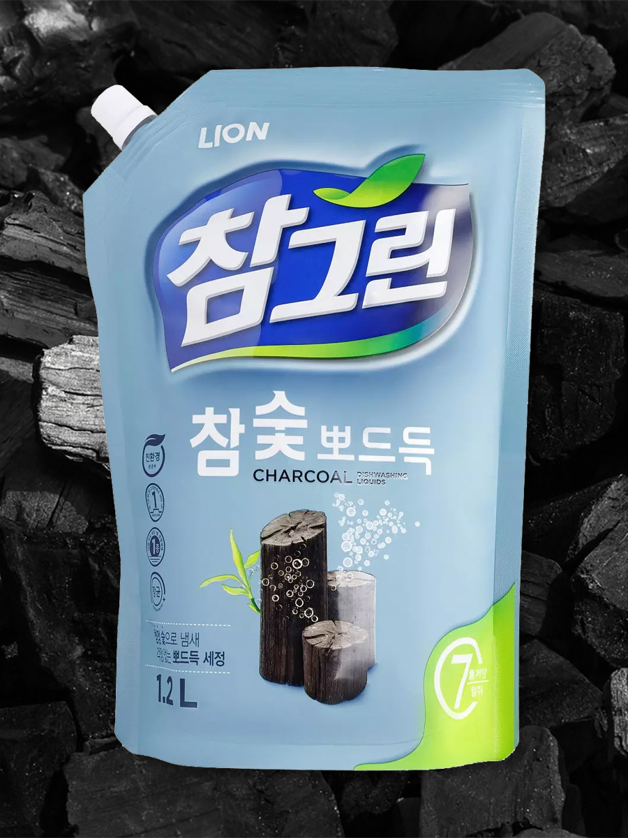Lion средство для мытья посуды, средство для мытья овощей и фруктов с древесным углем рефилл 2х1200г