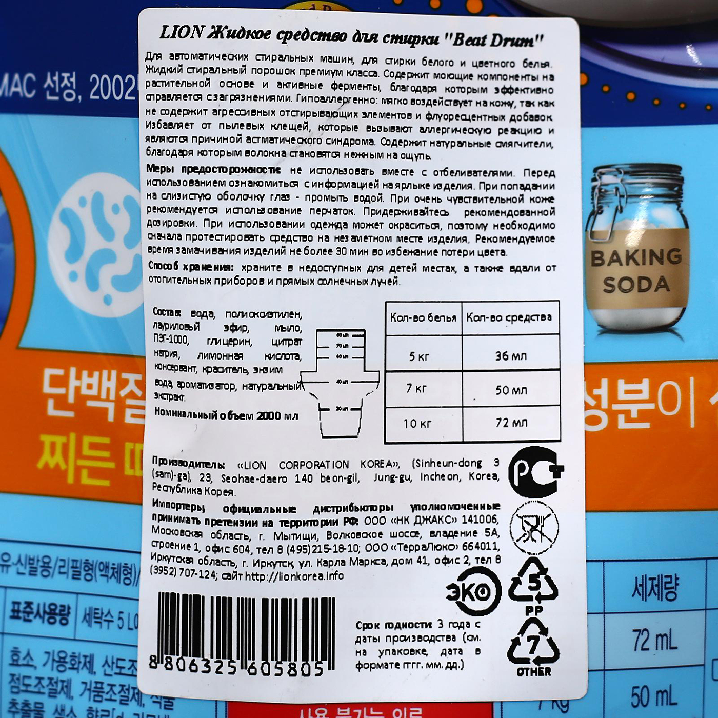 Гель для стирки CJ Lion Beat Drum ромашка (Корея)