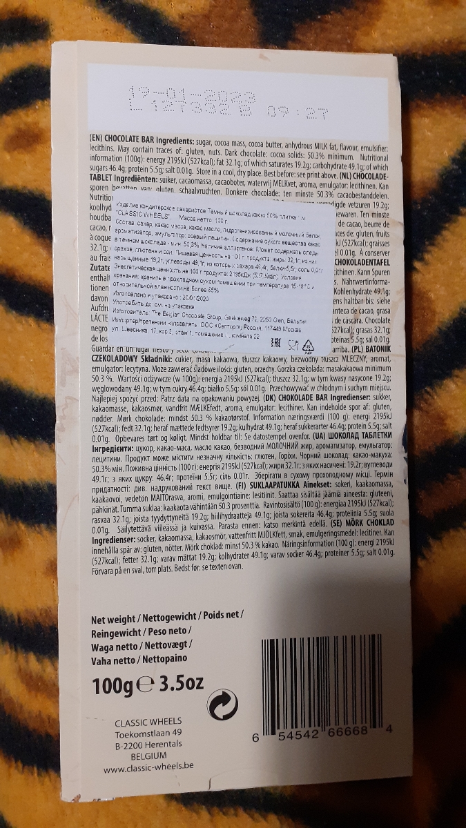 Молочный шоколад Classic Wheels Xmas большая плитка 400 гр
