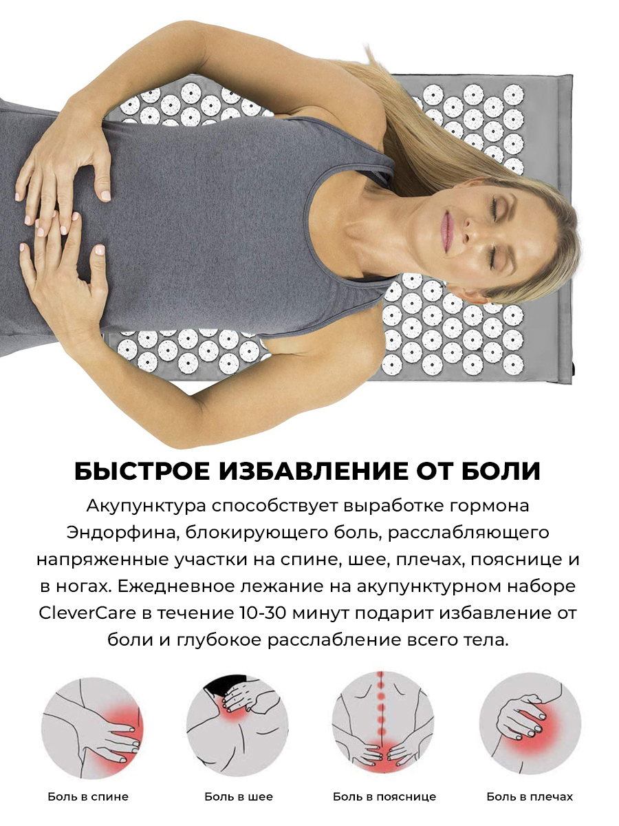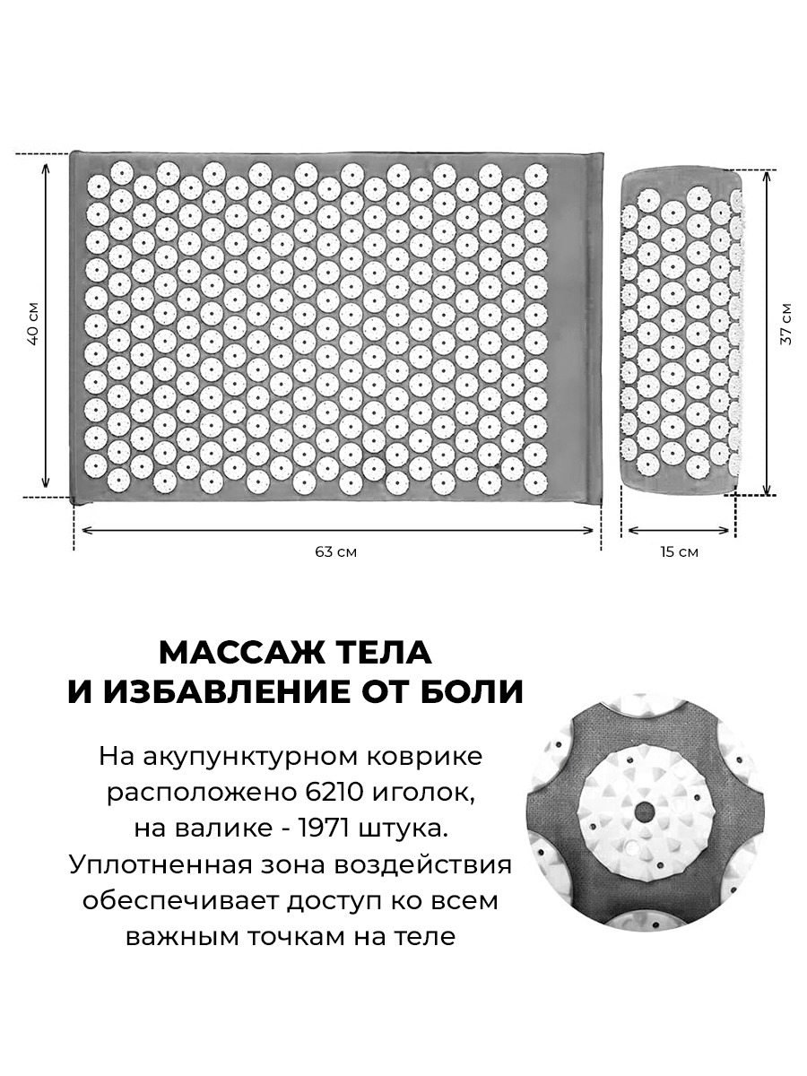 Аппликатор Кузнецова / Массажный коврик CleverCare/ Игольчатый коврик и валик для акупунктуры
